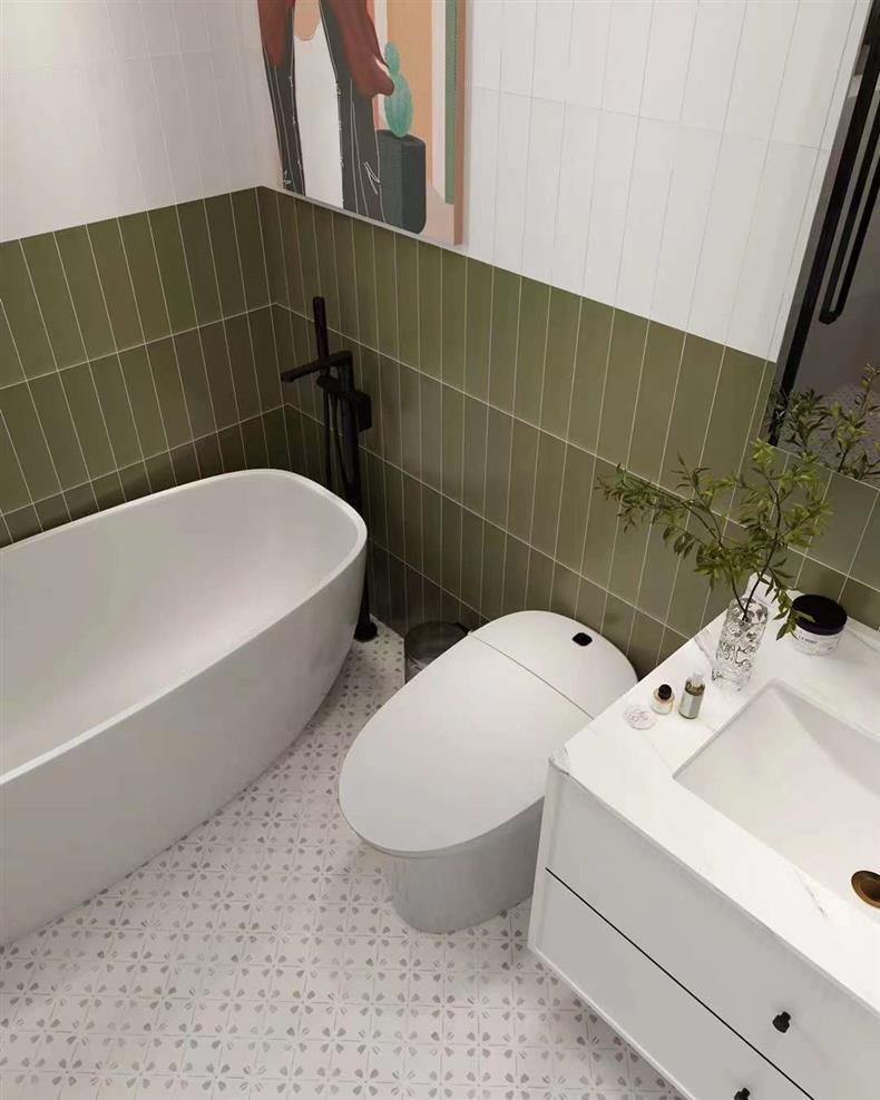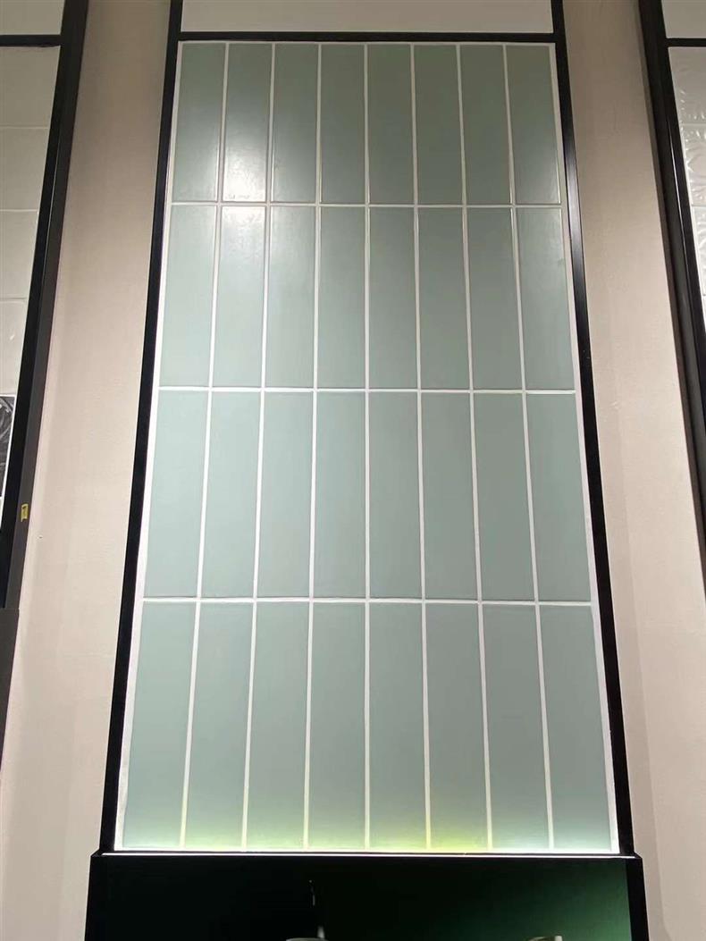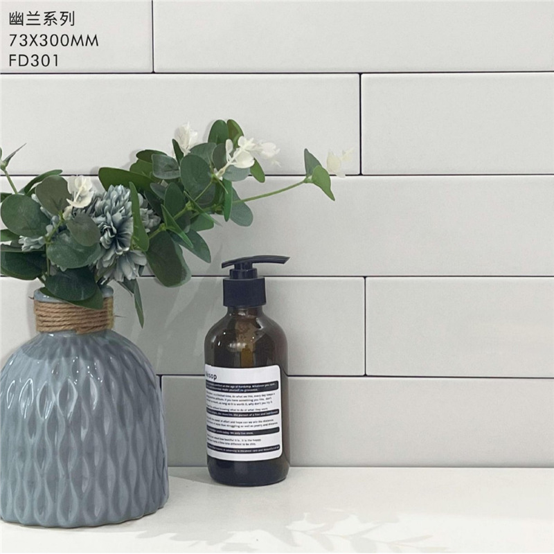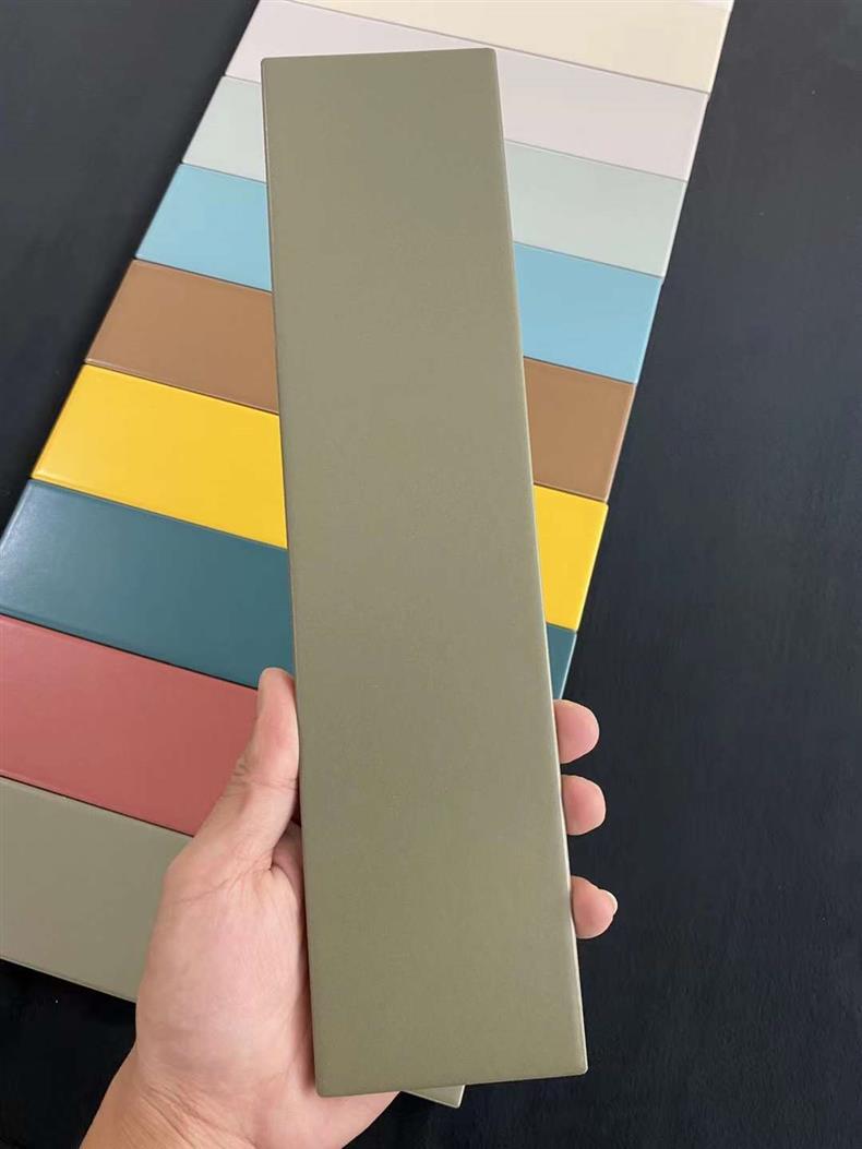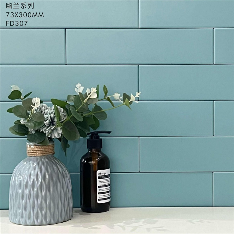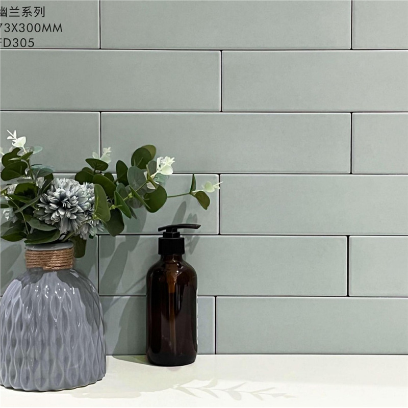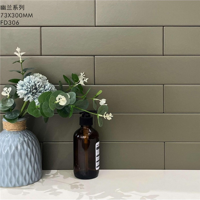 Плитка для кухни, балкона, ванной комнаты и ресторана, Фошань, полностью керамическая, 73*300, оливково-зеленый макарон, однотонная, оливково-зеленый цвет.