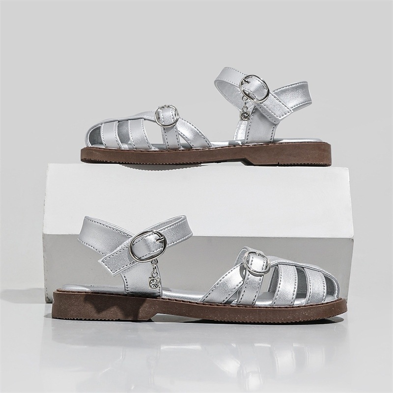 Детские сандалии для девочек Баотоу 2025 Лето Новые Маленькие девочки Детская обувь Пляжная обувь Мягкая подошва Принцесса Римские