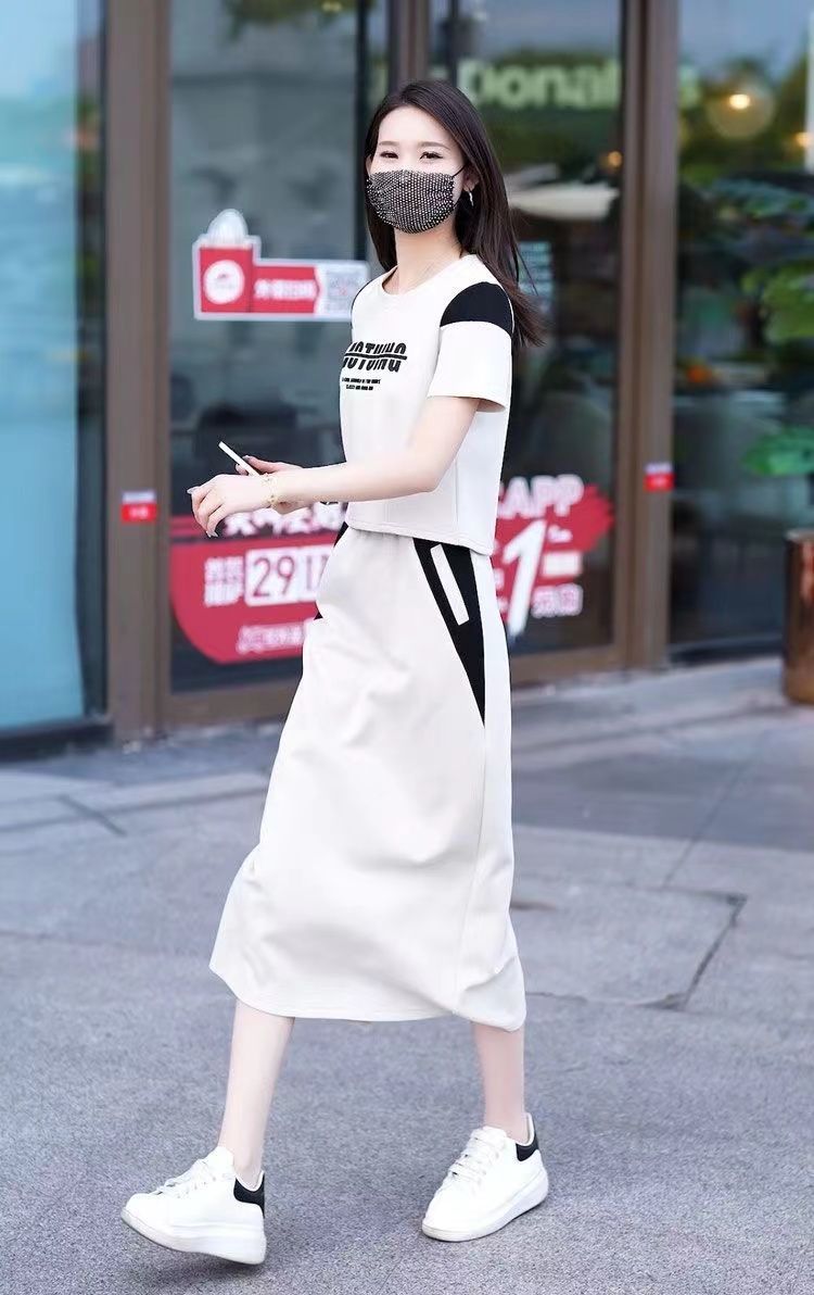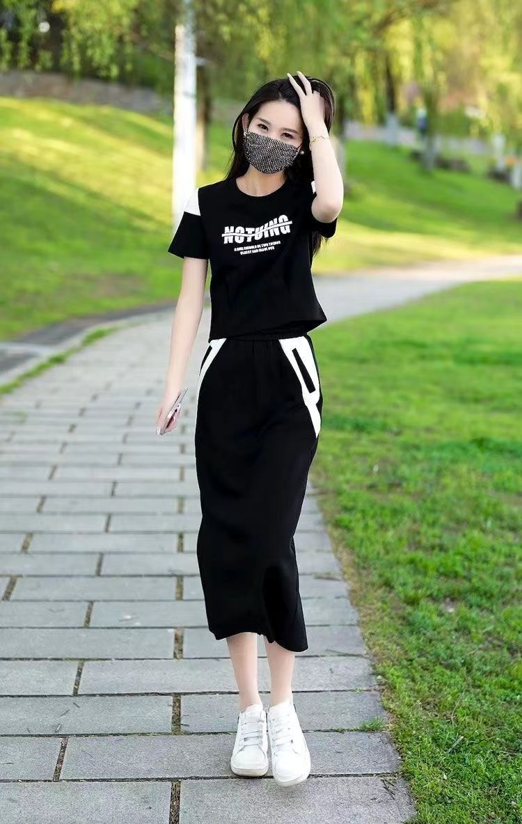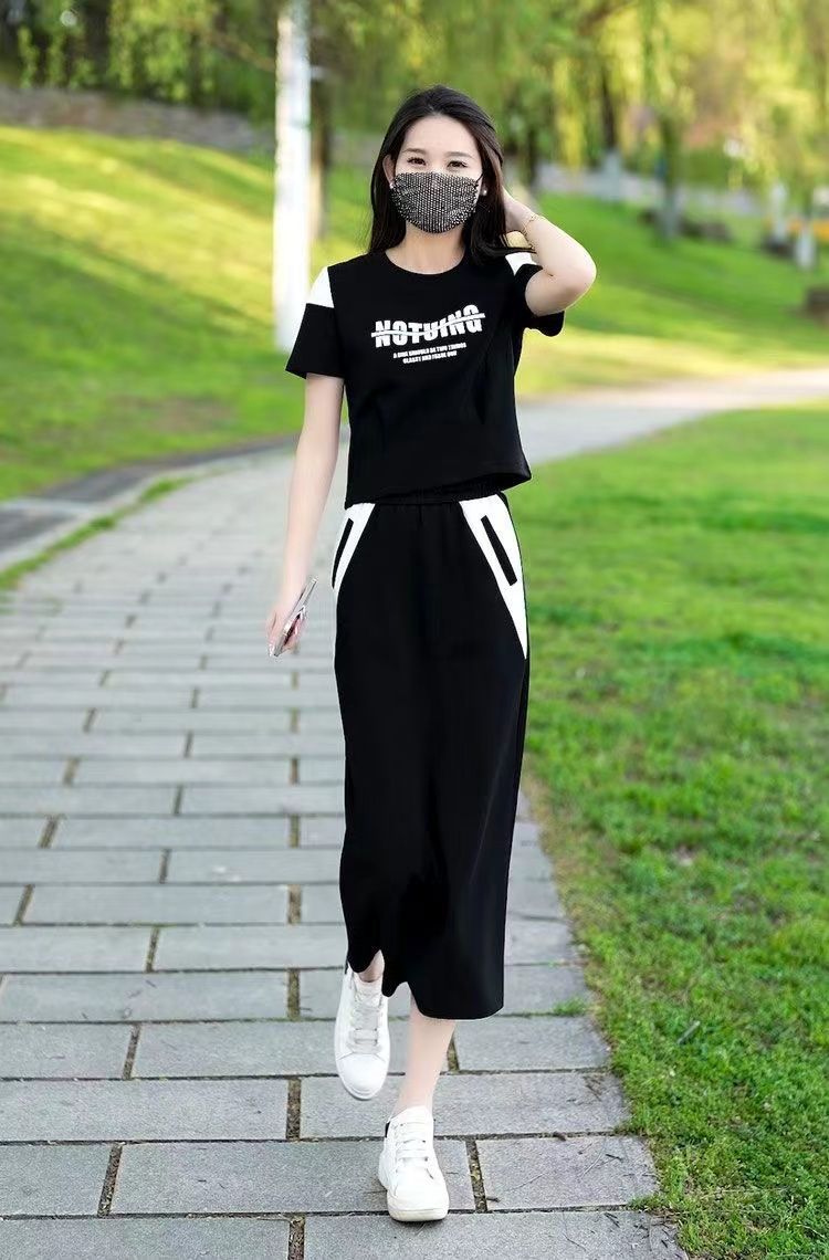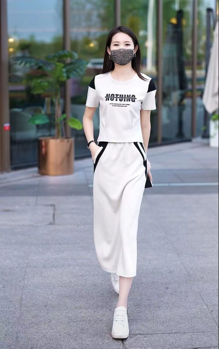 Летний костюм 2025, новый стиль, модная футболка с коротким рукавом и юбка, комплект из двух предметов, средней длины