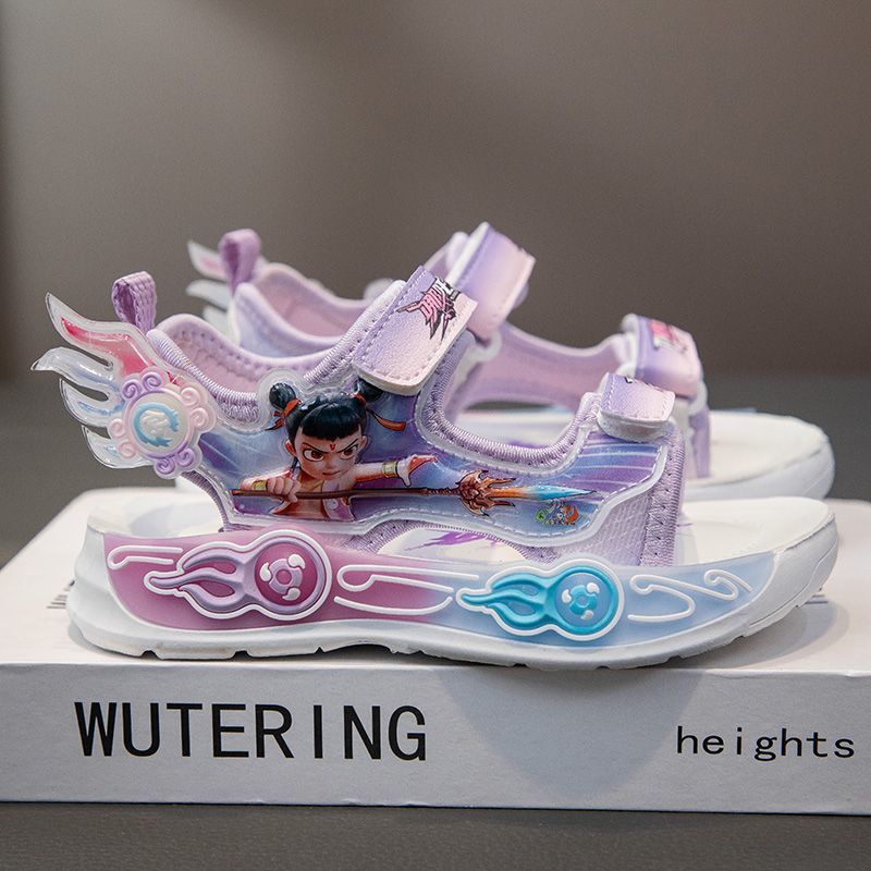 Детские сандалии Nezha Magic для девочек, лето 2025, новые, мягкая подошва, средние и большие размеры, спортивные, пляжные, модные.