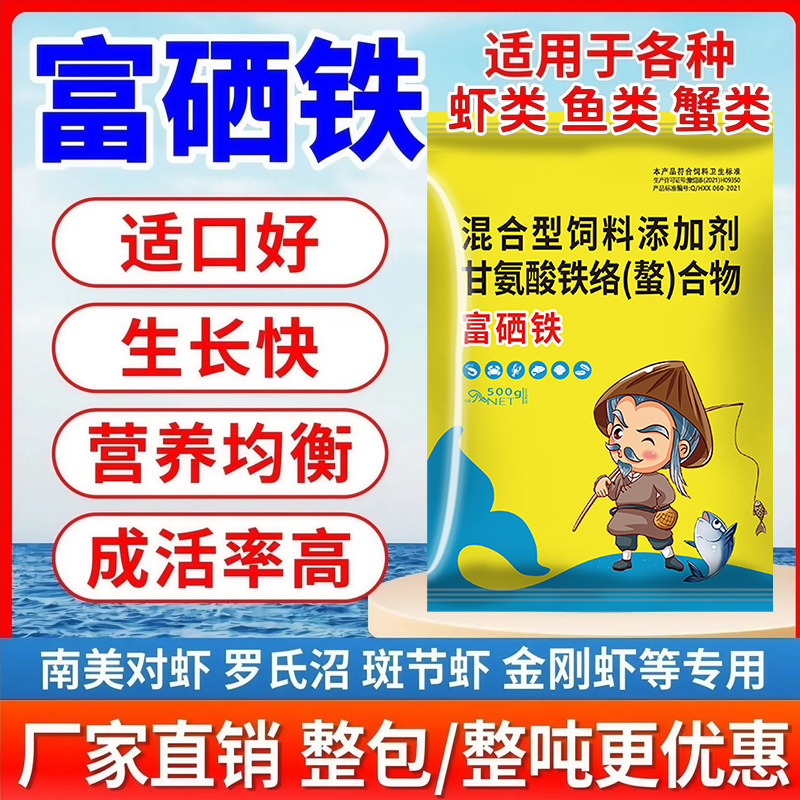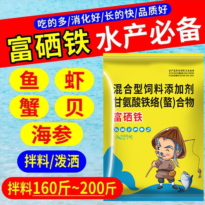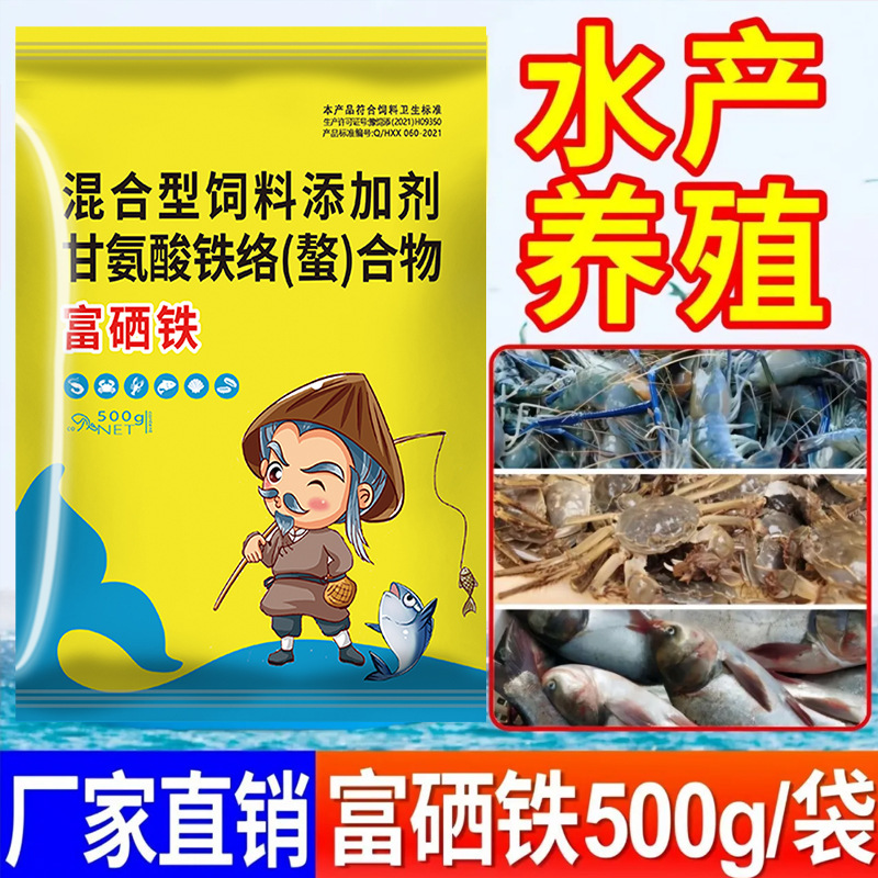 Железо, обогащенное селеном, водные продукты для разведения рыб, креветок и крабов специально используются для повышения потребления пищи, стимулирования линьки и пополнения множества элементов для увеличения веса и стимуляции роста.