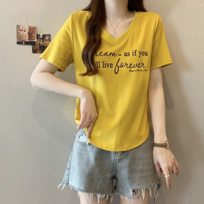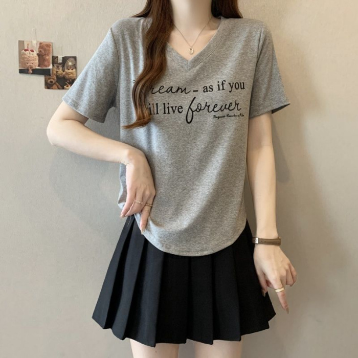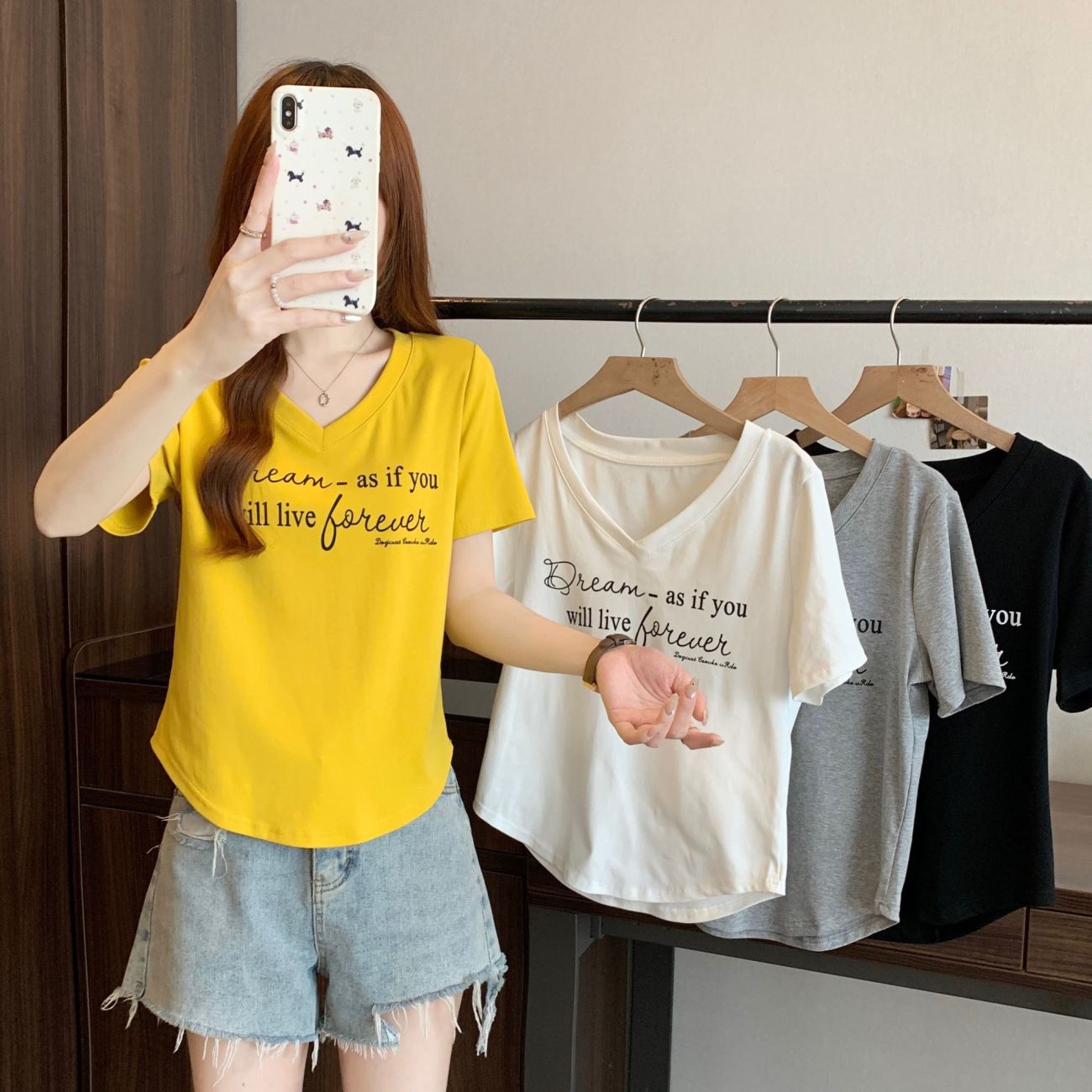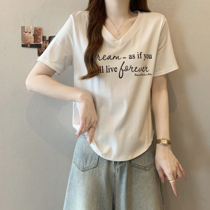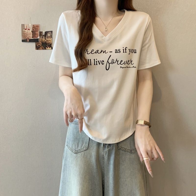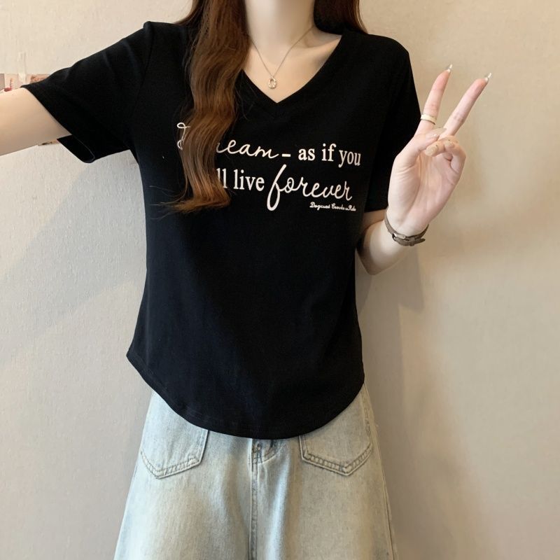 Женская футболка с короткими рукавами и американскими буквами больших размеров, новинка 2025 года, летняя одежда, слегка толстый мм, с обрезанной талией, сексуальный топ для похудения