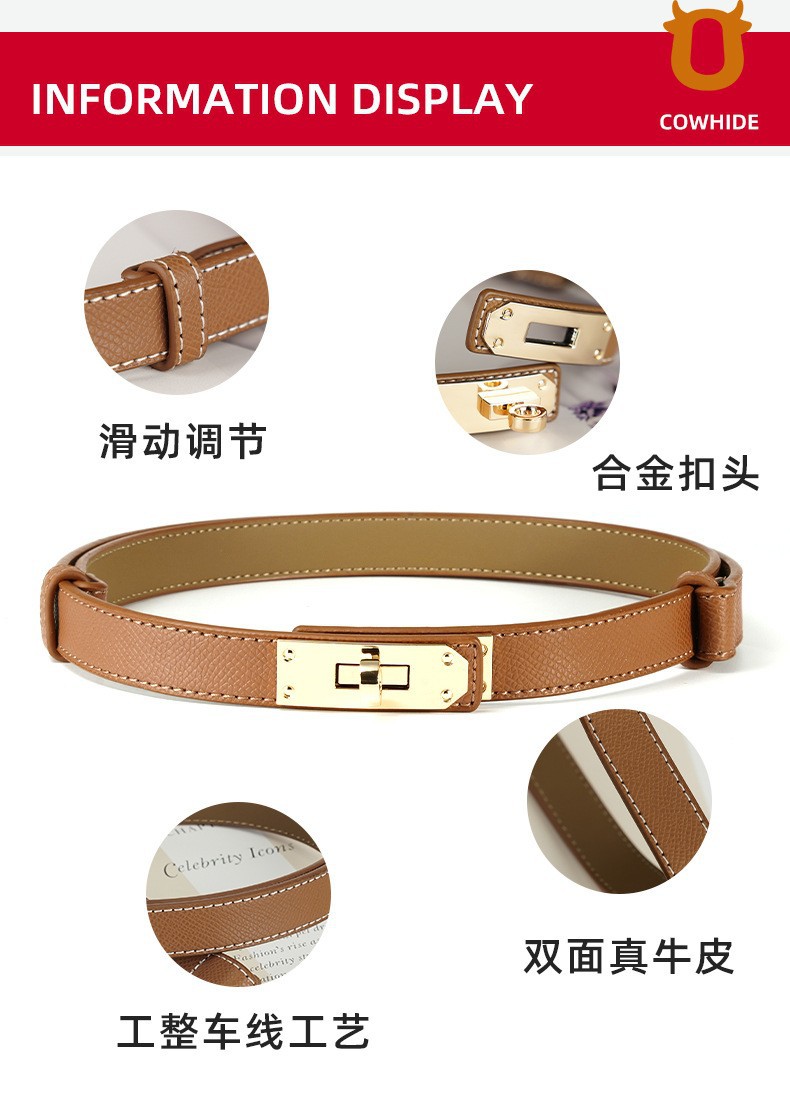 Женский ремень из натуральной кожи, двусторонний, высококачественный тонкий кожаный ремень с декором для платья, двусторонний ремень из коровьей кожи для женщин