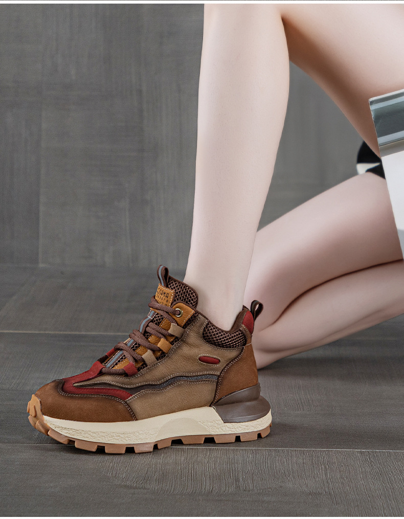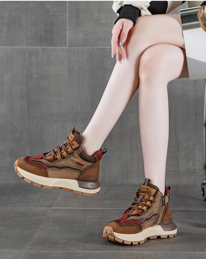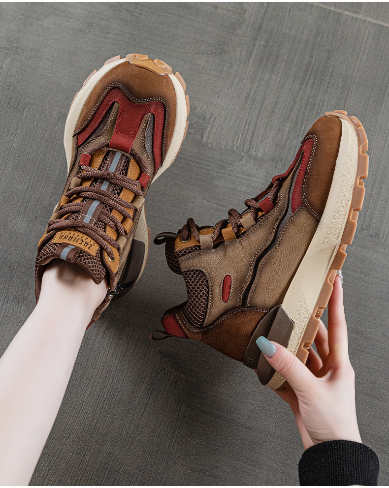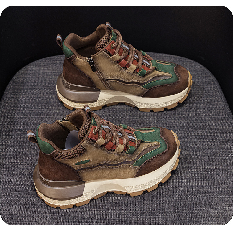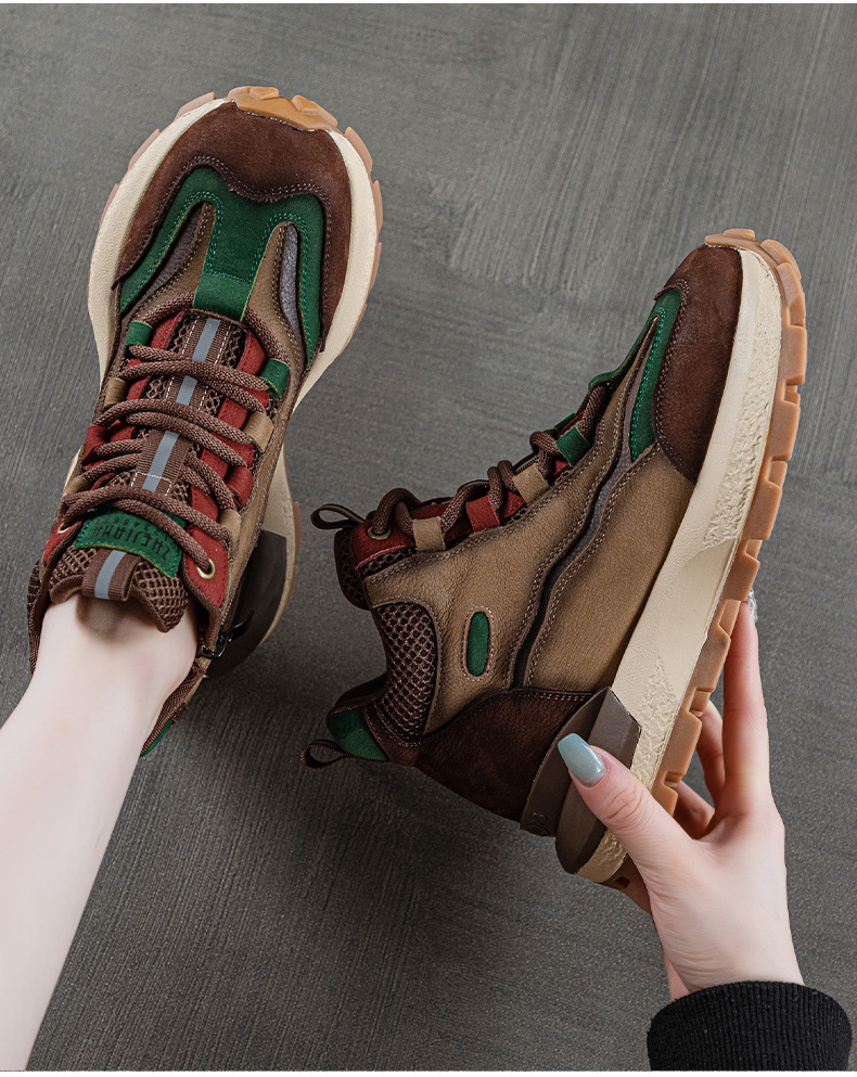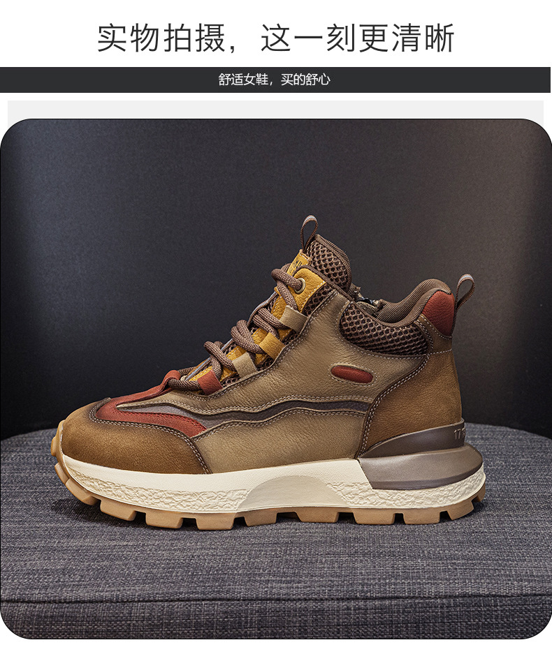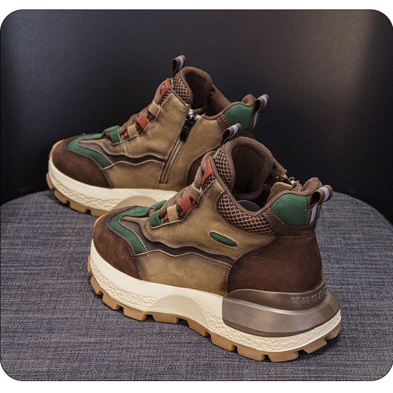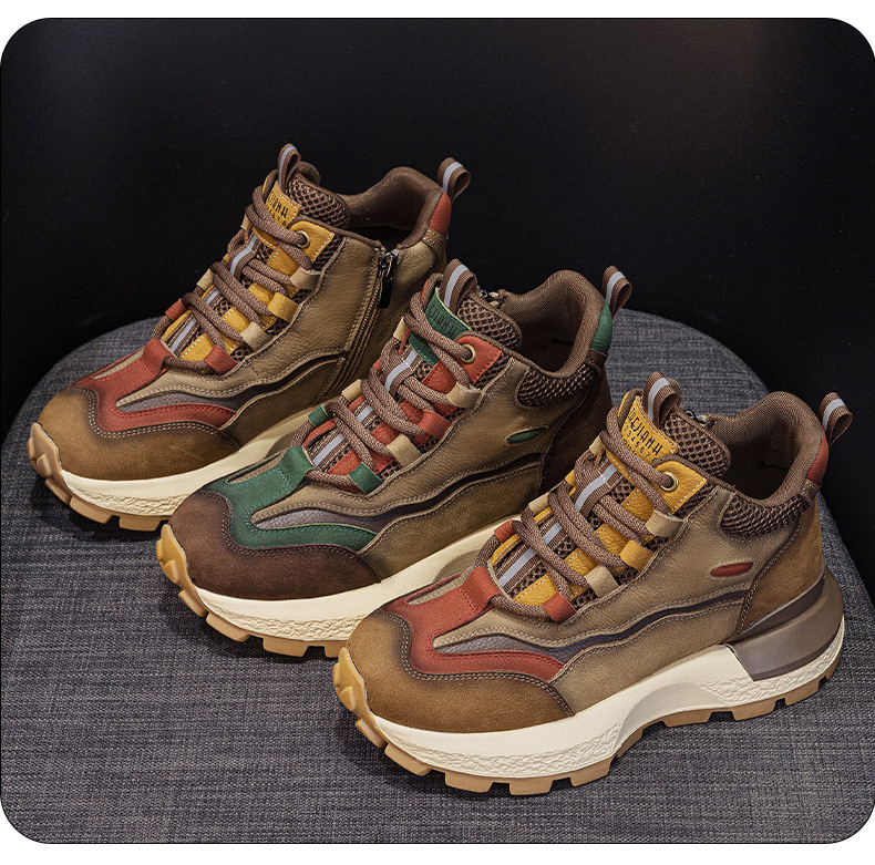 Женские высокие ботинки в стиле ретро из первосортной телячьей кожи, зима 2024, новые, на толстой подошве, увеличивающие рост, повседневные, с добавлением хлопка, в стиле Форреста Гампа