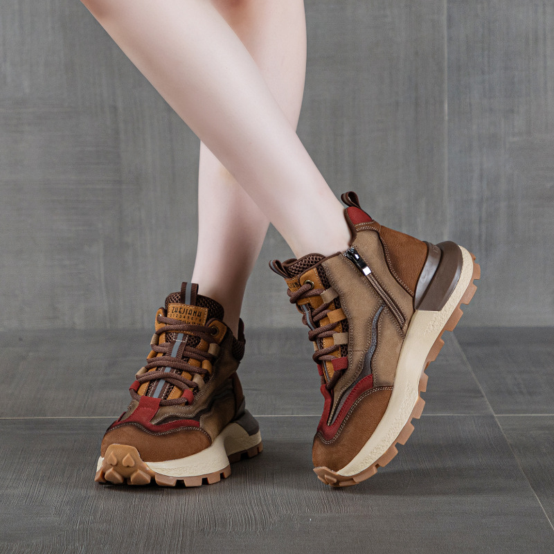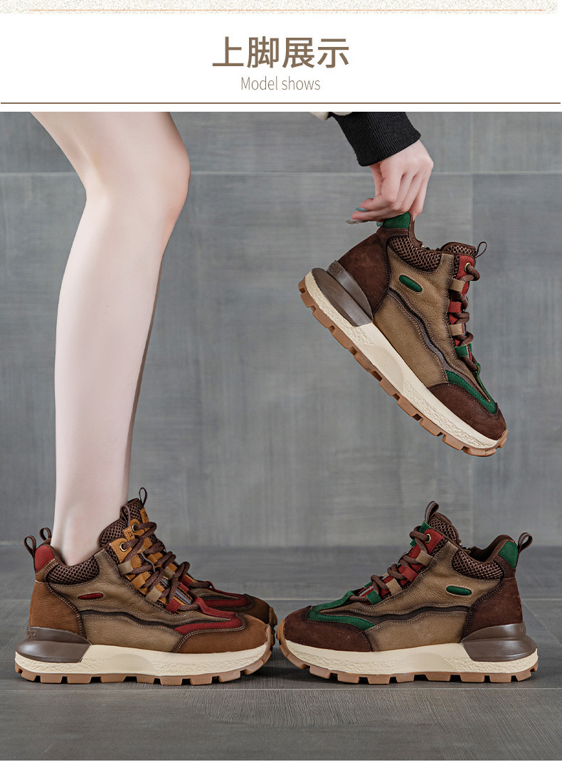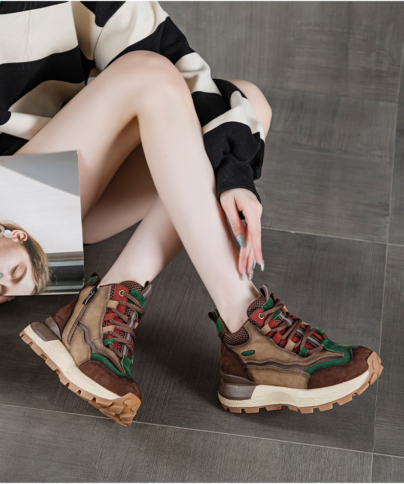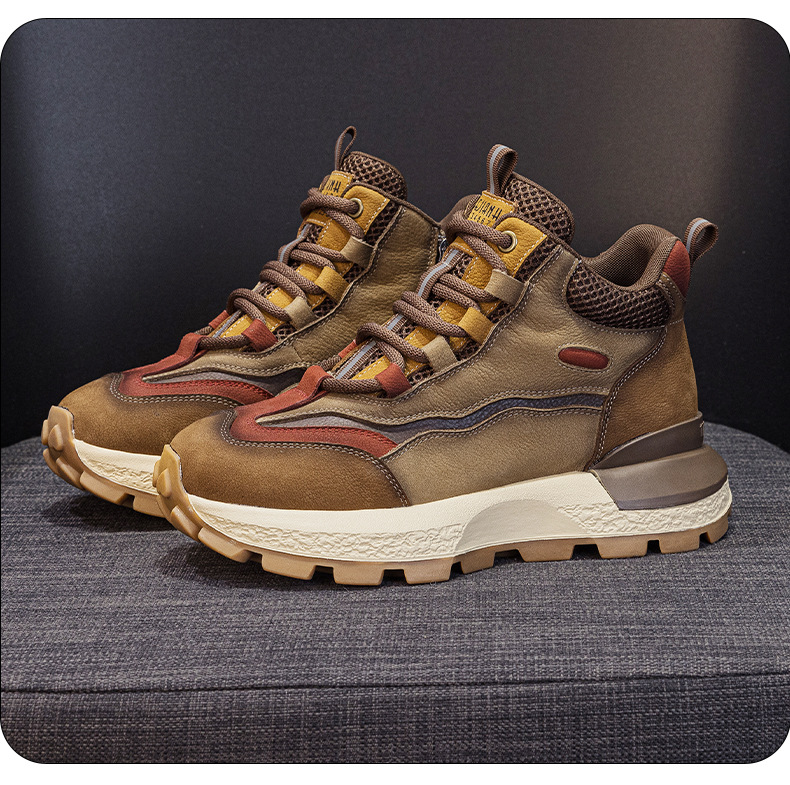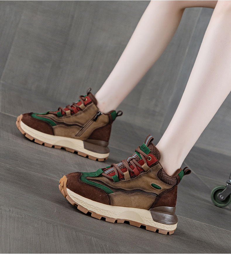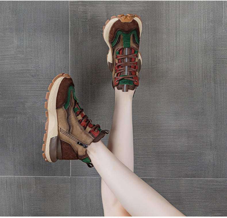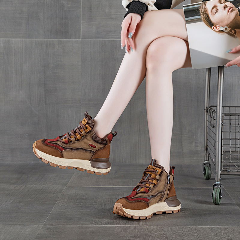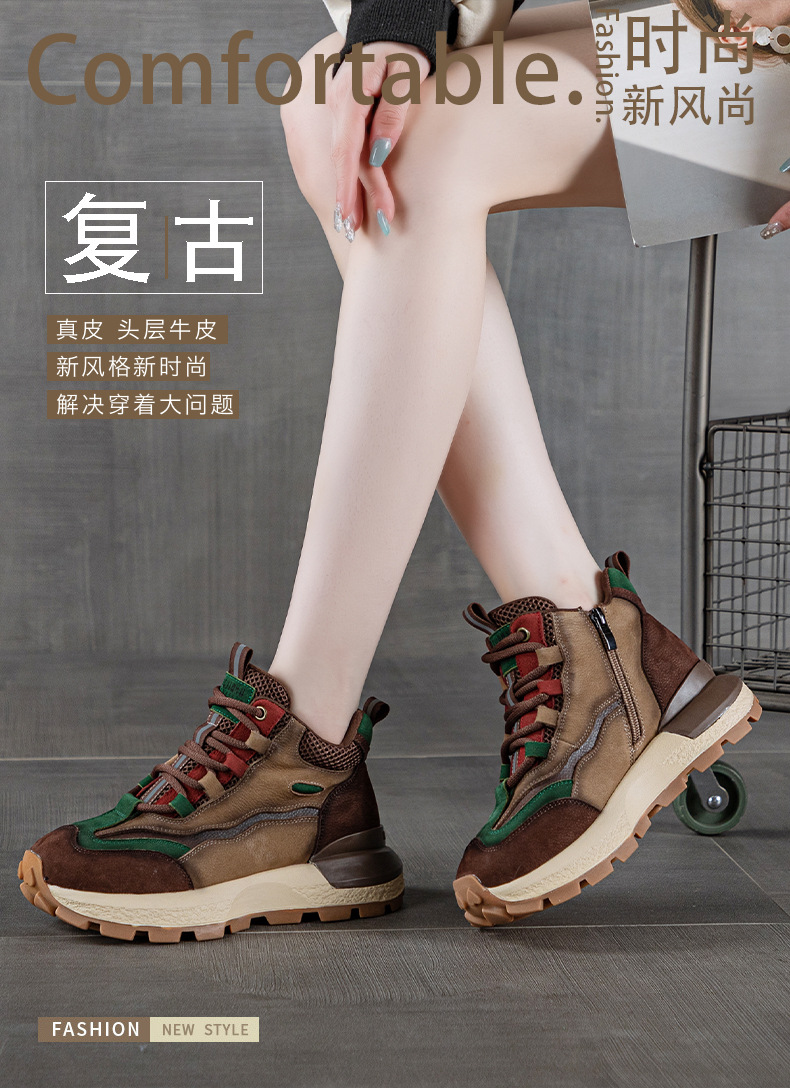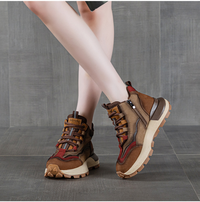 Женские высокие ботинки в стиле ретро из первосортной телячьей кожи, зима 2024, новые, на толстой подошве, увеличивающие рост, повседневные, с добавлением хлопка, в стиле Форреста Гампа