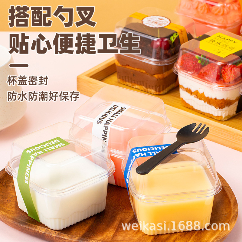 Упаковка для торта, маленькая коробка для тирамису, мусс, десерт, одноразовая упаковка, крем, квадратная, популярная, прозрачная банка