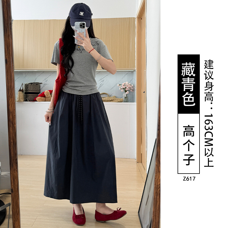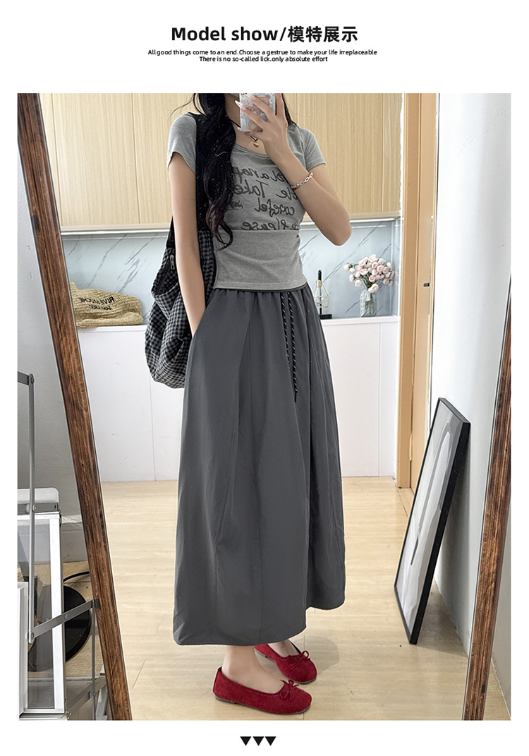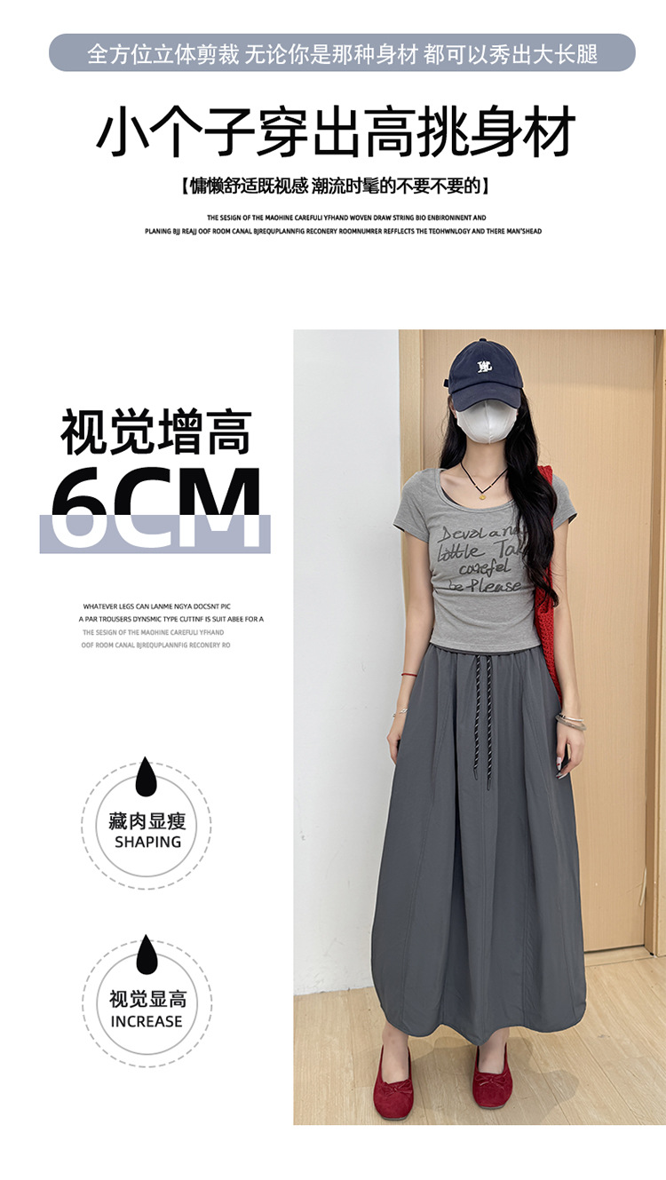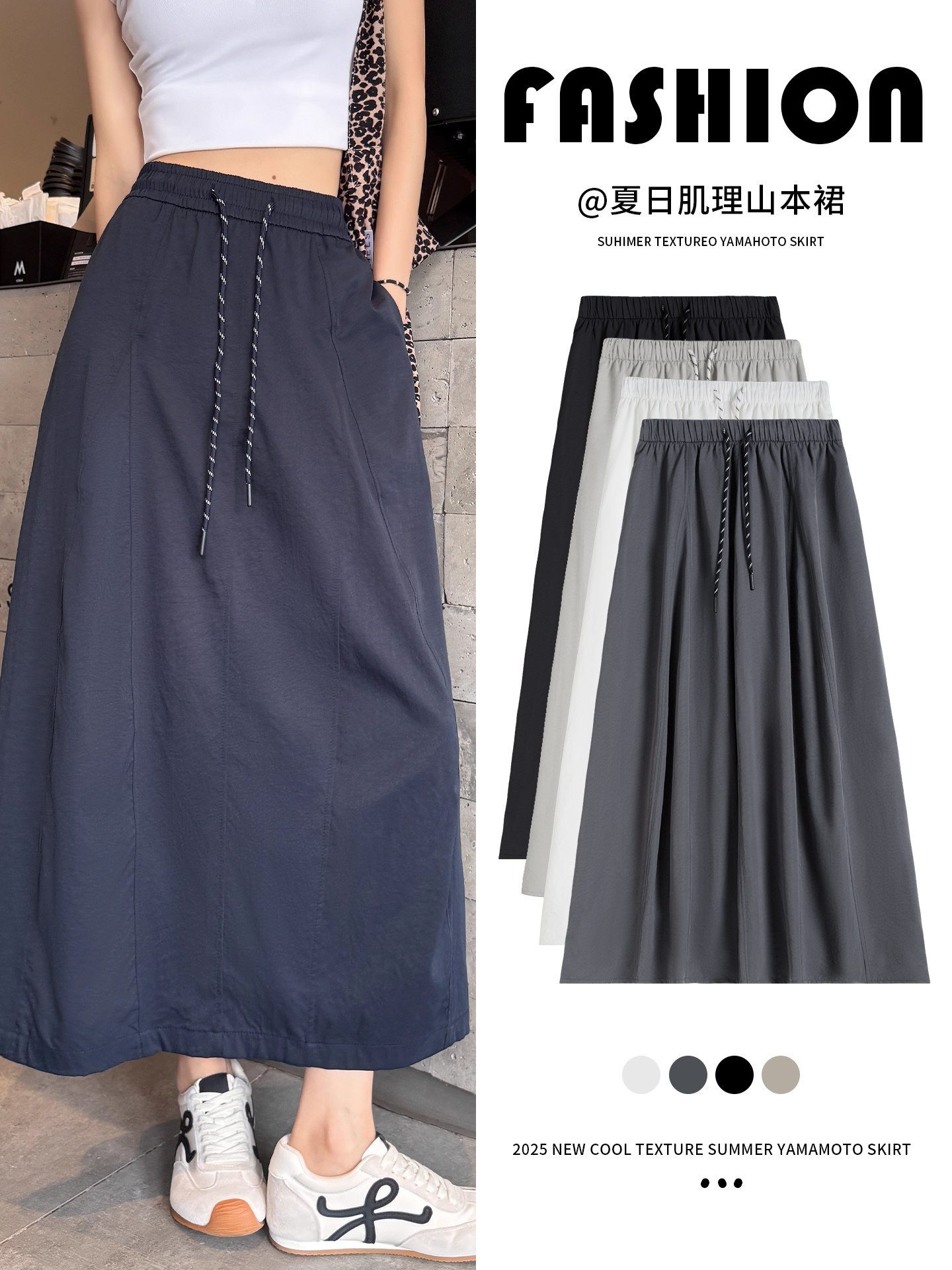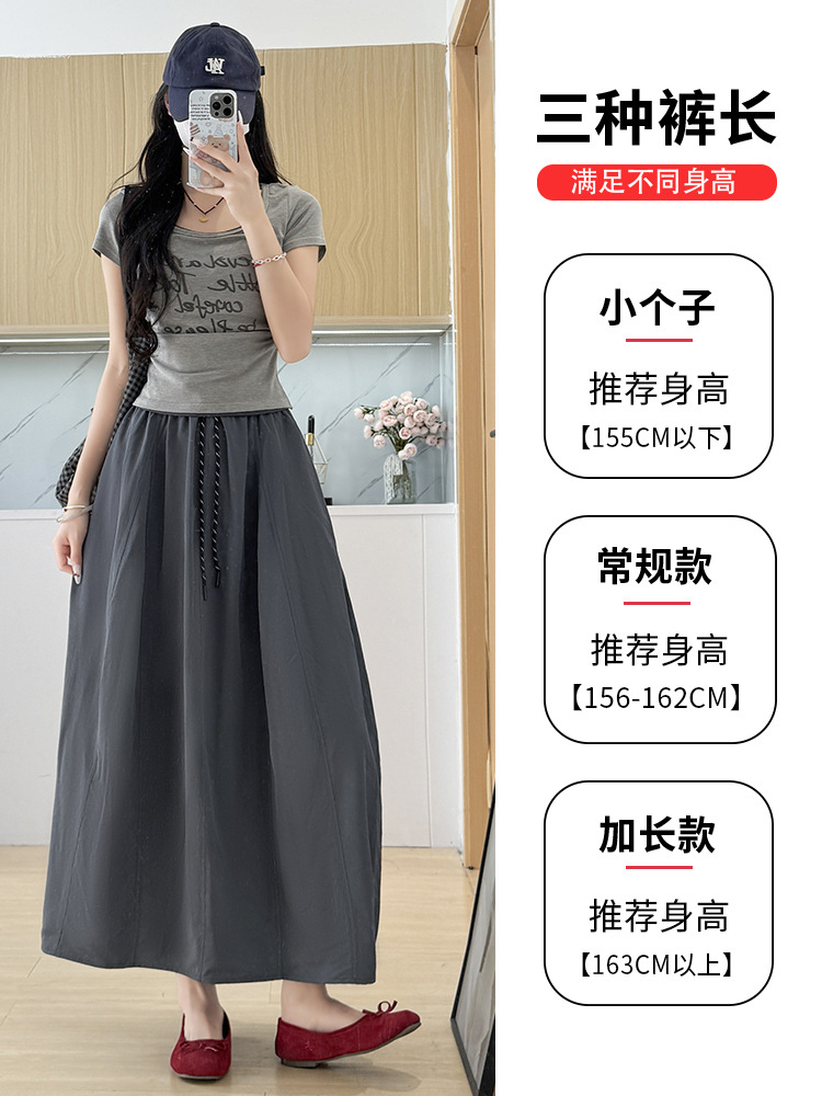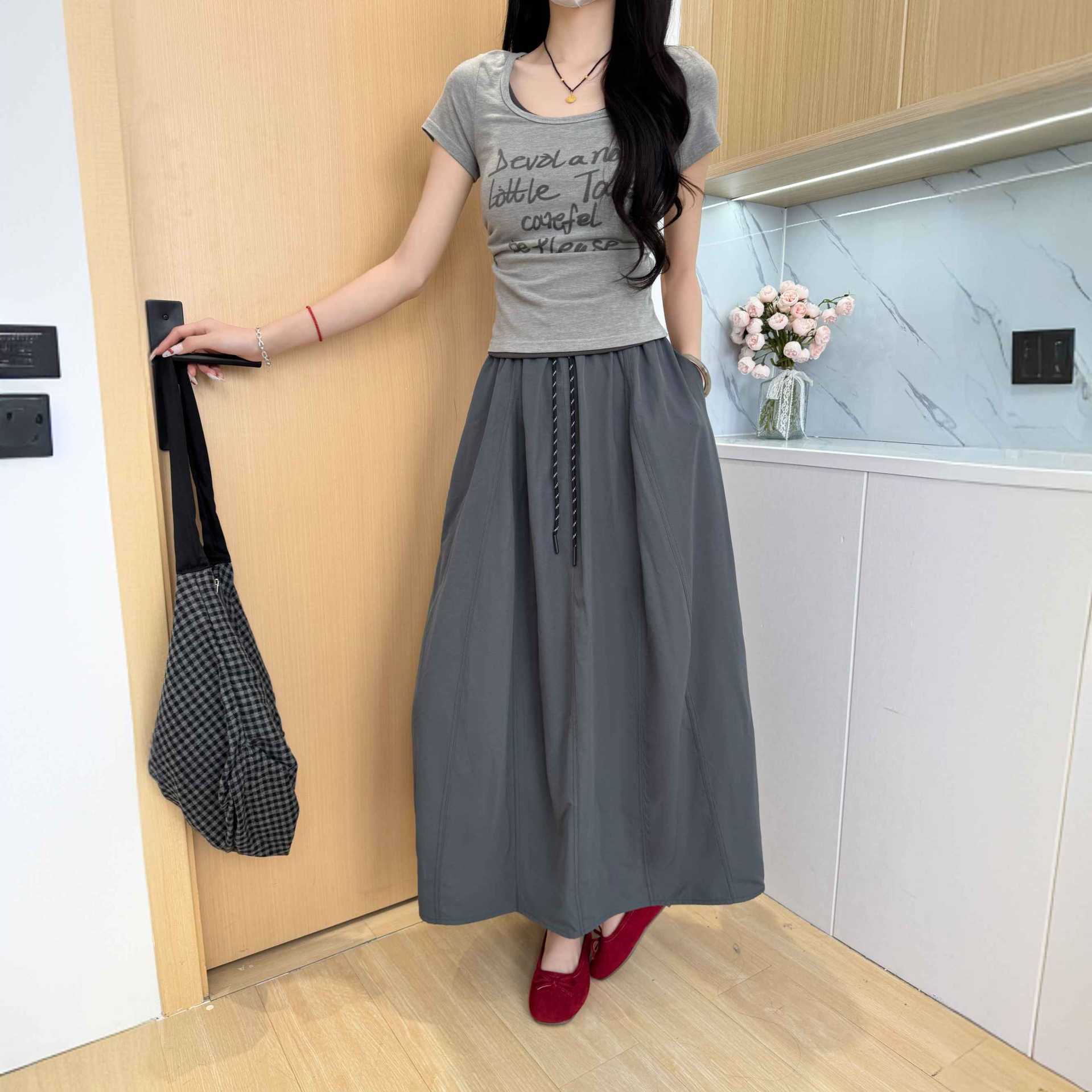 Серая рабочая юбка-полусолнце 2026 года, новая коллекция весна-лето, тонкая, с высокой талией, струящаяся, для миниатюрных фигур, из ледяного шелка, А-силуэт.