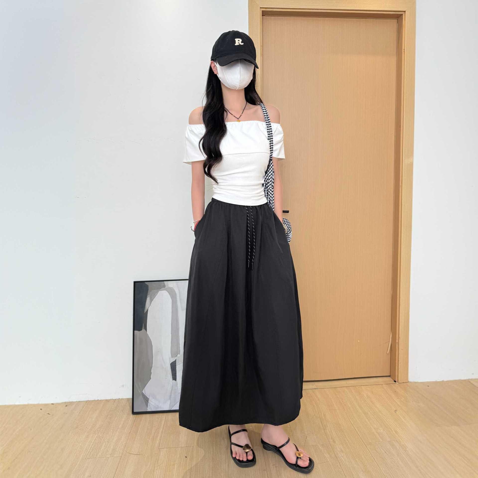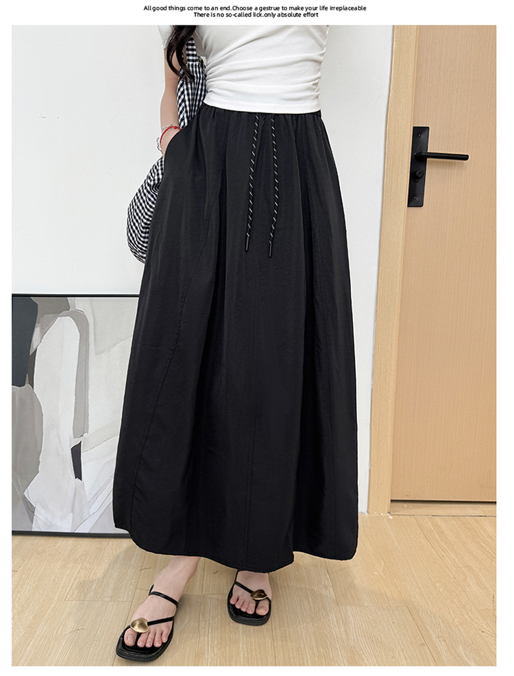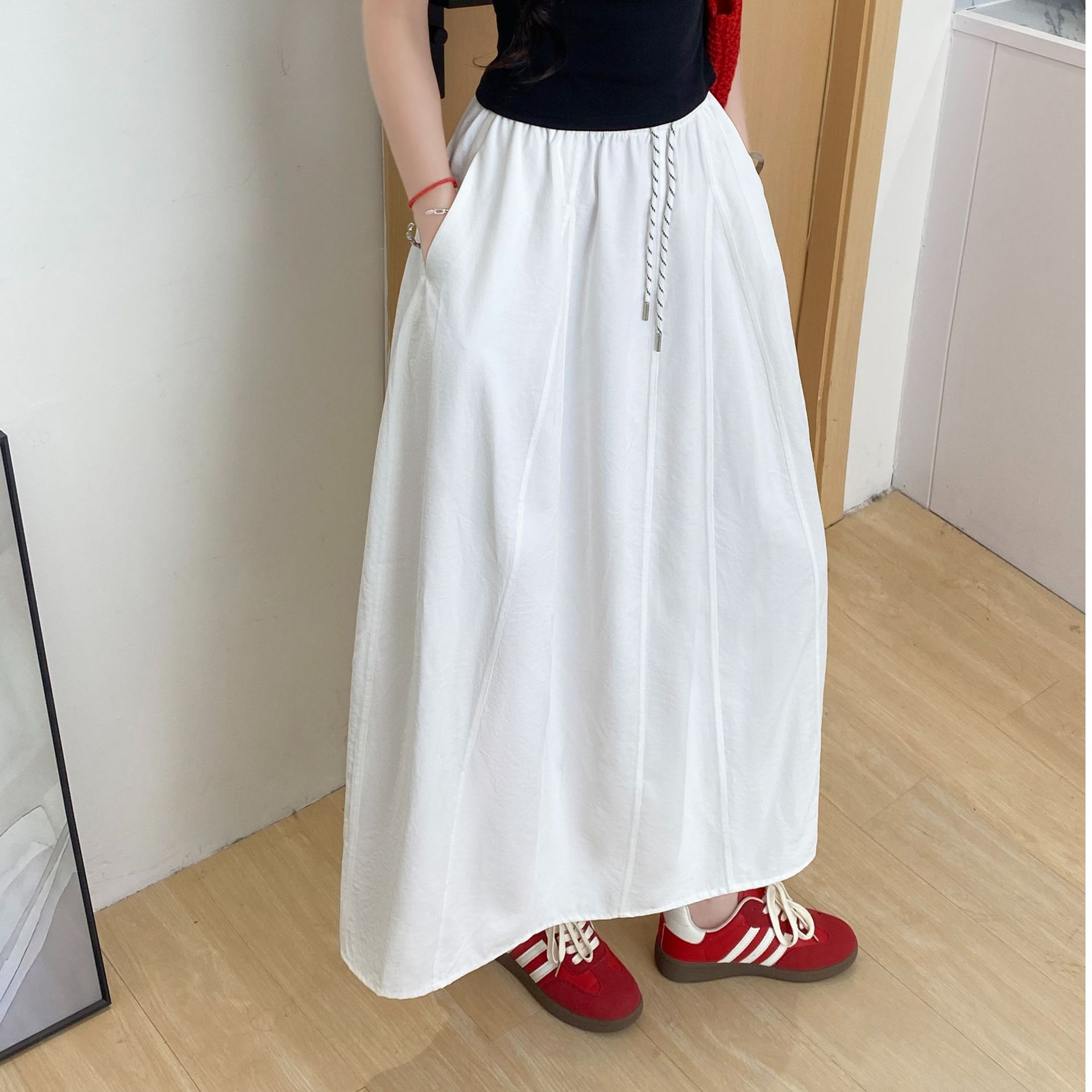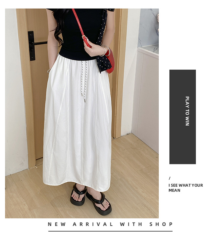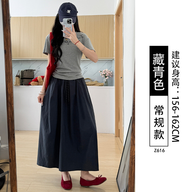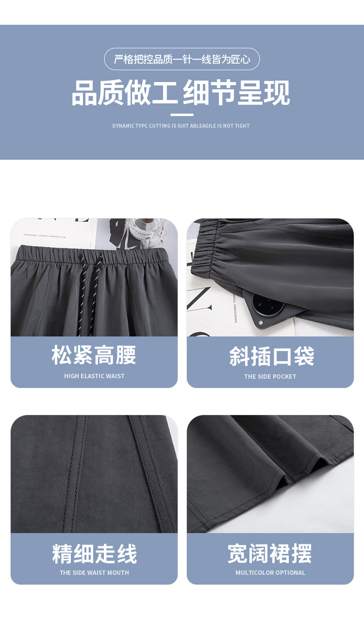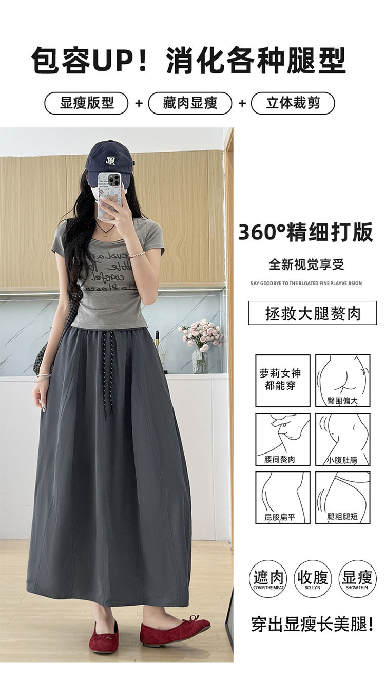 Серая рабочая юбка-полусолнце 2026 года, новая коллекция весна-лето, тонкая, с высокой талией, струящаяся, для миниатюрных фигур, из ледяного шелка, А-силуэт.