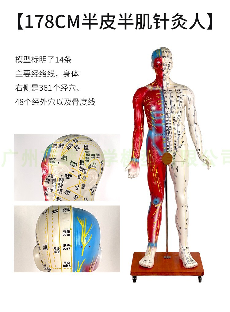 60 см половина кожи и половина мышц акупунктура мужчина; 80 см, половина кожи и половина мышц, иглоукалывание человека; 80 см половина кожи и половина скелета акупунктурный человек; 80 см полностью медного цвета кожаный акупунктурный мужчина; 80 см, полностью белый кожаный акупунктурный мужчина; 178 см акупунктура человеческого медного цвета; 178 см иглоукалывание половина кожи и половина мышц; 178 см, полностью белый человек с иглоукалыванием