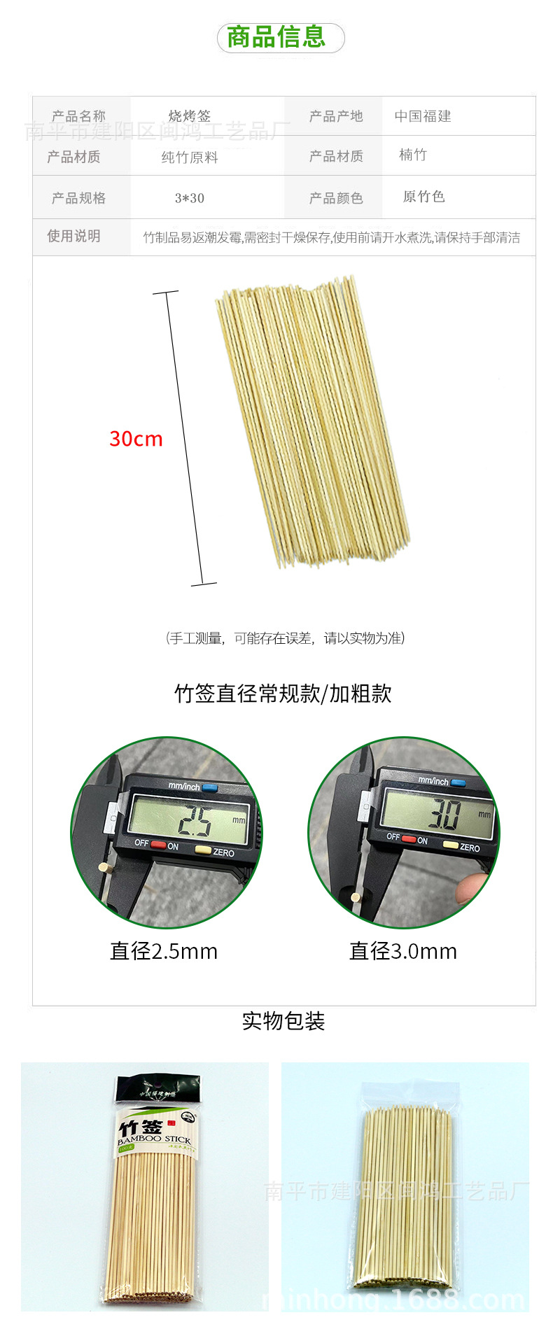 Популярные одноразовые шампуры для барбекю для внешней торговли, фруктовые шампуры для домашнего и коммерческого использования, производитель бамбуковых шампуров для острых горячих горшков оптом 3*30.