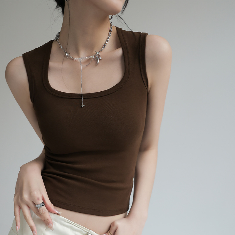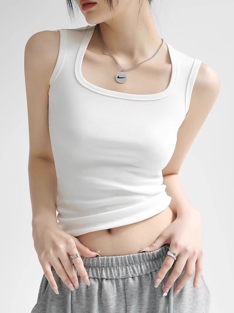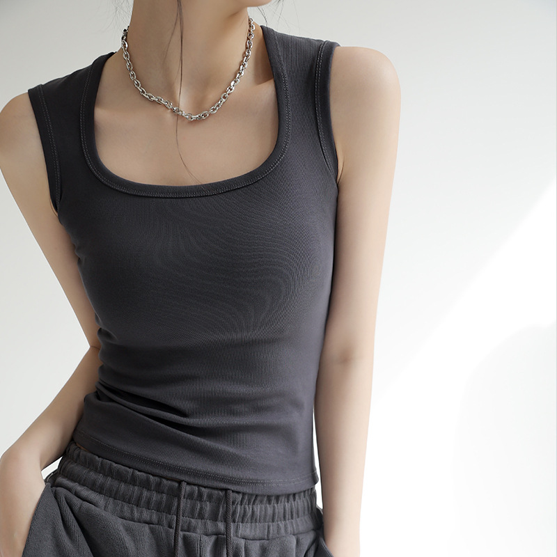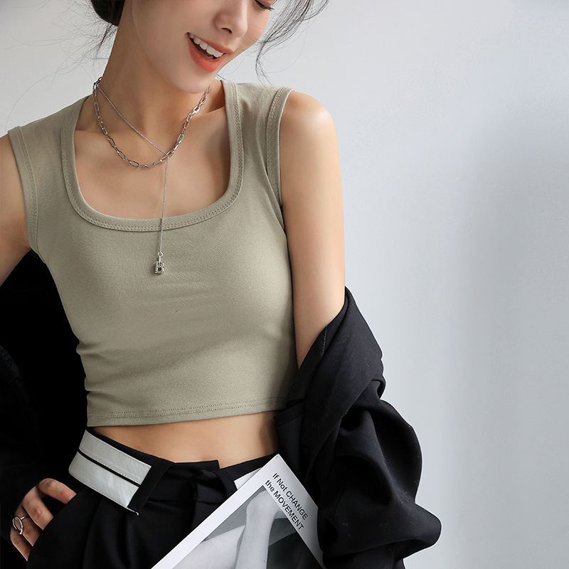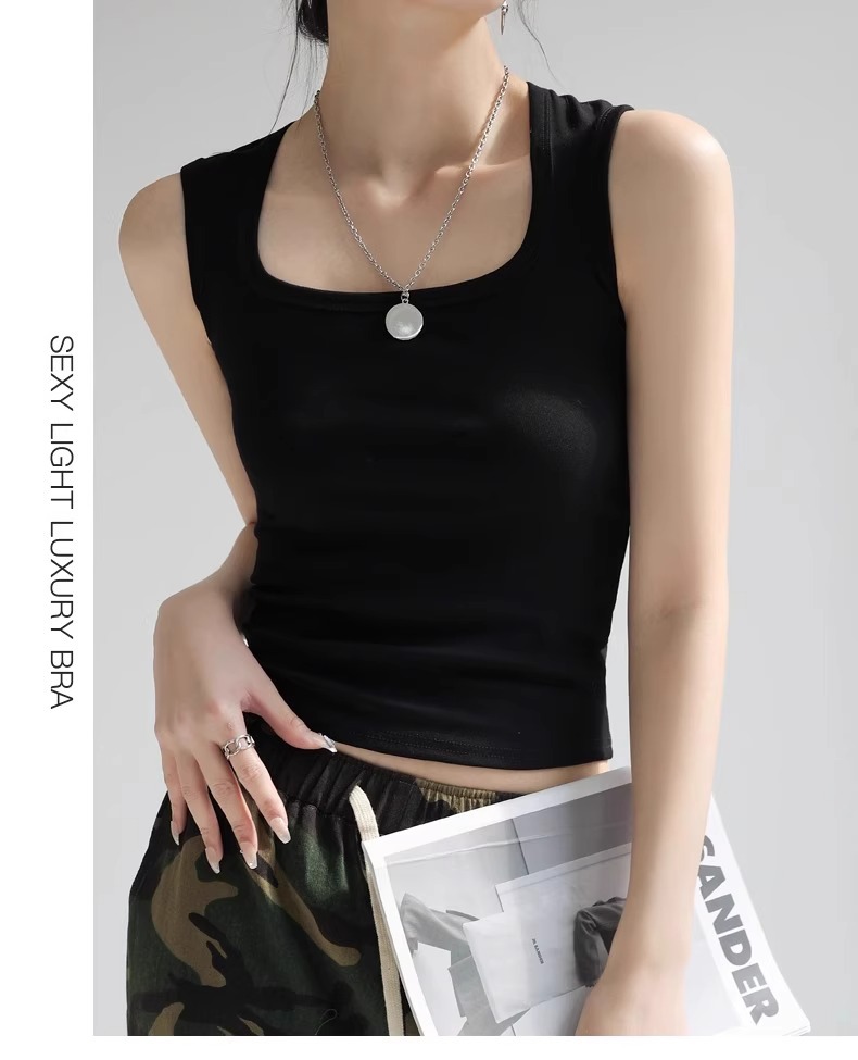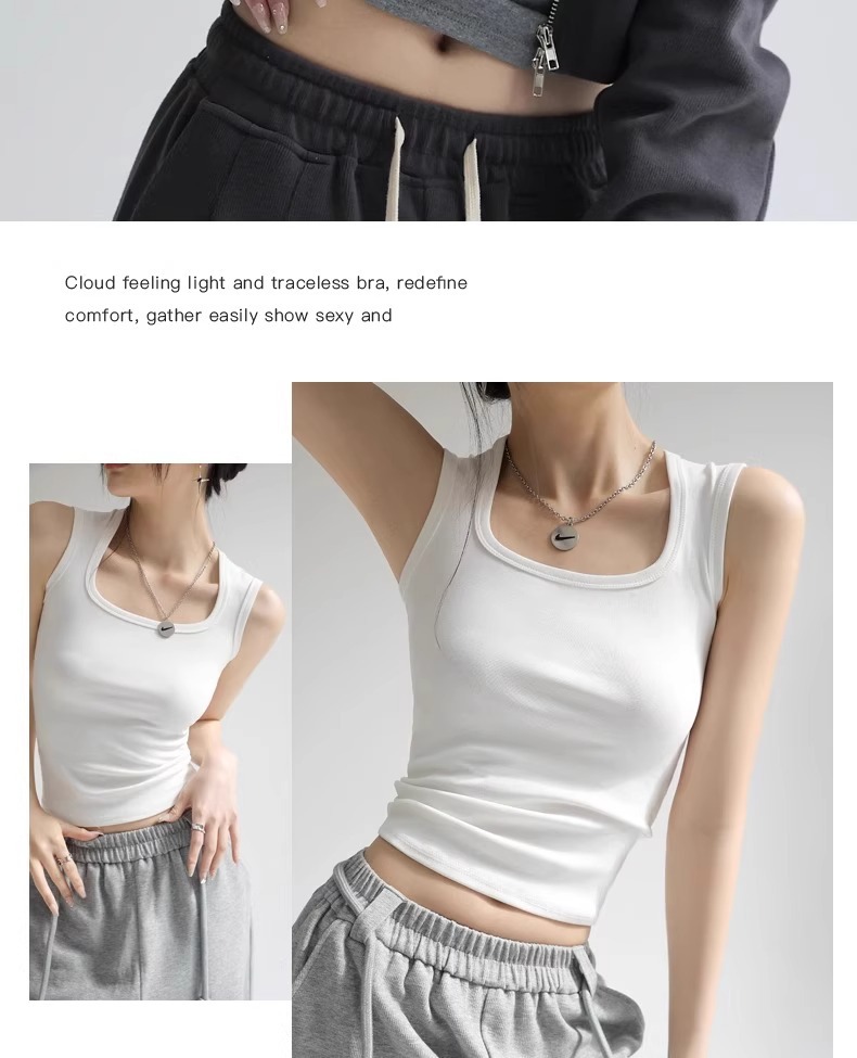 Женская кофточка со встроенным бюстгальтером на лето 2025 года, новая верхняя одежда, боковое прикрытие груди, спортивная спинка, чистый хлопок, широкие бретели, базовый топ, модный.