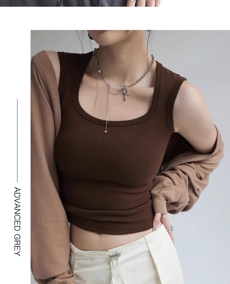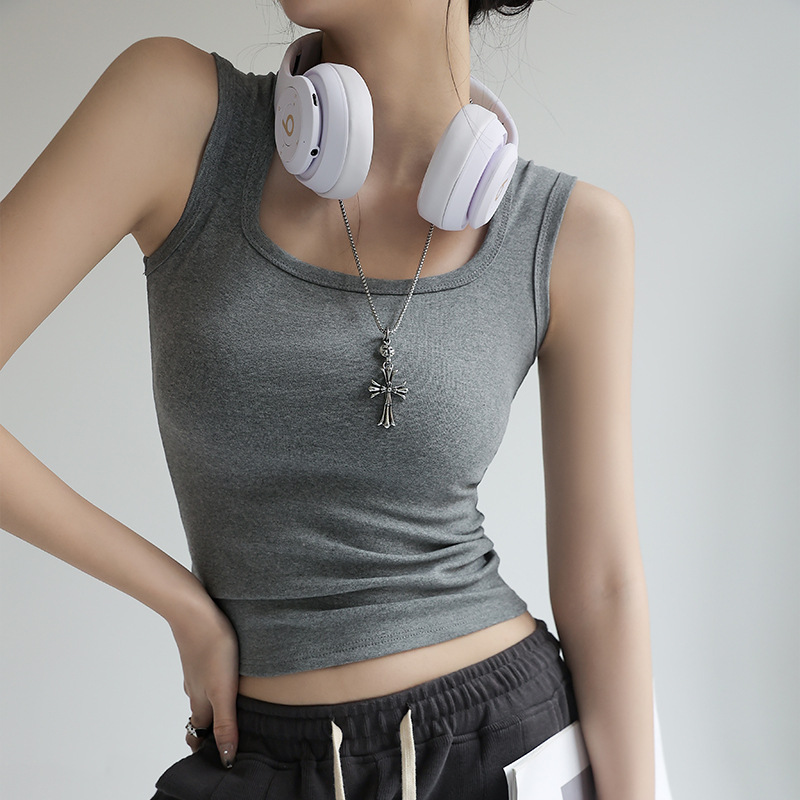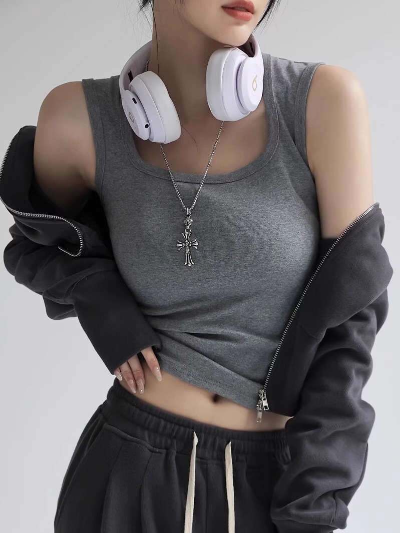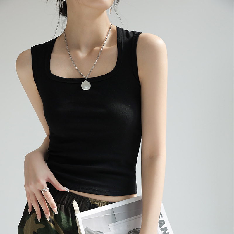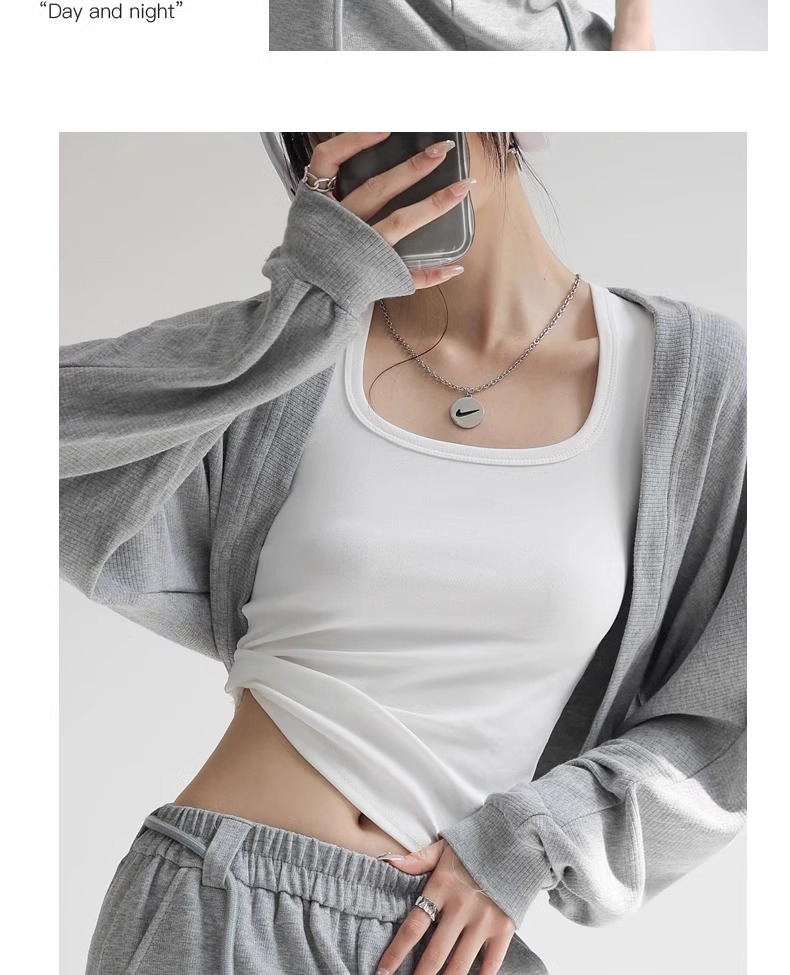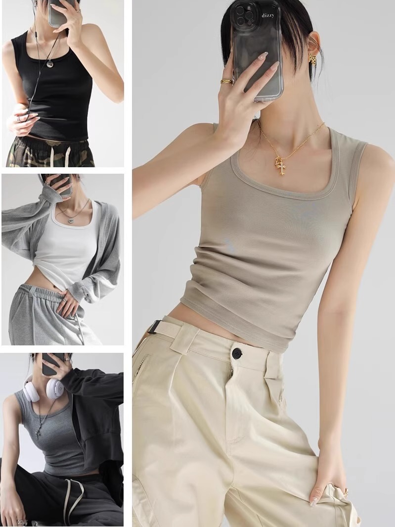 Женская кофточка со встроенным бюстгальтером на лето 2025 года, новая верхняя одежда, боковое прикрытие груди, спортивная спинка, чистый хлопок, широкие бретели, базовый топ, модный.