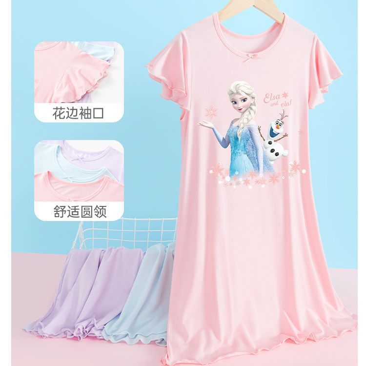 Детское платье-пижама с принтом Эльзы из мультфильма «Холодное сердце», новинка 2026 года, ночная рубашка для девочек, домашняя одежда