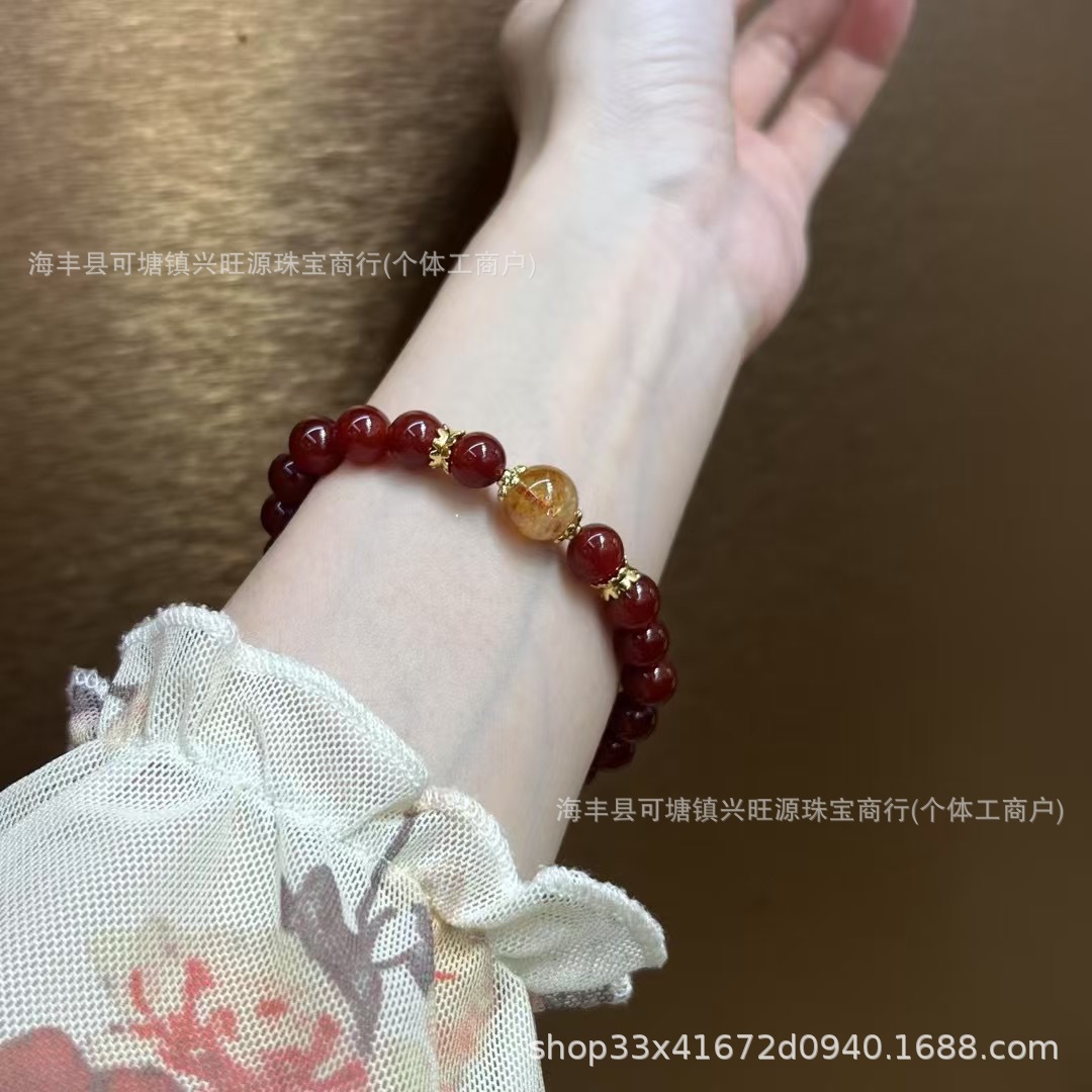 天然红玛瑙手串搭配黄塔晶黄水晶手链简约轻奢原创设计饰品批发款 批发量越大价格越低,可供直播间长期合作,欢迎来电私聊