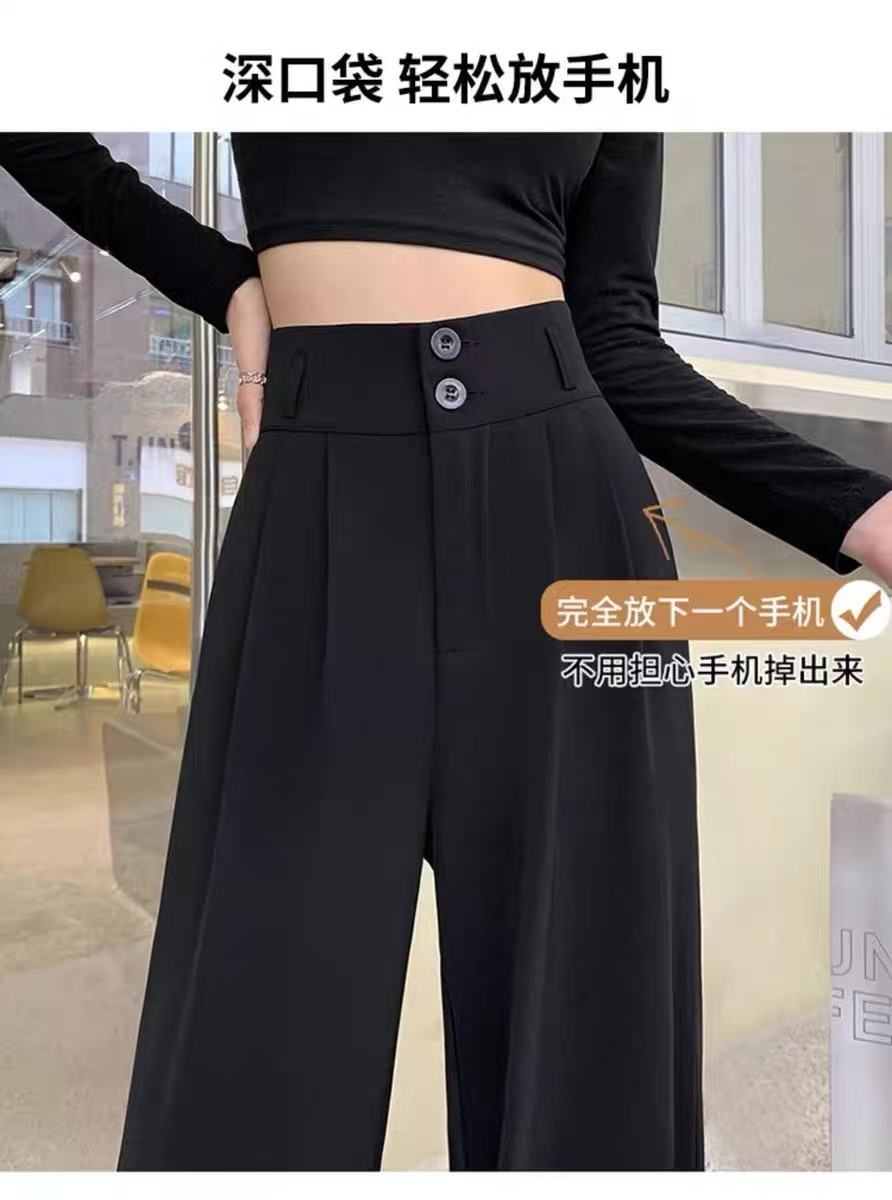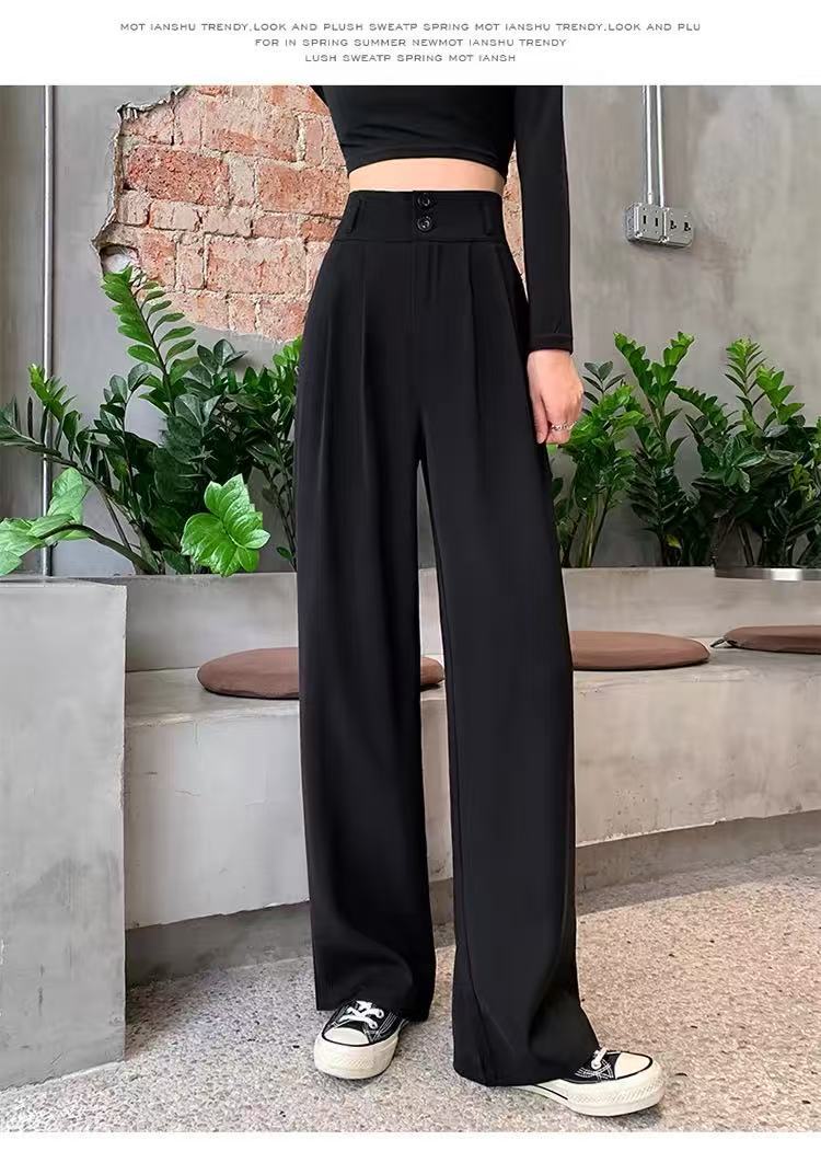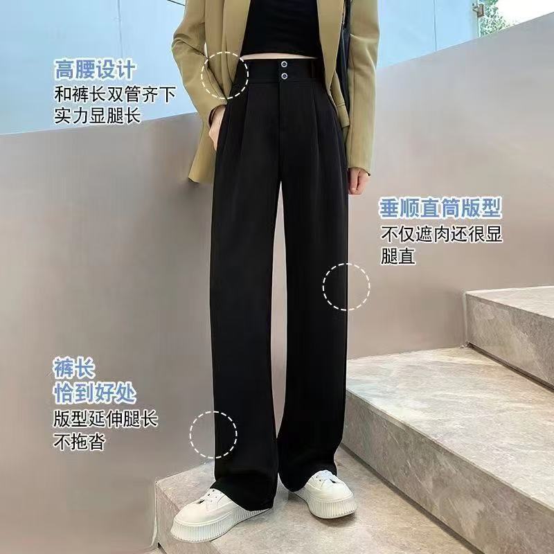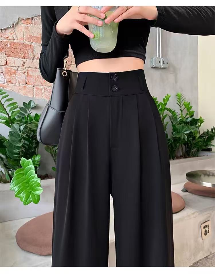 Новые летние узкие широкие брюки для женщин, универсальные костюмные брюки, свободные повседневные драпированные черные прямые брюки