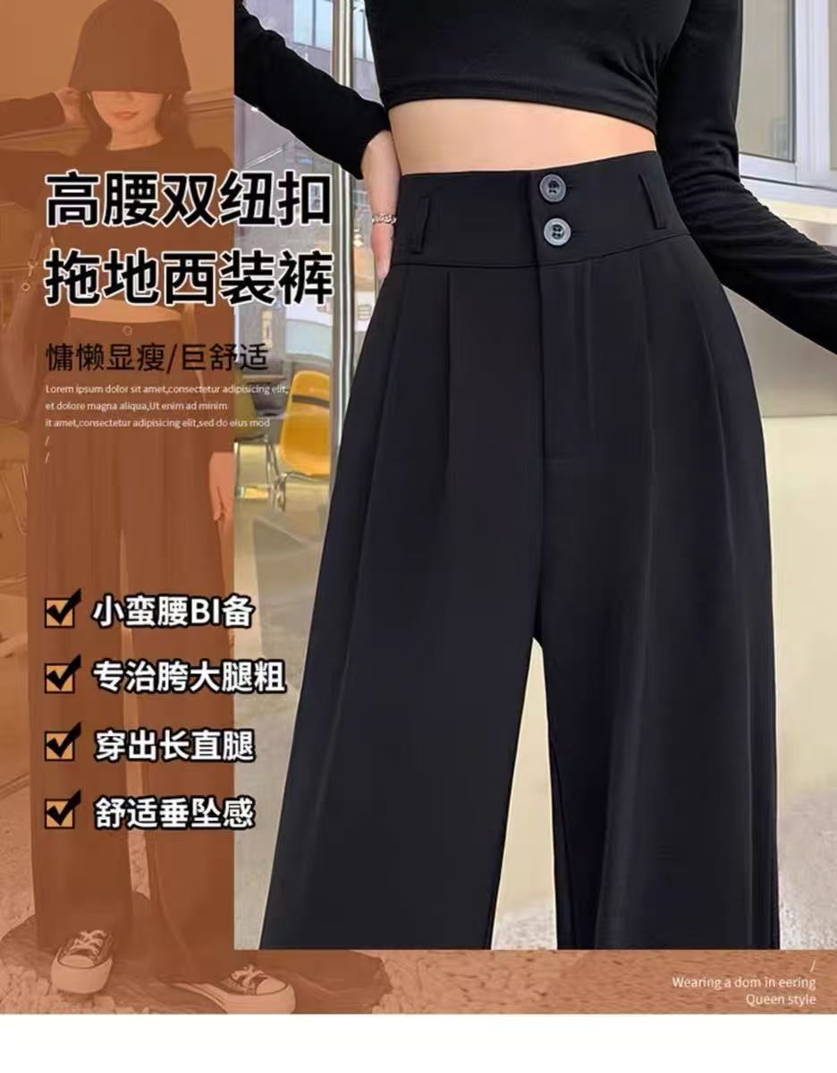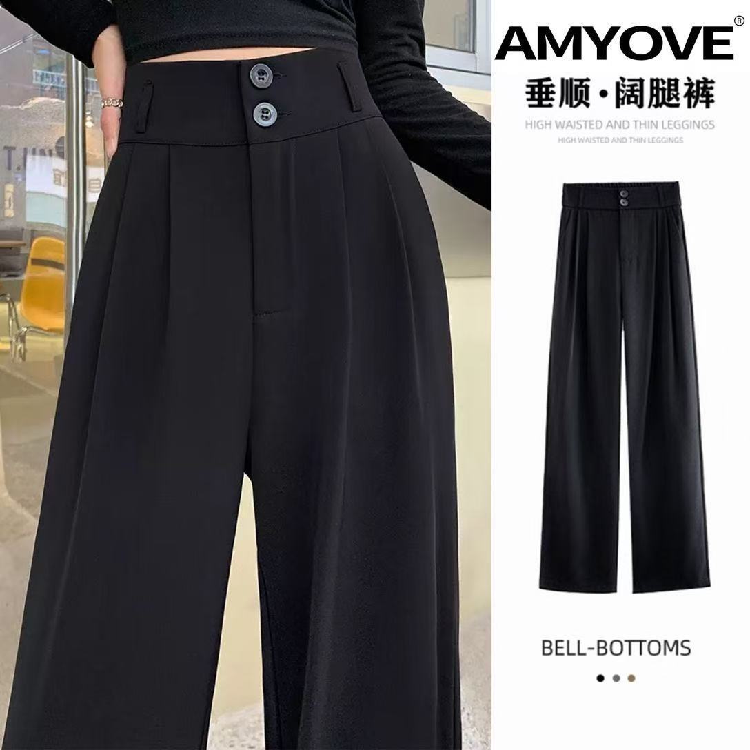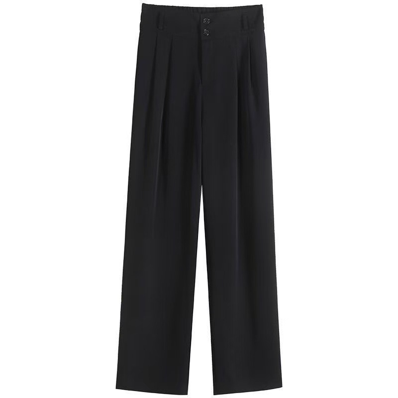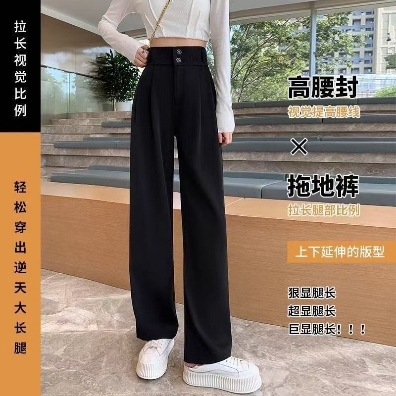Новые летние узкие широкие брюки для женщин, универсальные костюмные брюки, свободные повседневные драпированные черные прямые брюки