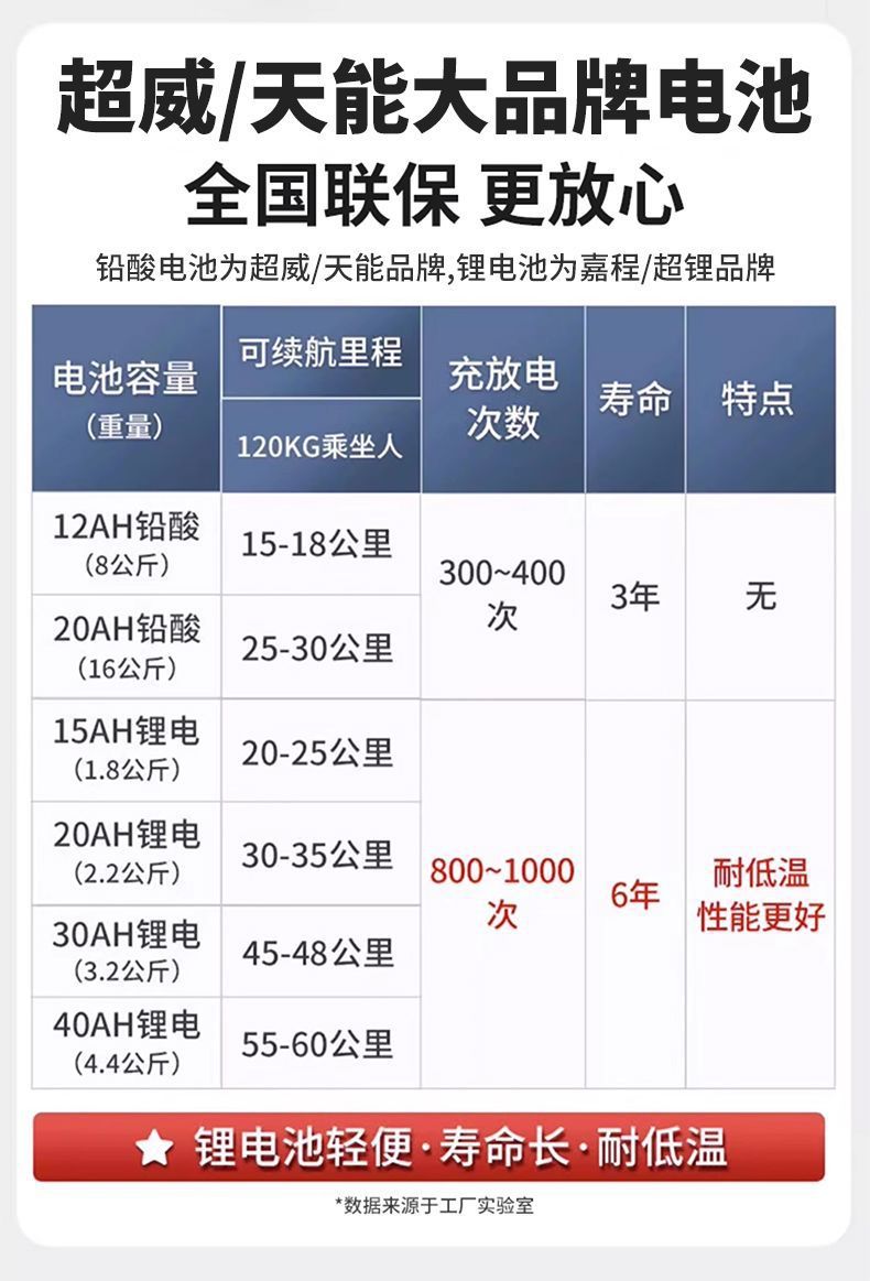 [Портативная модель] Свинцовая батарея емкостью 12 Ач обеспечивает пробег 18 километров.; [Портативная модель] Литиевая батарея емкостью 15 Ач может пройти 20 километров.; [Портативная модель] Литиевая батарея емкостью 30 Ач может пройти 40 километров.; [Стандартная модель с низкой спинкой] Свинцовая батарея емкостью 12 Ач обеспечивает пробег 18 километров.; [Стандартная модель с низкой спинкой] Свинцовая батарея 20 Ач + пробег 30 километров; [Стандартная модель с низкой спинкой] Литиевая батарея емкостью 15 Ач работает на расстоянии 20 километров.; [Стандартная модель с низкой спинкой] Литиевая батарея емкостью 20 Ач работает на расстоянии 32 километров.; [Модель с высокой спинкой и откидной спинкой] Свинцовая батарея 12 Ач обеспечивает пробег 18 километров.; [Модель с высокой спинкой и откидной спинкой] Свинцовая батарея емкостью 20 Ач обеспечивает пробег 30 километров.; [Модель с высокой спинкой и откидной спинкой] Литиевая батарея 15 Ач работает на расстоянии 20 километров.; [Модель с высокой спинкой и откидной спинкой] Литиевая батарея емкостью 20 Ач обеспечивает пробег 32 километра.