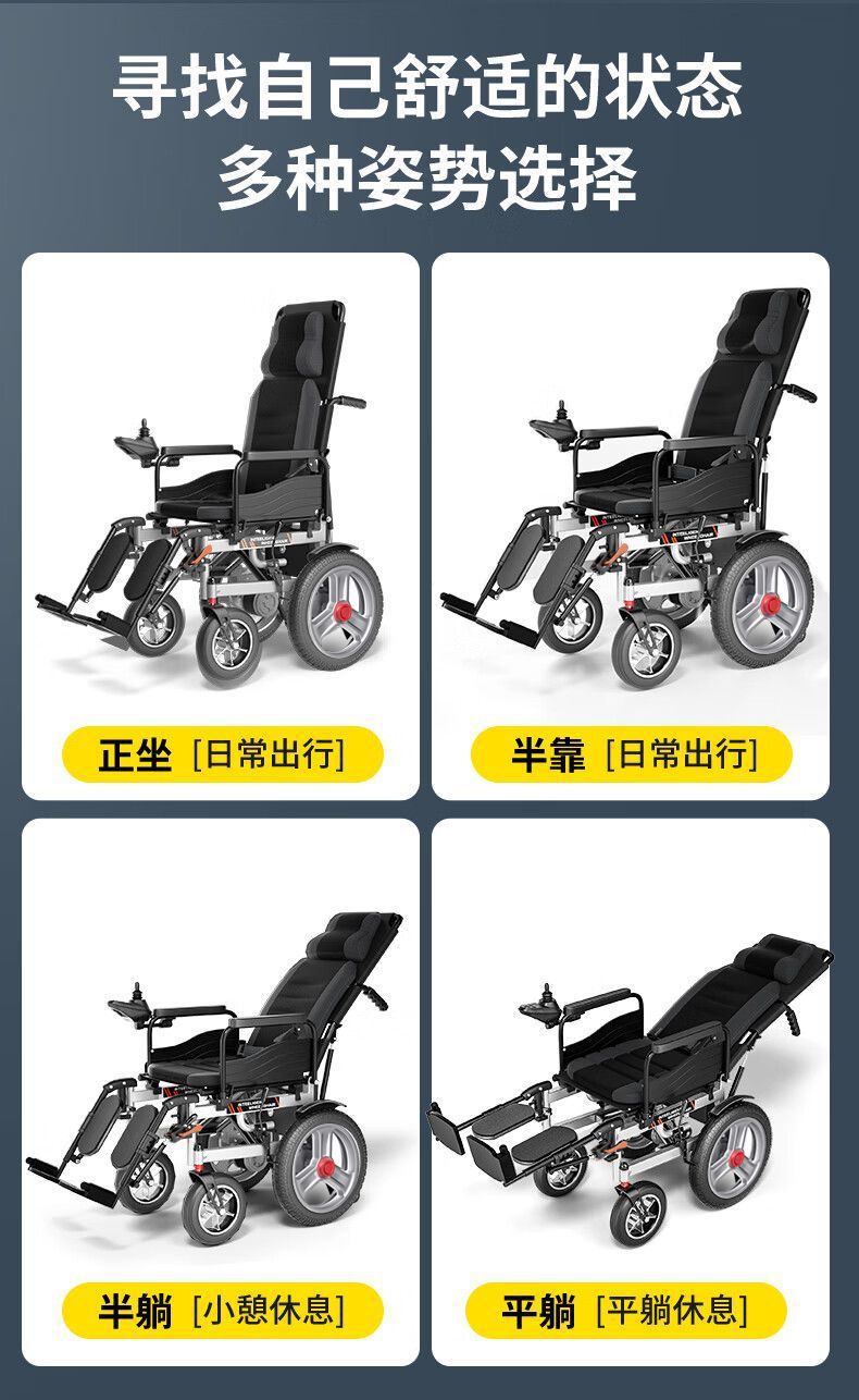 Электрическая инвалидная коляска для пожилых людей, складная легкая умная инвалидная коляска для инвалидов, полностью автоматическая инвалидная коляска-скутер с откидной спинкой и сиденьем