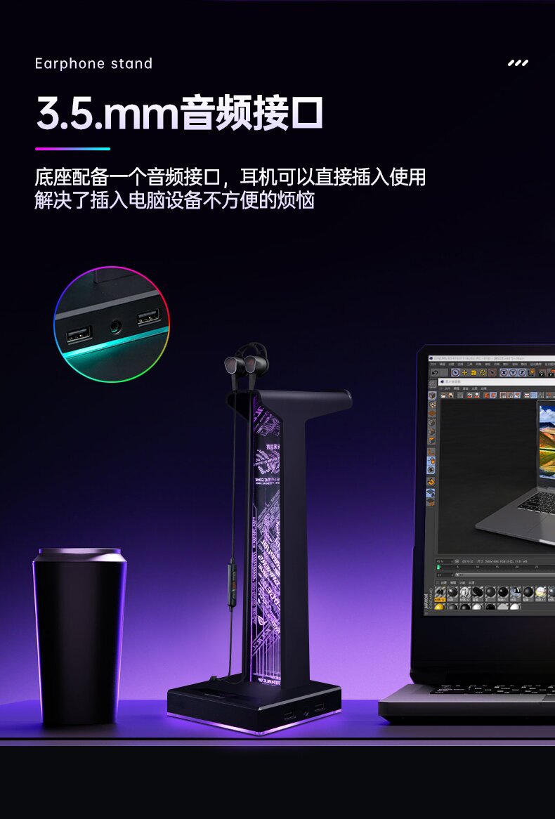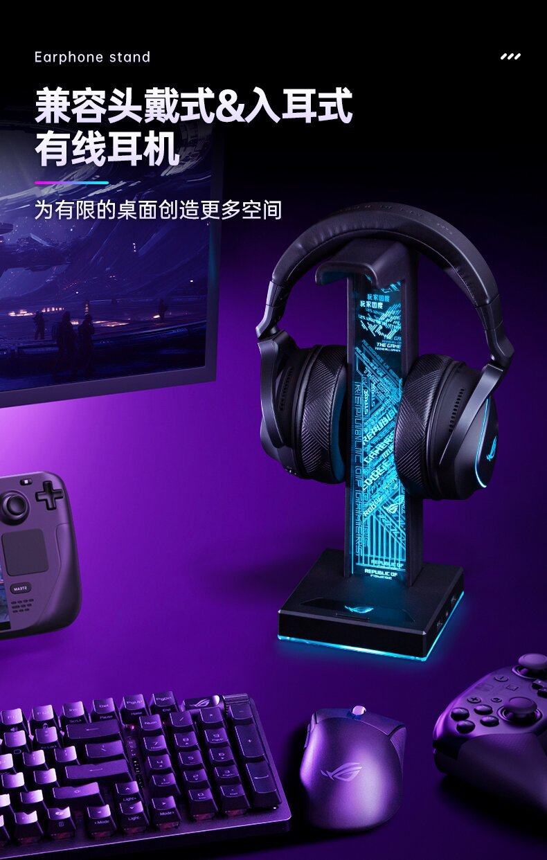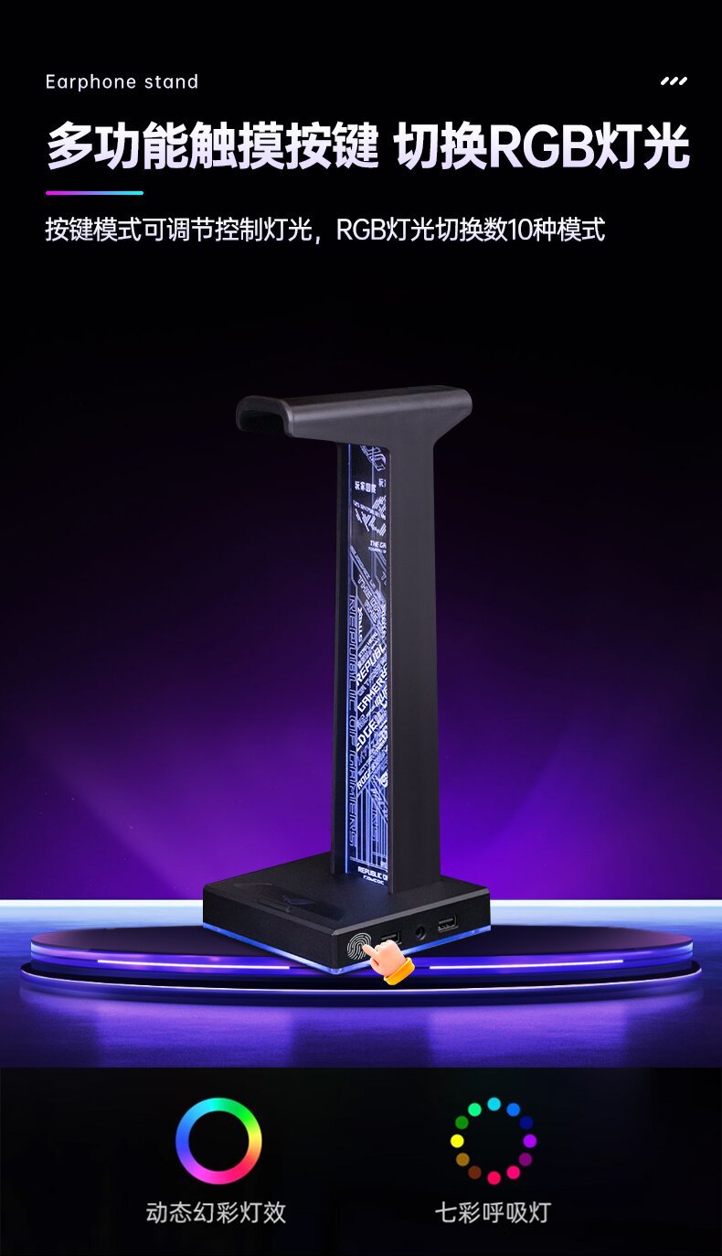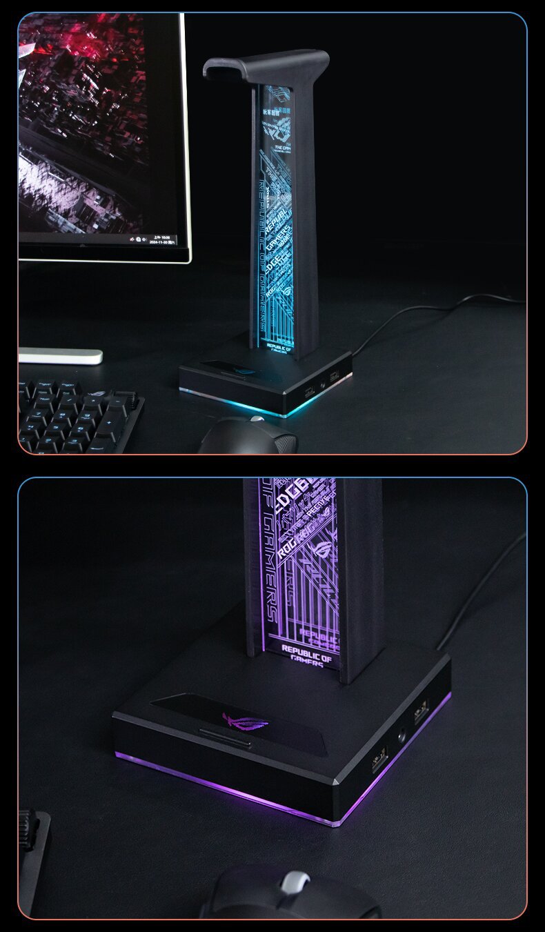 Modgo подходит для подставки для наушников ROG, RGB-подсветка, атмосферный светильник, держатель для наушников, встроенная док-станция USBHUB