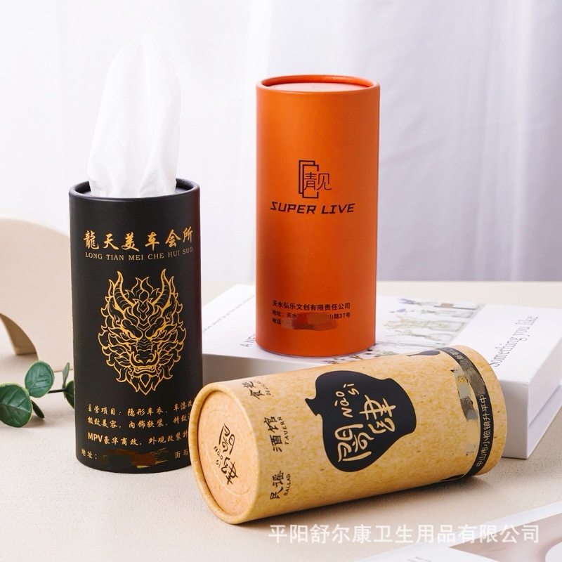 Автомобильная цилиндрическая салфетка, оптовая продажа, банка отеля, реклама, коммерческая портативная подарочная акция, утолщенное ведро для бумаги с печатью логотипа