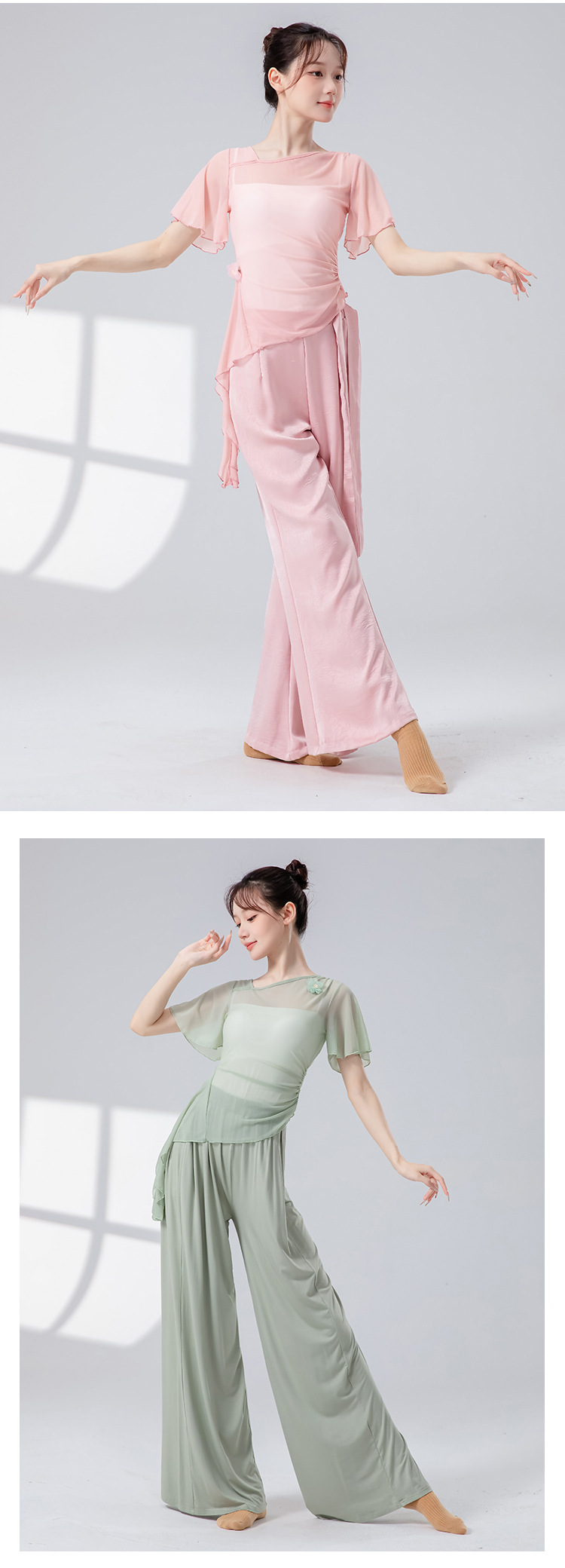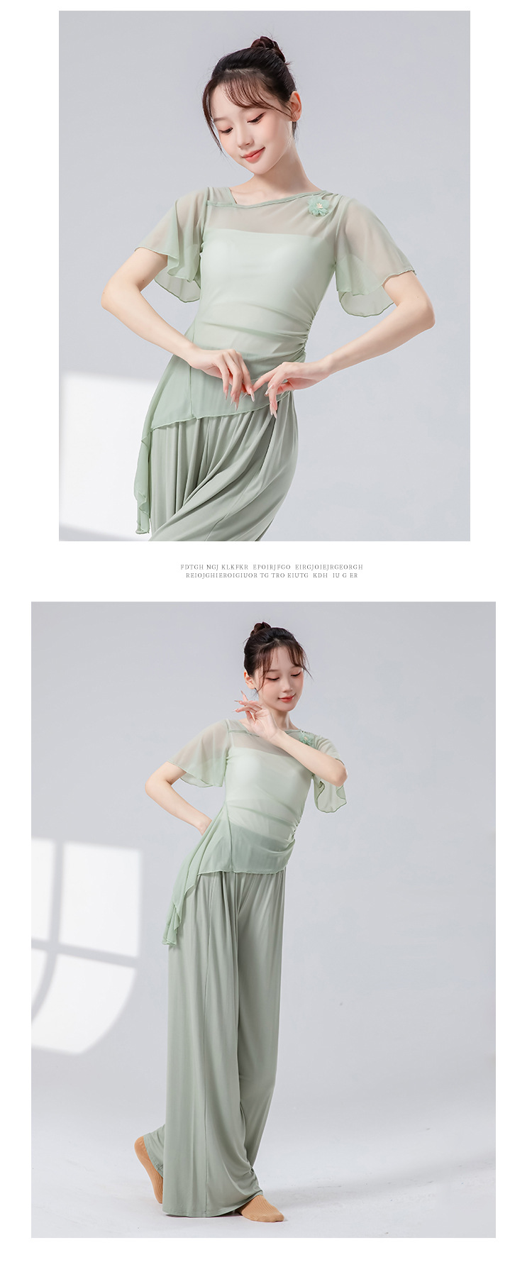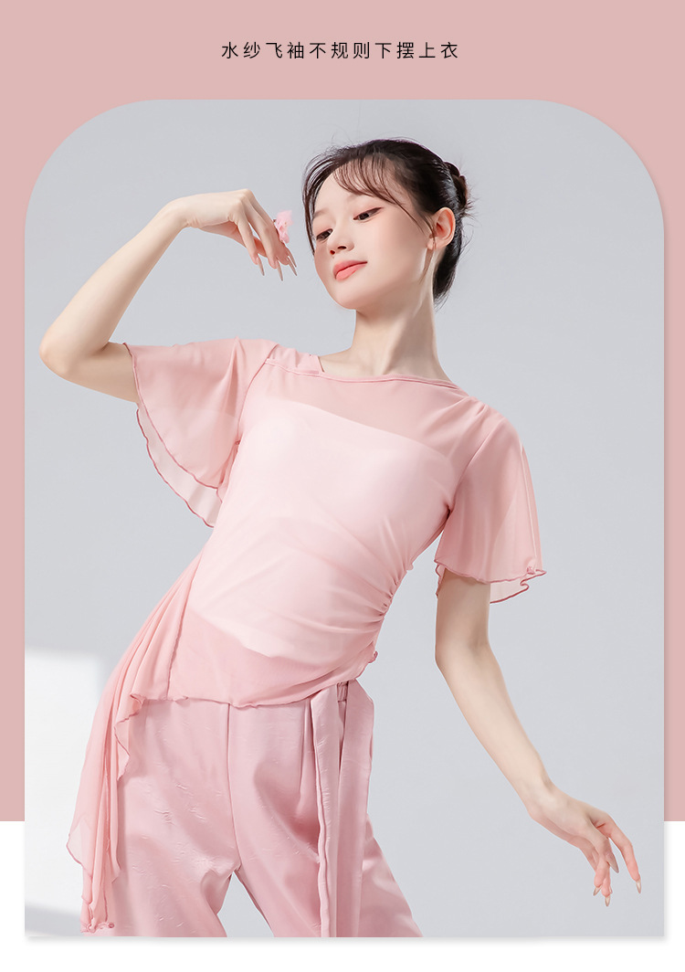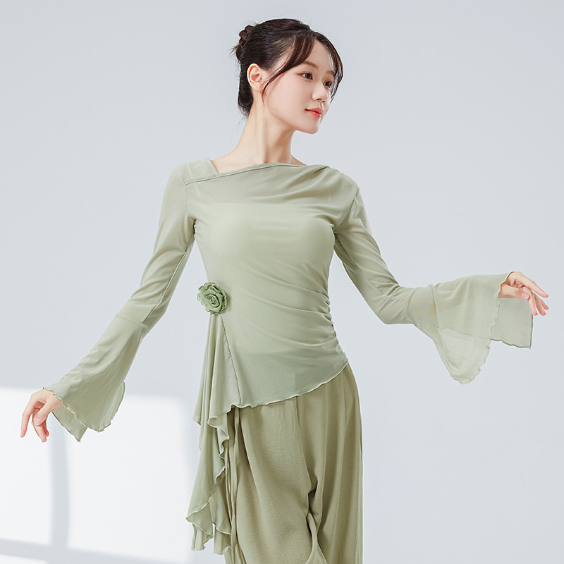 Классическая танцевальная одежда для женщин, новый облегающий топ с короткими рукавами из сетки с цветочным принтом, китайский танцевальный костюм для ежедневных тренировок и выступлений.