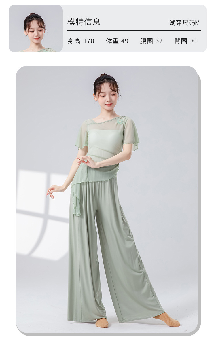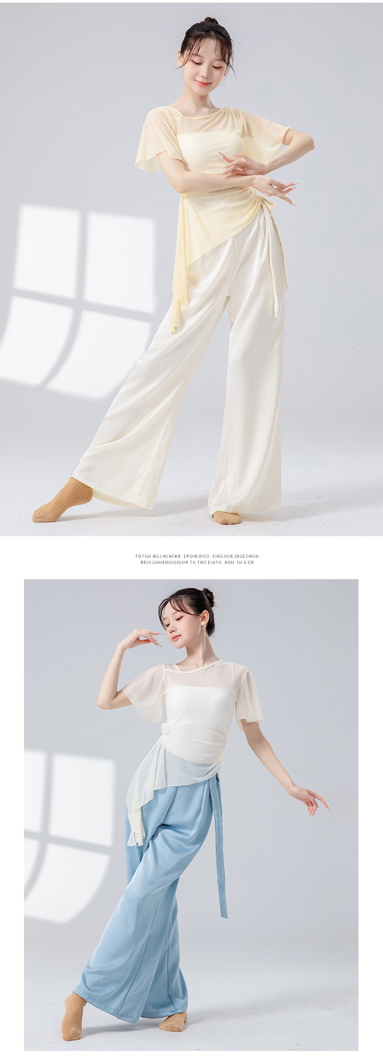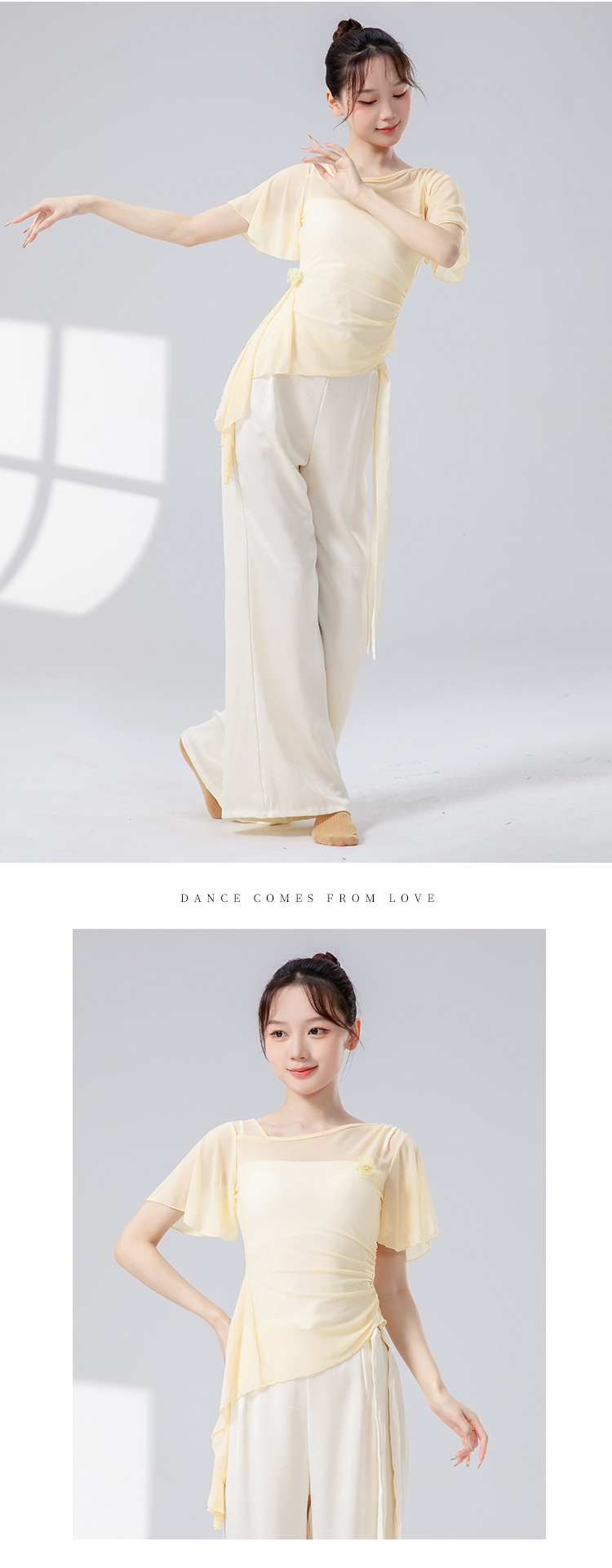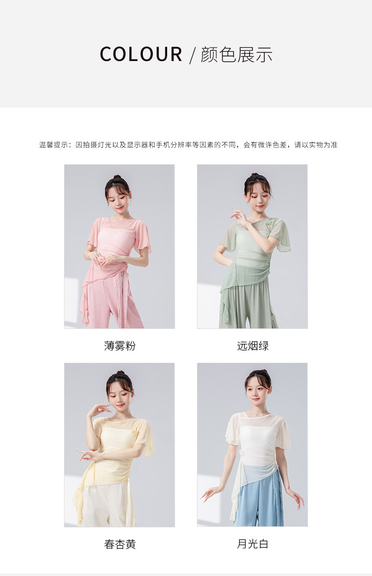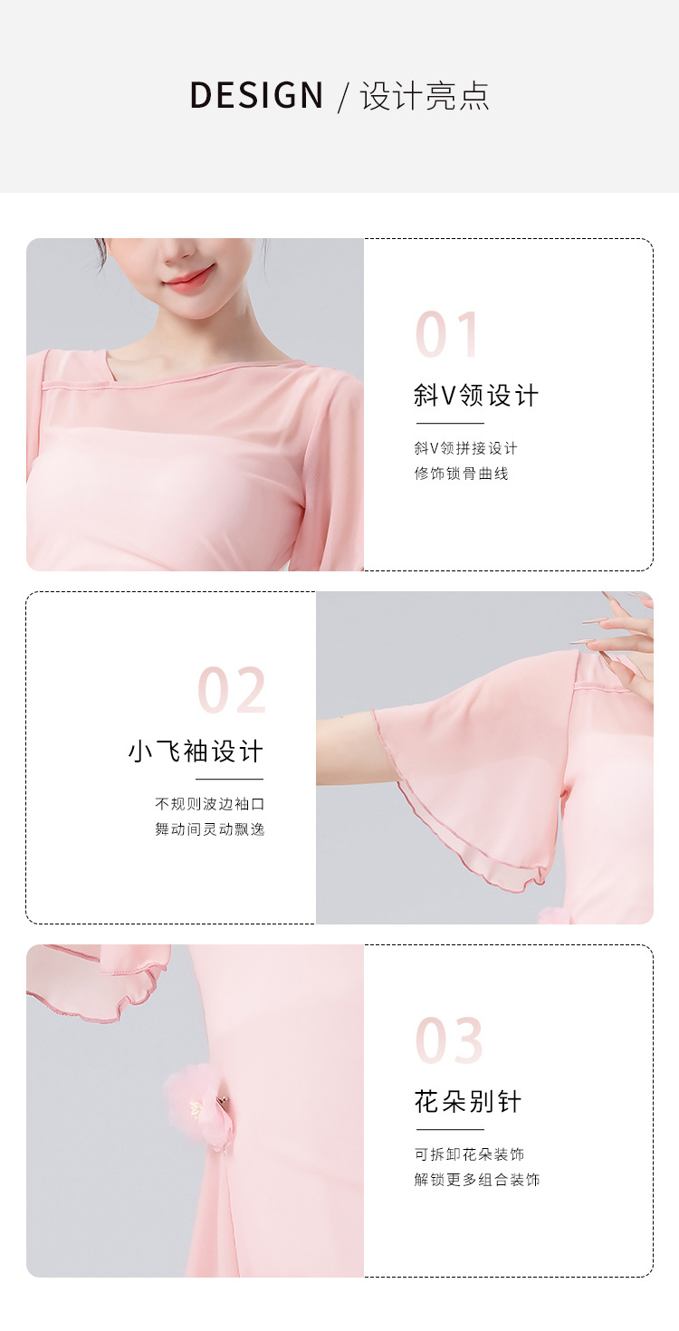 Классическая танцевальная одежда для женщин, новый облегающий топ с короткими рукавами из сетки с цветочным принтом, китайский танцевальный костюм для ежедневных тренировок и выступлений.