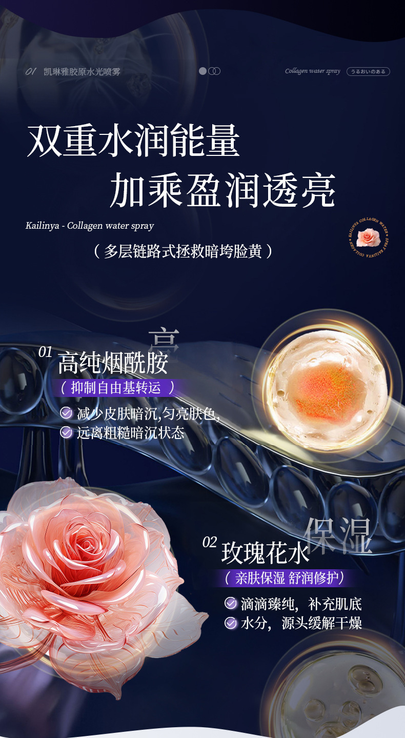 Kailin коллаген водяной световой спрей увлажняющий увлажняющий увлажняющий увлажняющий, улучшающий тусклый, освежающий и освежающий тоник