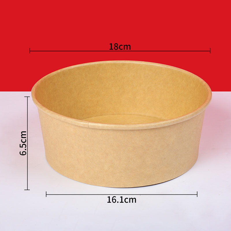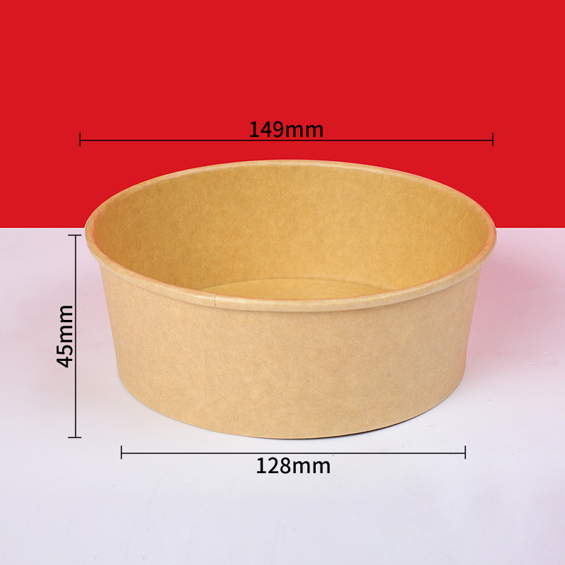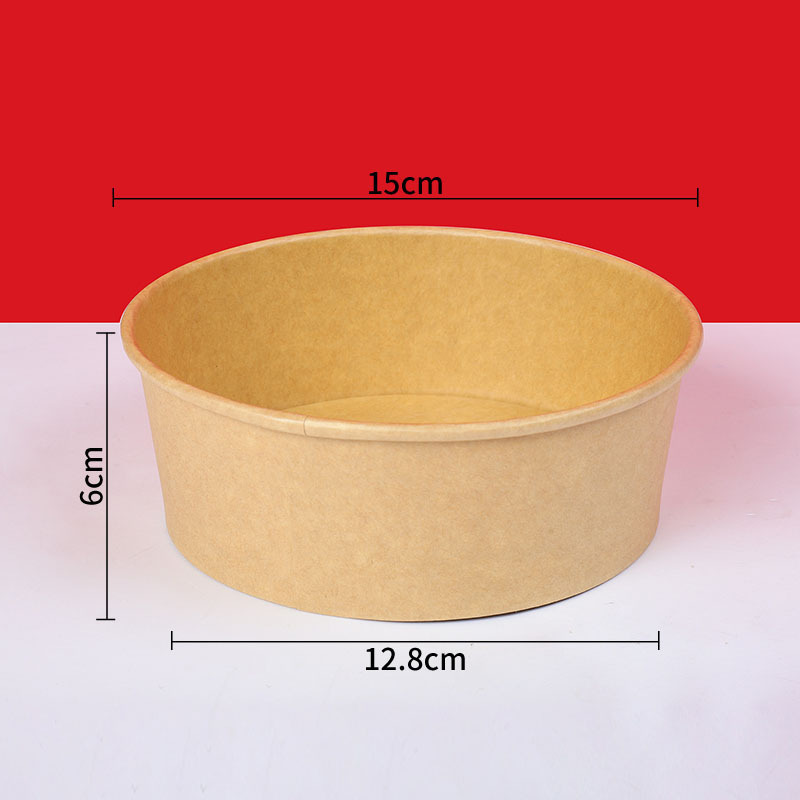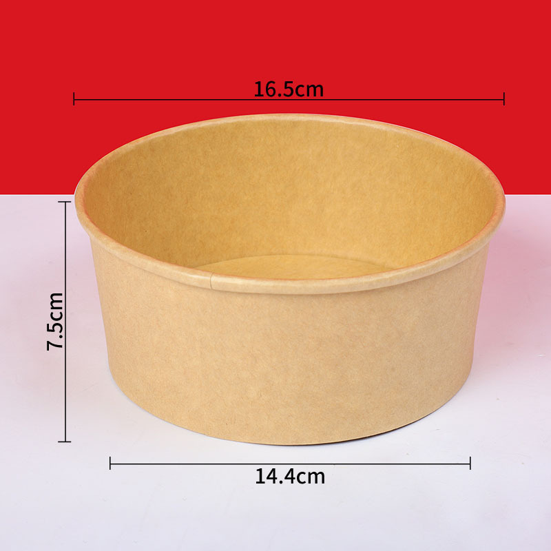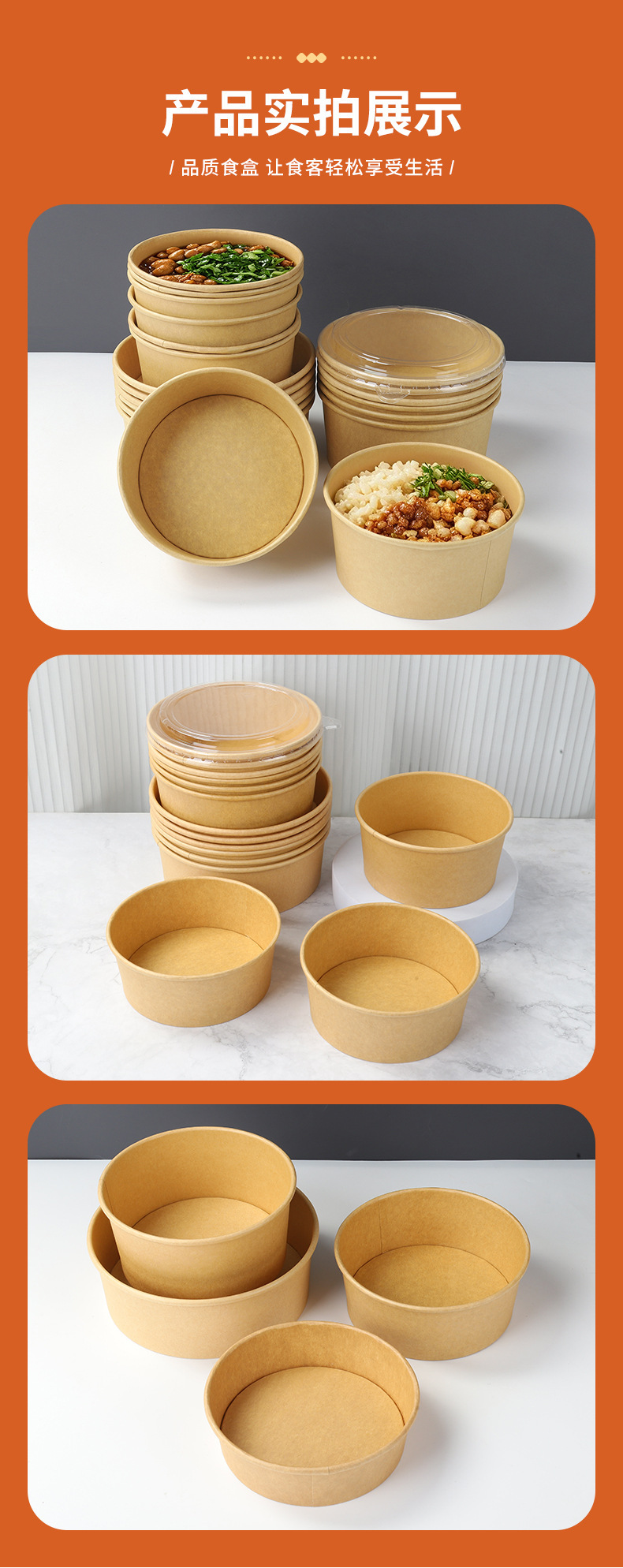 Коричневая упаковочная бумага, круглая одноразовая крафт-бумажная миска, коробка для еды на вынос, коробка для фастфуда, упаковка для риса и салата, коммерческая упаковка