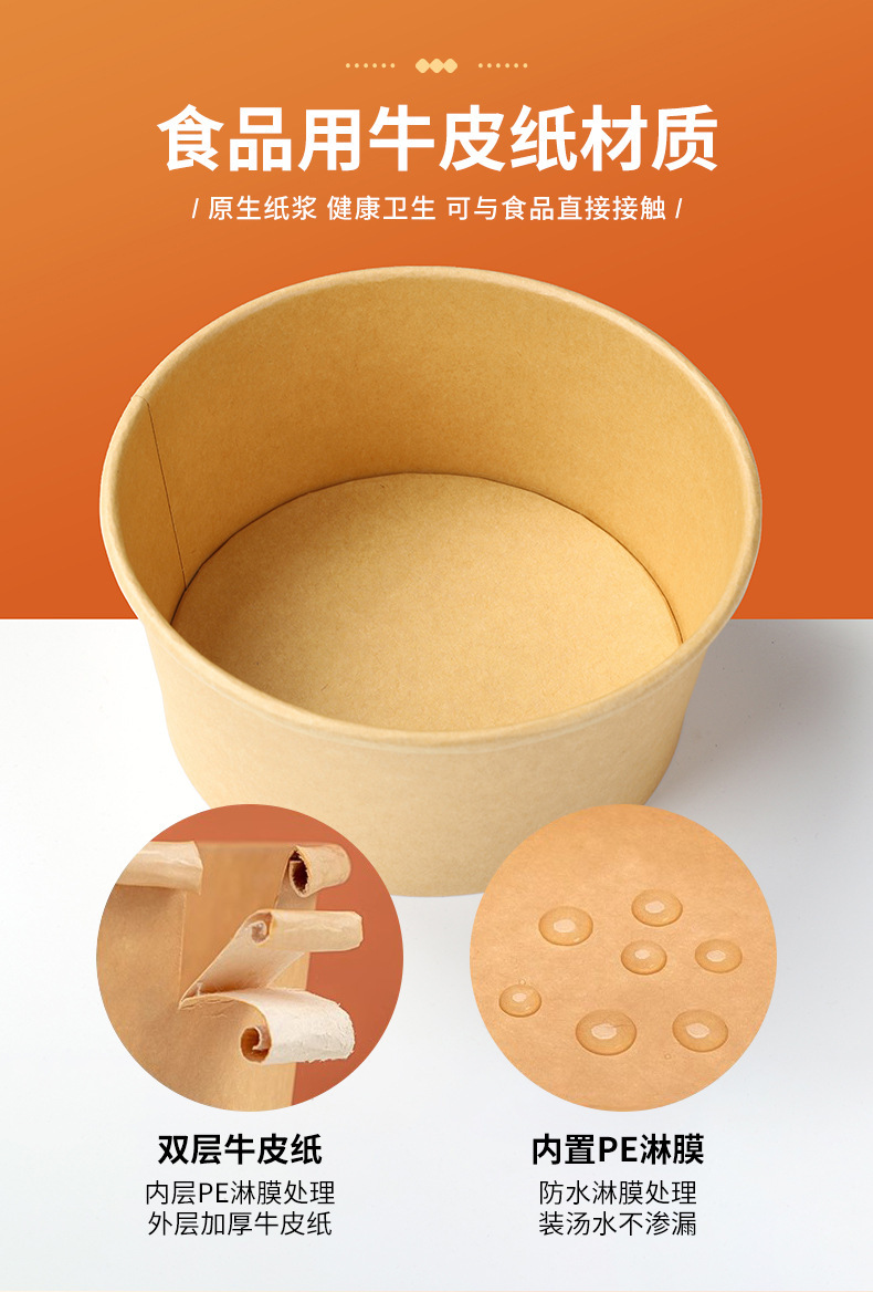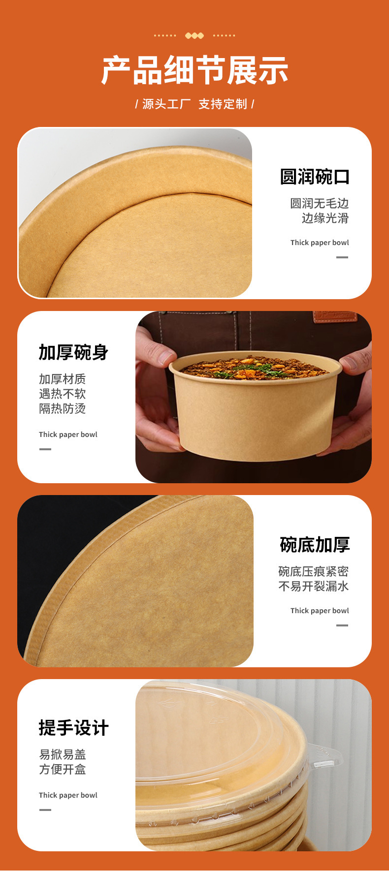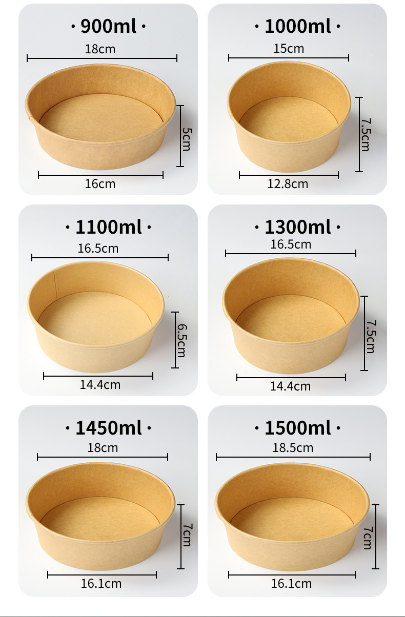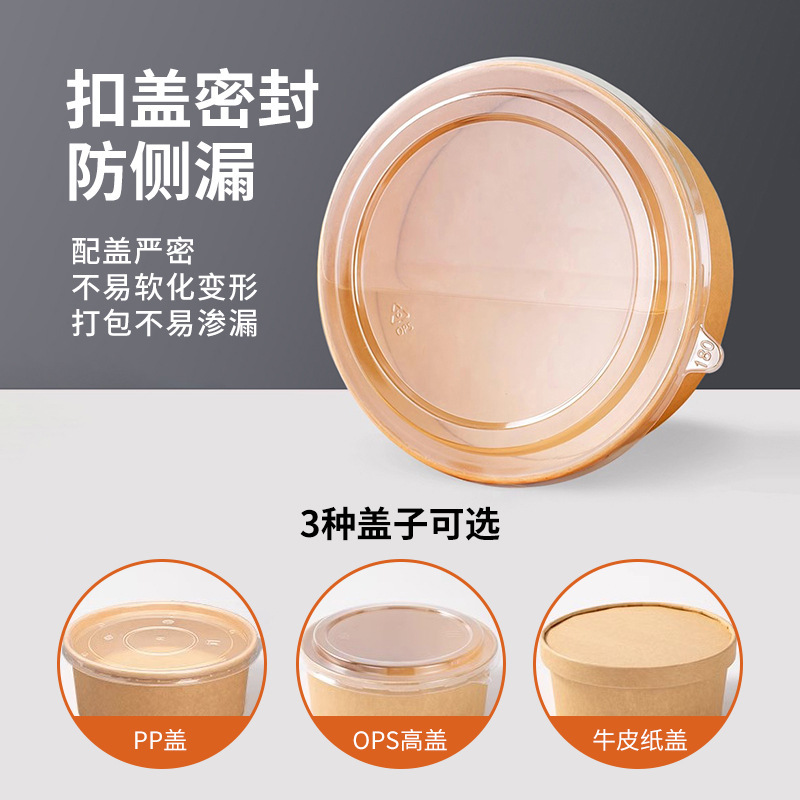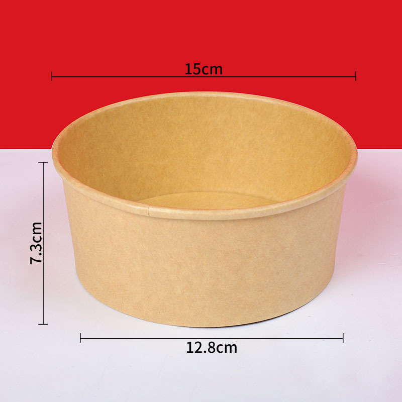 Коричневая упаковочная бумага, круглая одноразовая крафт-бумажная миска, коробка для еды на вынос, коробка для фастфуда, упаковка для риса и салата, коммерческая упаковка