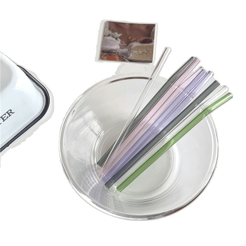 Корейские цветные стеклянные соломинки в стиле ins, домашние прозрачные термостойкие соломинки из боросиликатного стекла, разноцветные трубки для напитков