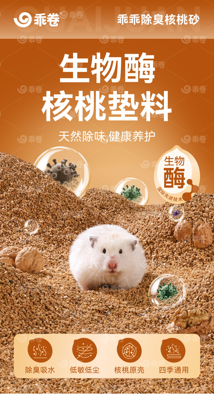 Биологически активный ферментный дезодорирующий наполнитель для грызунов (хомяков, белок, белка), универсальный, впитывающий, без пыли, из древесной стружки, имитирующий ореховый песок.