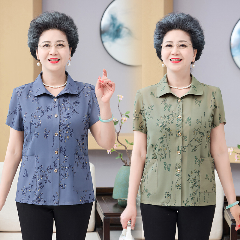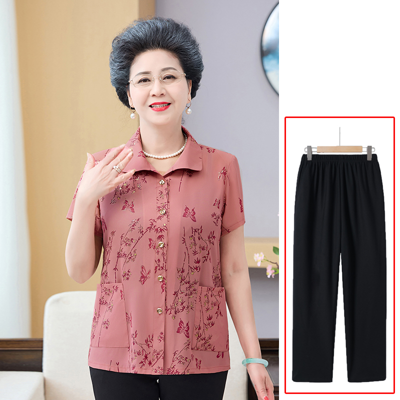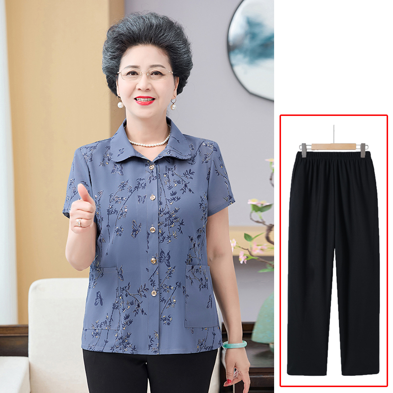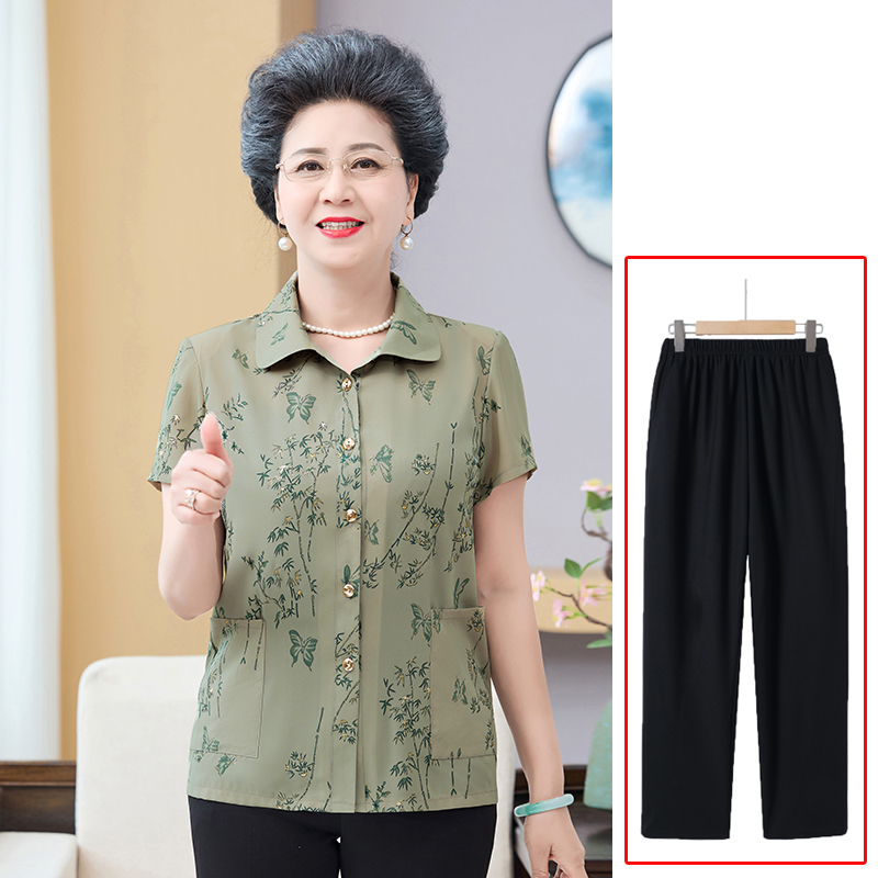 Летняя рубашка-кардиган бабушки, летняя рубашка с короткими рукавами для мамы, комплект из двух предметов, летняя одежда для женщин среднего и пожилого возраста.