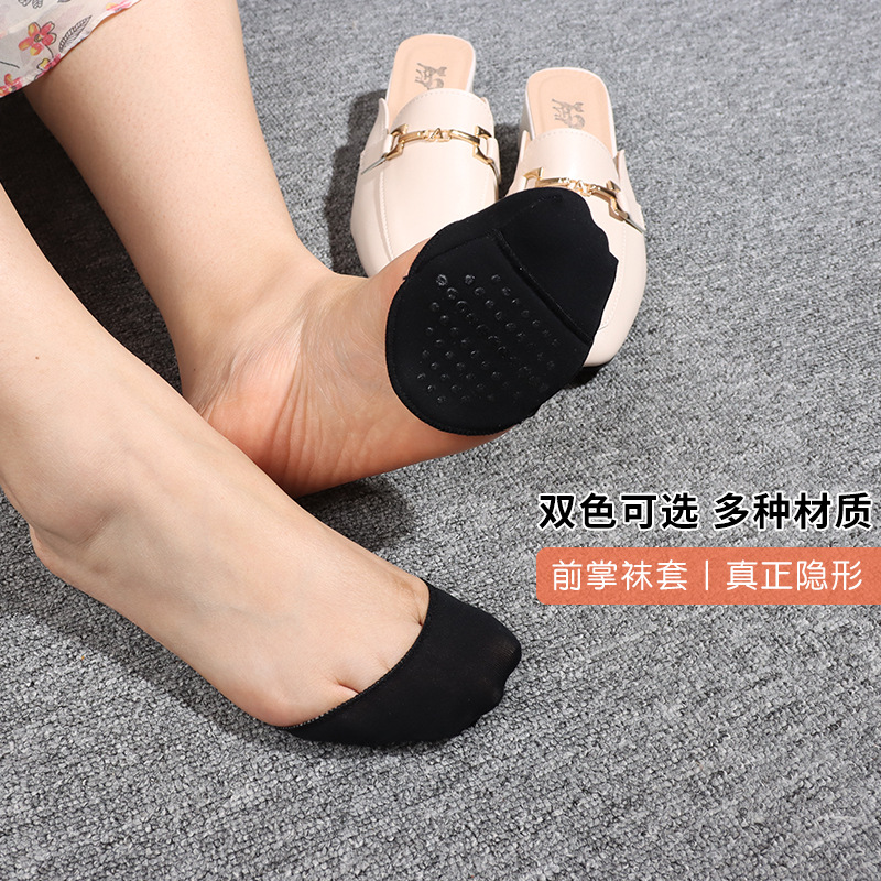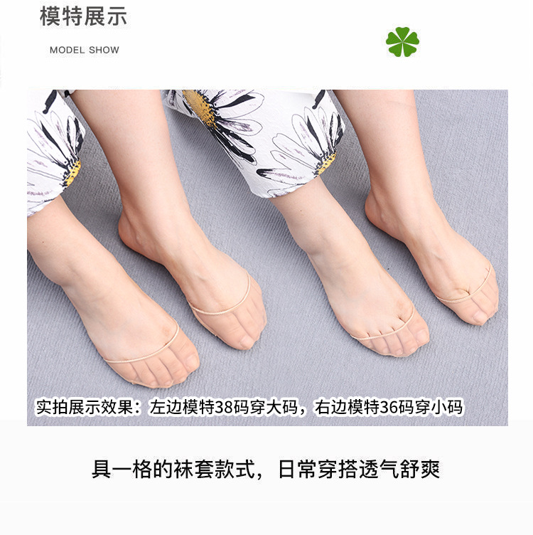 Туфли на высоком каблуке и носки для женщин летом, полукрошеные туфли на нескользящем каблуке из тонкого ледяного шелка, невидимые носки-лодочки на половину ладони.