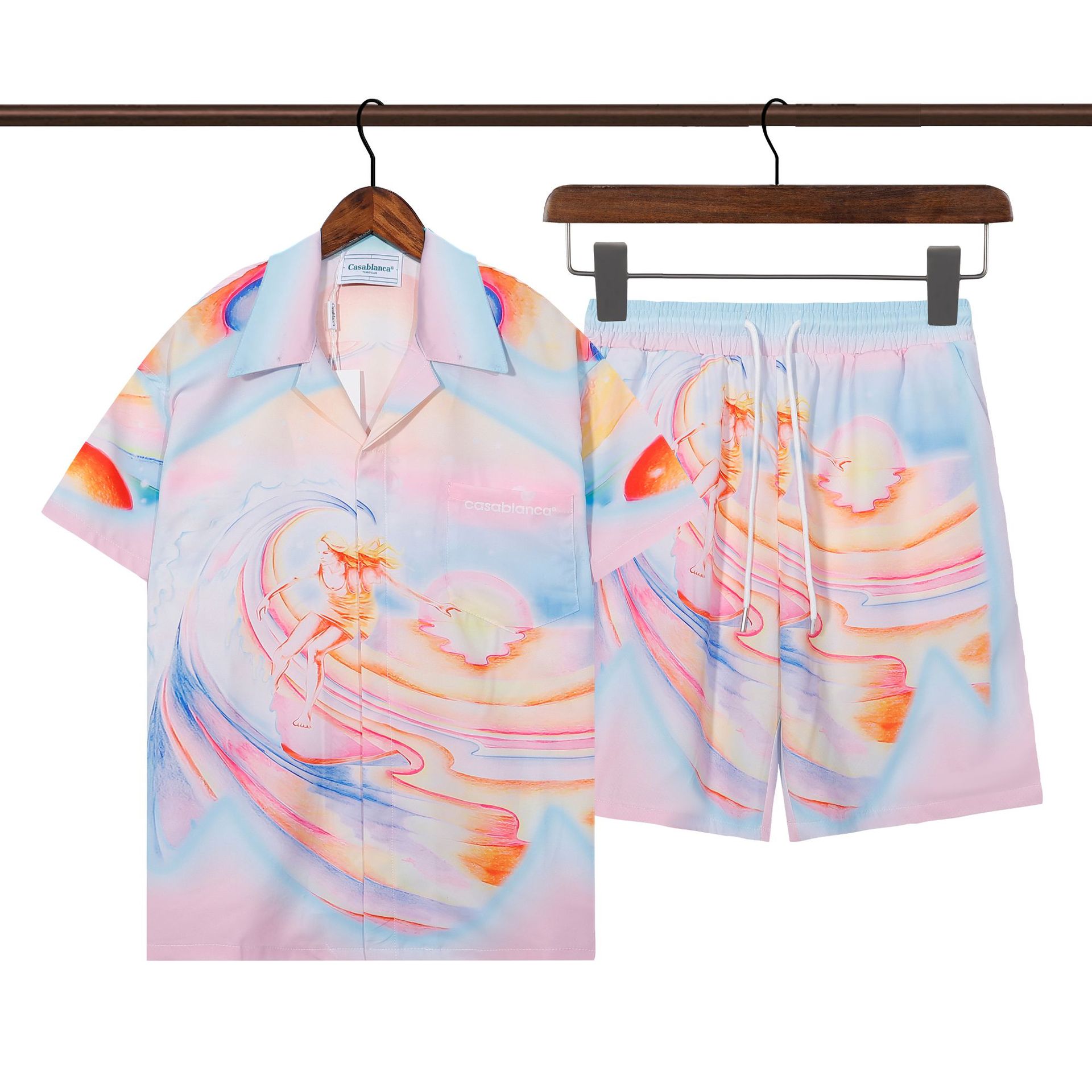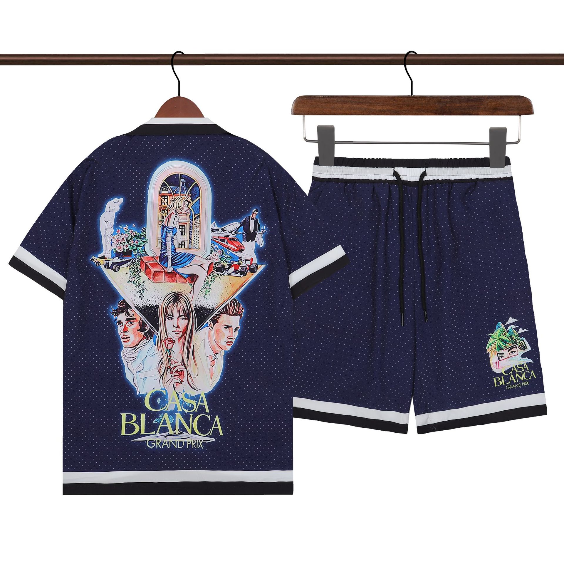 Высококачественный костюм с короткими рукавами, костюм-кардиган с лацканами, классический хлопковый костюм с буквенным принтом, костюм в одном стиле для мужчин и женщин.