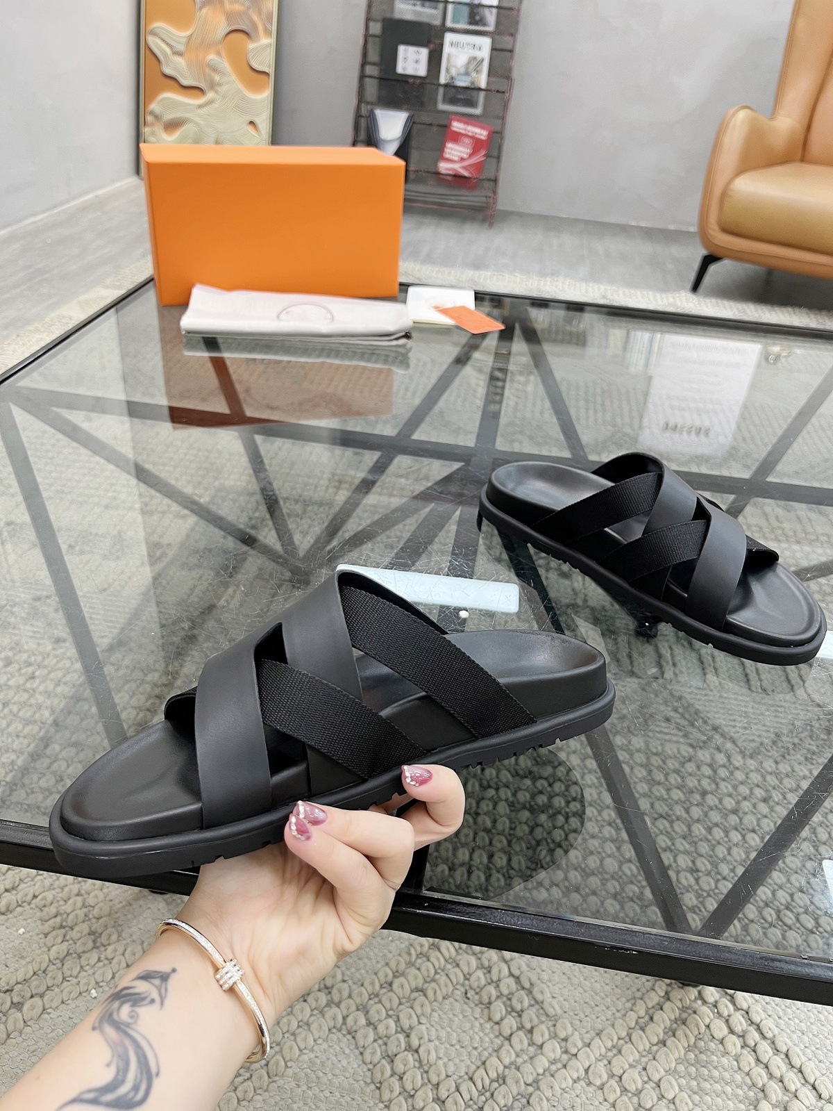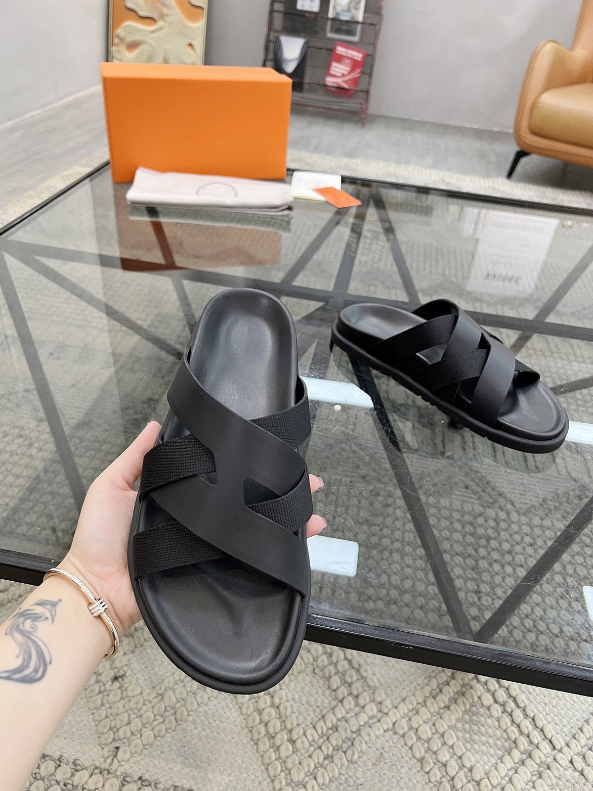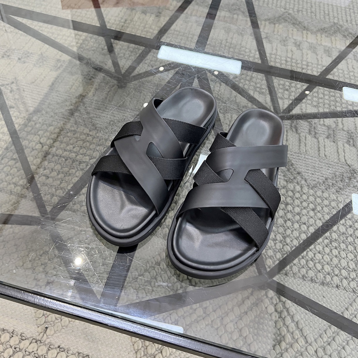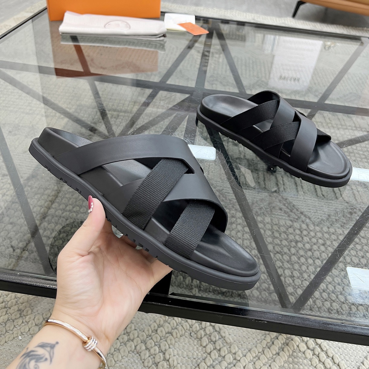 Высококачественные новые летние мужские повседневные сандалии и тапочки из натуральной кожи на толстой подошве, персонализированная, универсальная и удобная модная мужская обувь с вышивкой крестиком.