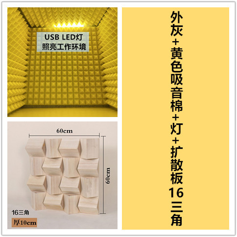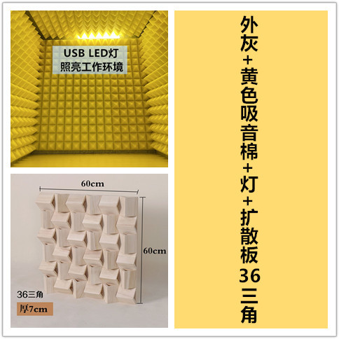 Внешний серый + внутренний серый + светодиодный светильник 60X60X60; Внешний серый + желтый звукопоглощающий хлопок; Внешний серый + желтый звукопоглощающий хлопок + светодиодная подсветка; Внешний серый + желтый звукопоглощающий хлопок + лампа + 16 треугольных диффузионных пластин; Внешний серый + желтый звукопоглощающий хлопок + лампа + 36-угольная рассеивающая пластина; Индивидуальный звукопоглощающий хлопковый цвет (примечания); Внешний серый + внутренний серый звукопоглощающий хлопок; Внешний серый + внутренний серый звукопоглощающий хлопок + светодиодная подсветка