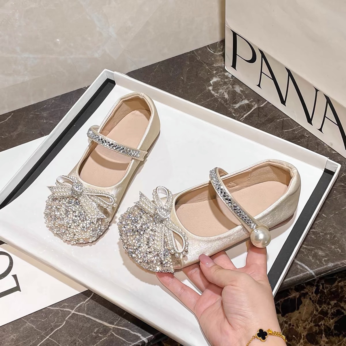 Туфли принцессы с кристаллами для девочек, новые летние маленькие кожаные туфли, блестящие модельные туфли Эльзы, весенне-осенняя обувь для выступлений