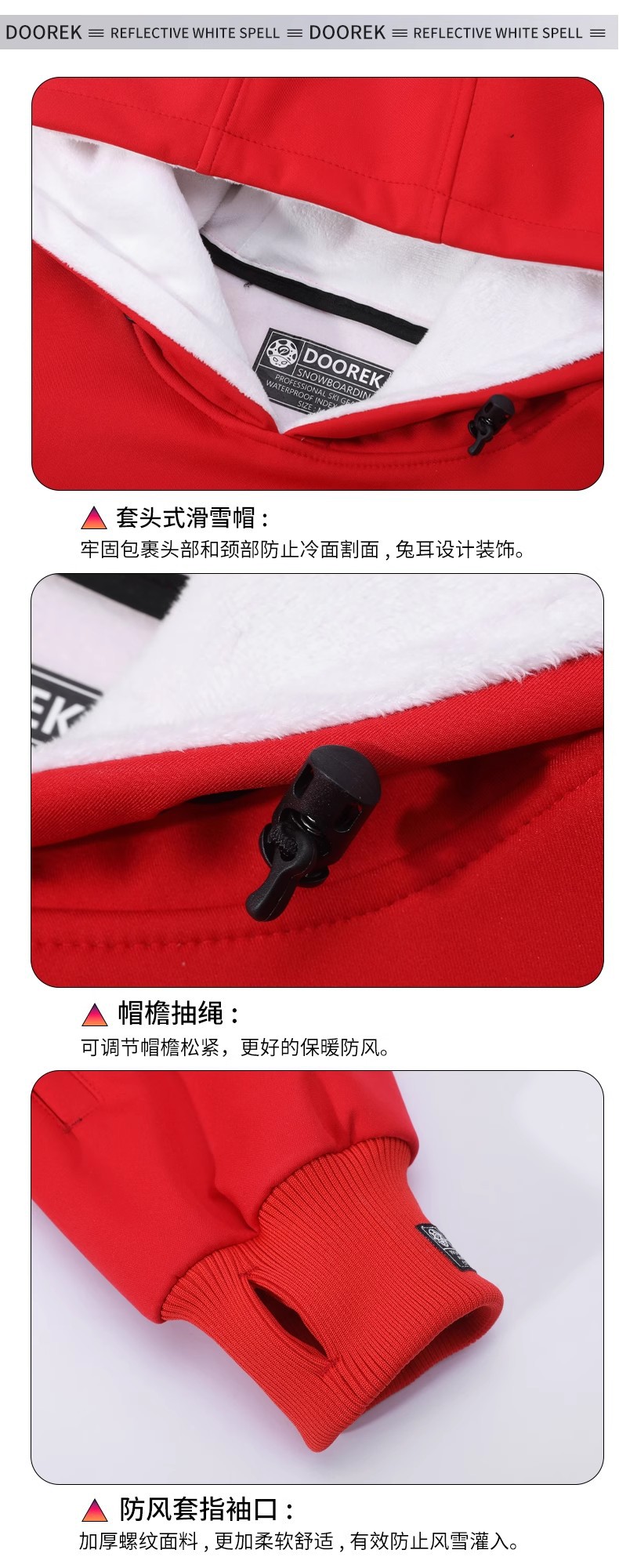 Лыжная одежда DOOREK для мужчин и женщин, осенне-зимняя спортивная водонепроницаемая однотонная универсальная лыжная толстовка с капюшоном для пар
