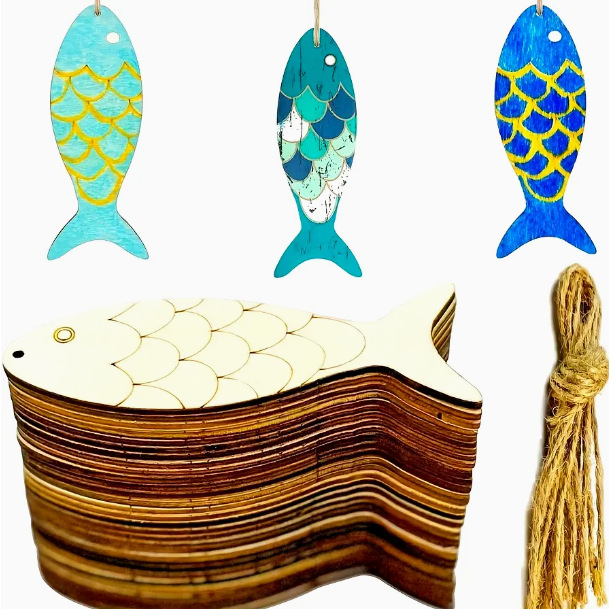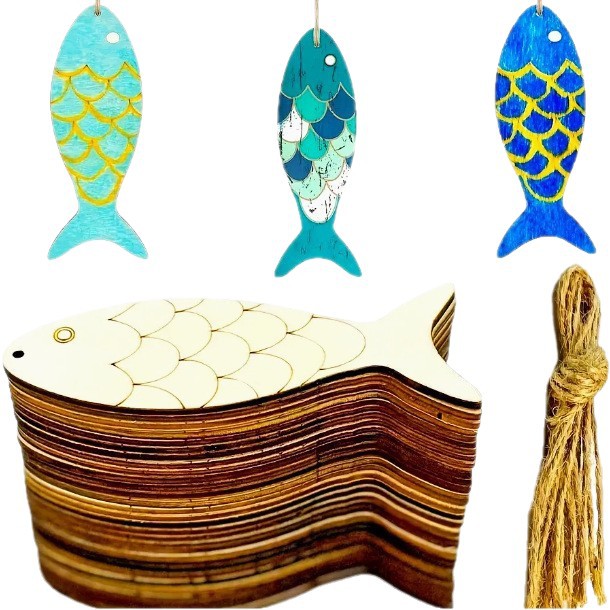 1 шт., деревянное украшение для дома в форме рыбы, украшение для дома своими руками, рождественское подвесное украшение