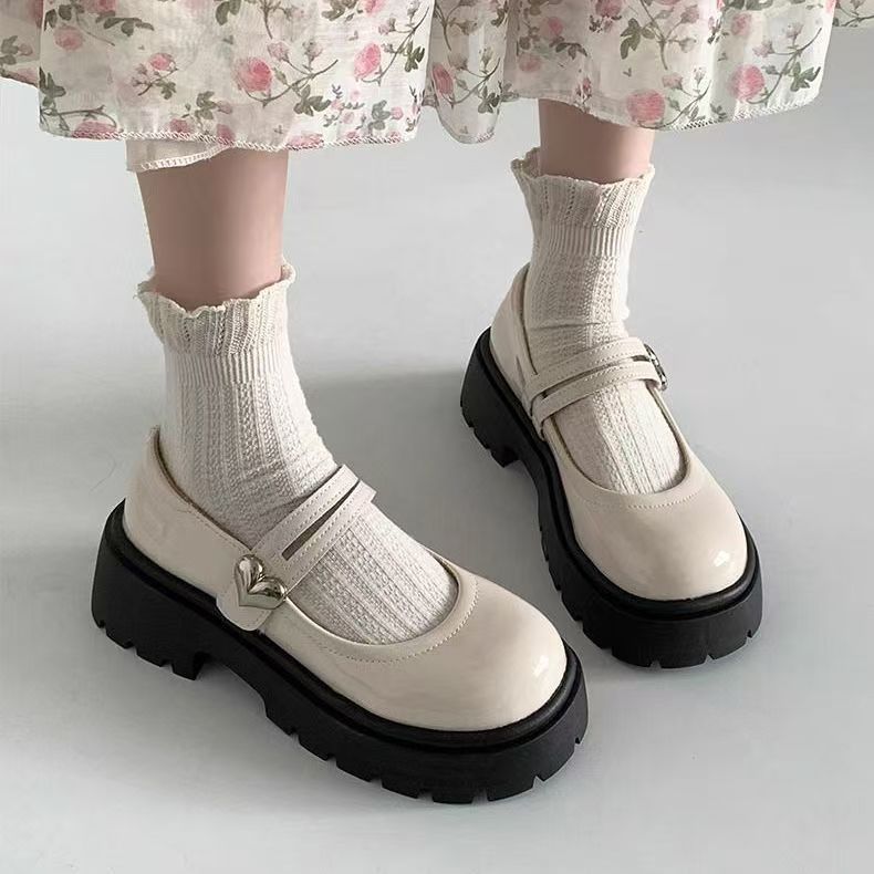Летние женские туфли на плоской подошве с круглым носком и толстым каблуком, новинка 2024 года, белые маленькие кожаные туфли Мэри Джейн в стиле ретро с юбкой