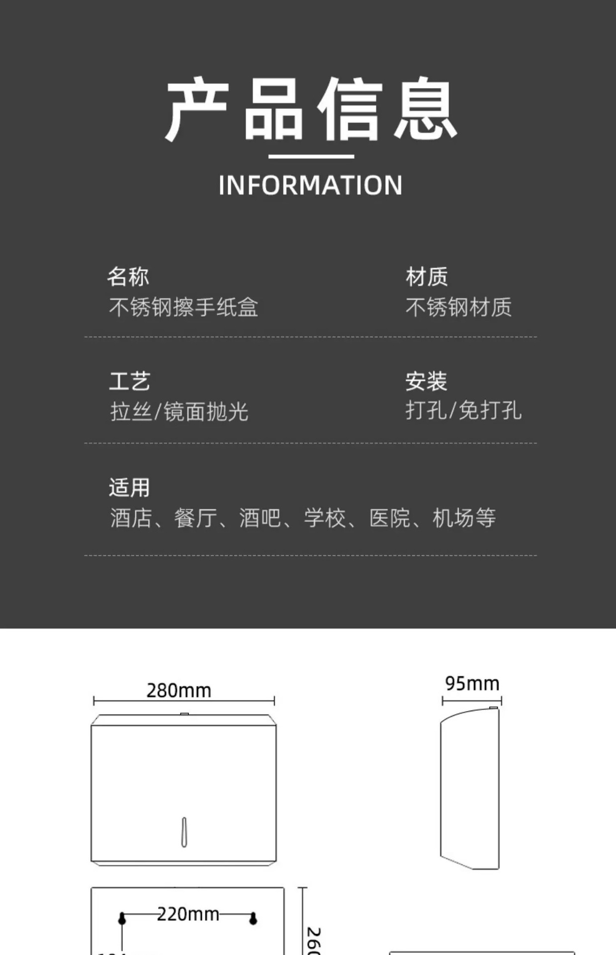 Настенный держатель для бумажных полотенец и салфеток из нержавеющей стали для ванной комнаты, туалета, кухни, коммерческий, без перфорации