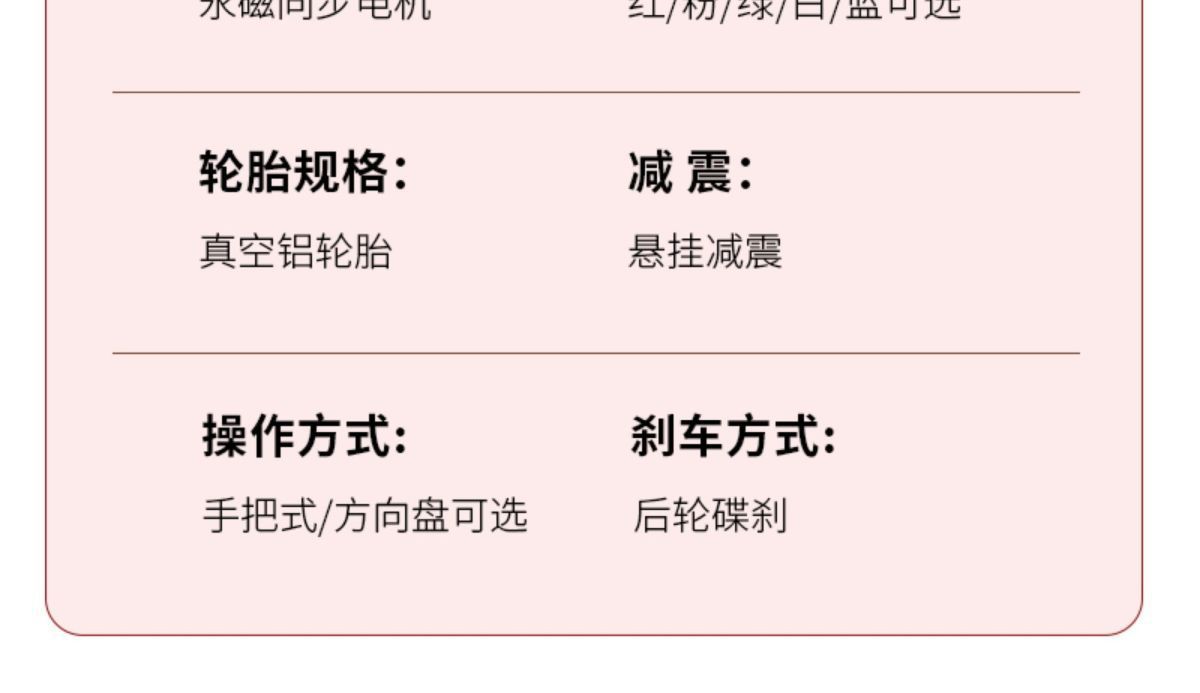 Голый велосипед (без аккумулятора); Экономичная версия (свинцово-кислотный аккумулятор хватает примерно на 90 миль); Домашняя версия (срок службы литиевой батареи составляет около 130 миль); Роскошная версия (срок службы литиевой батареи составляет около 170 миль); Экстремальная версия (срок службы литиевой батареи составляет около 220 миль); Версия с кондиционером (срок службы литиевой батареи составляет около 260 миль + кондиционер с подогревом и охлаждением)