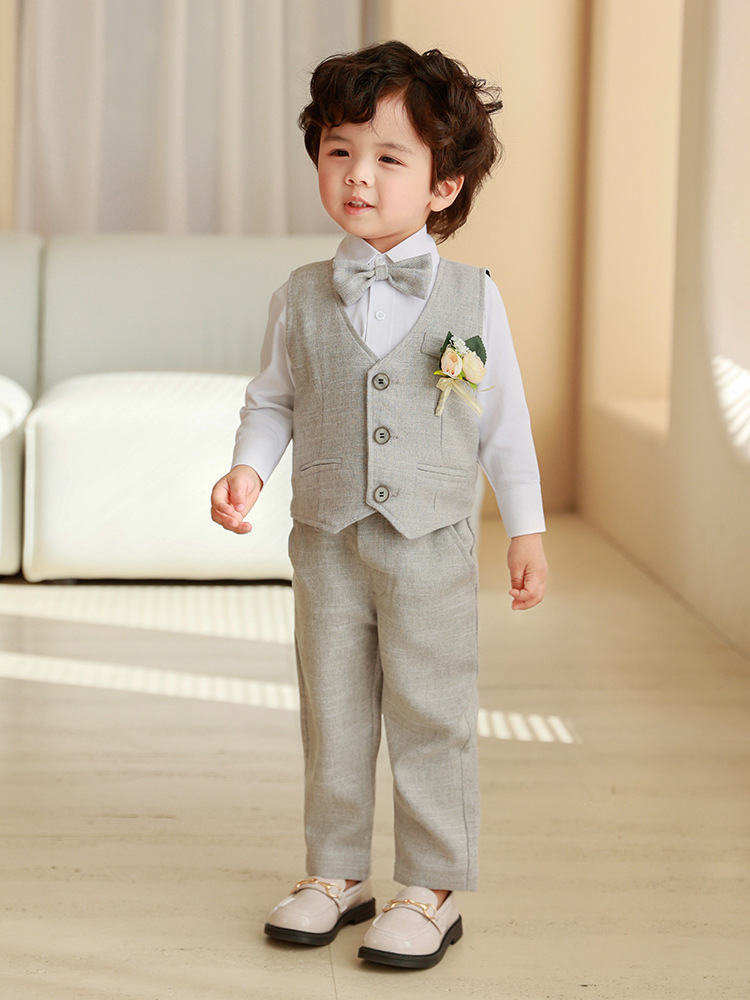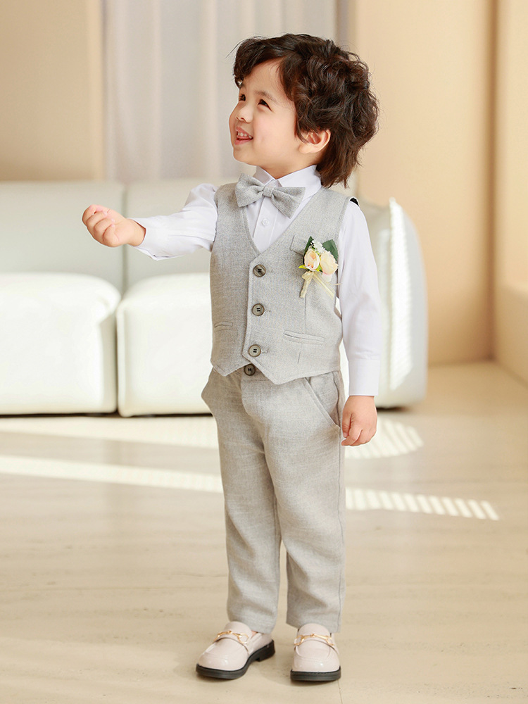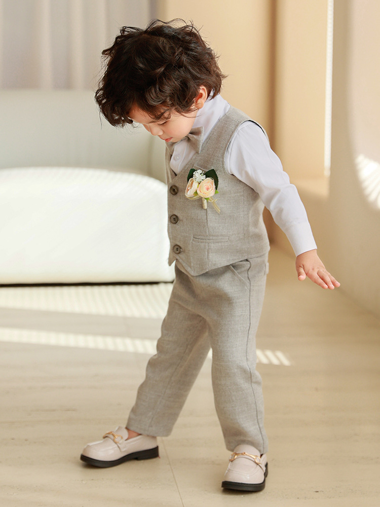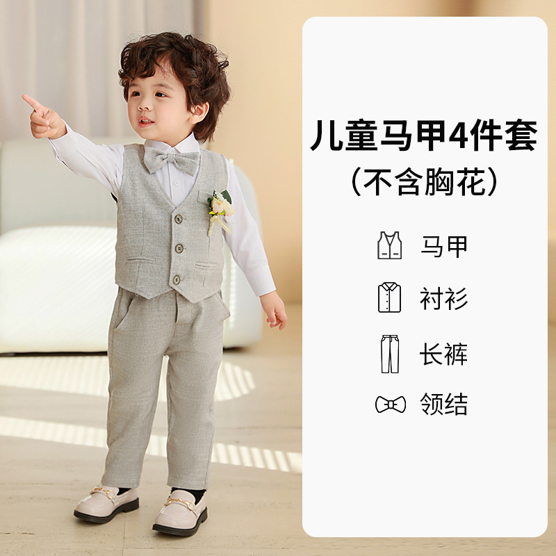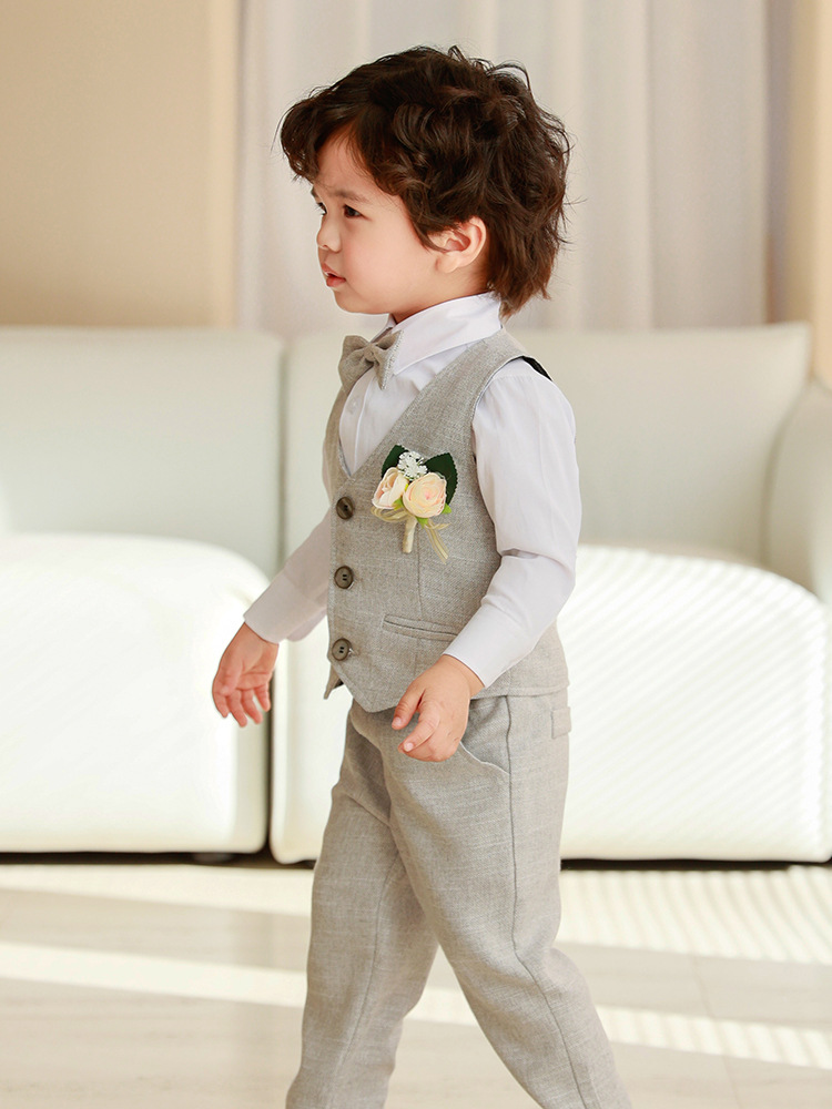 Детский весенне-осенний костюм-жилет, платье с длинными рукавами для мальчика, костюм для первого дня рождения ребенка, детский костюм для выступления с цветочным узором для маленьких и средних размеров.