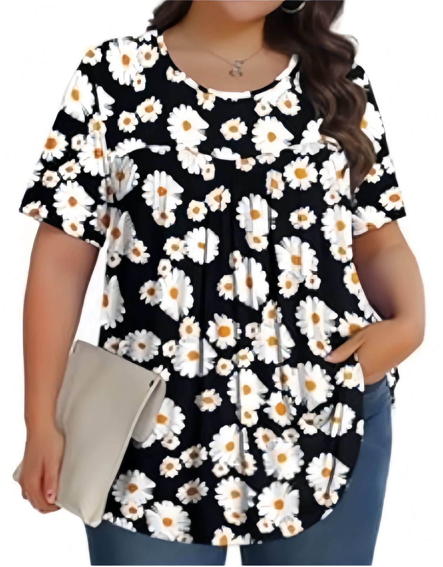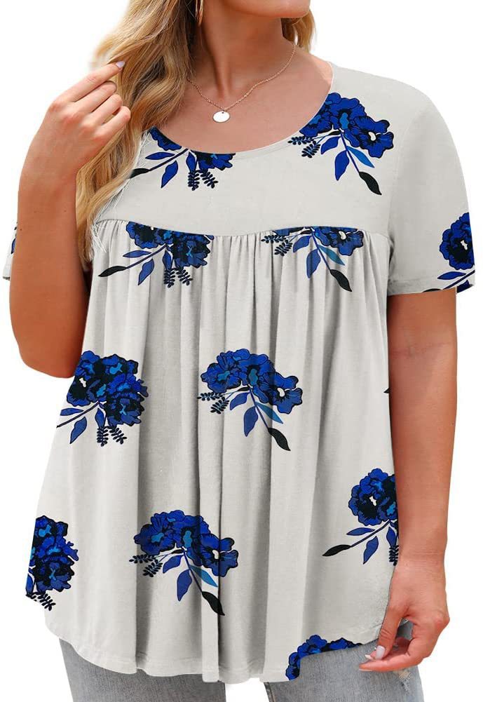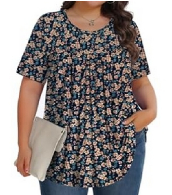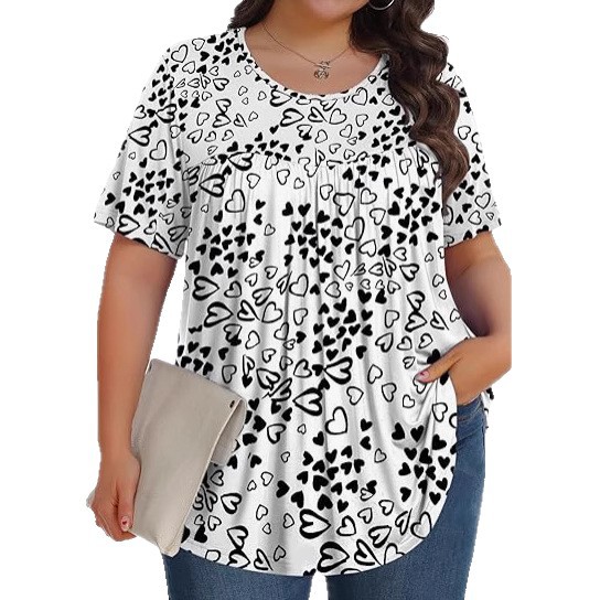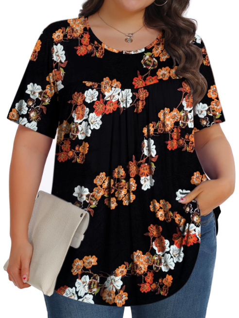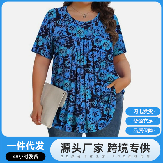 Новая женская футболка-пуловер с круглым вырезом и коротким рукавом, больших размеров, с цветочным принтом, для международной торговли, 2026 год