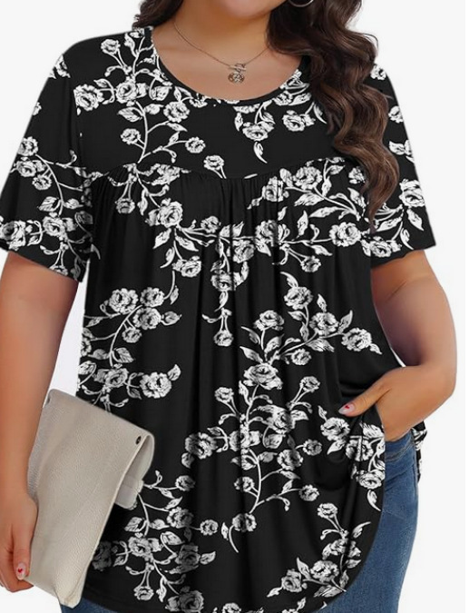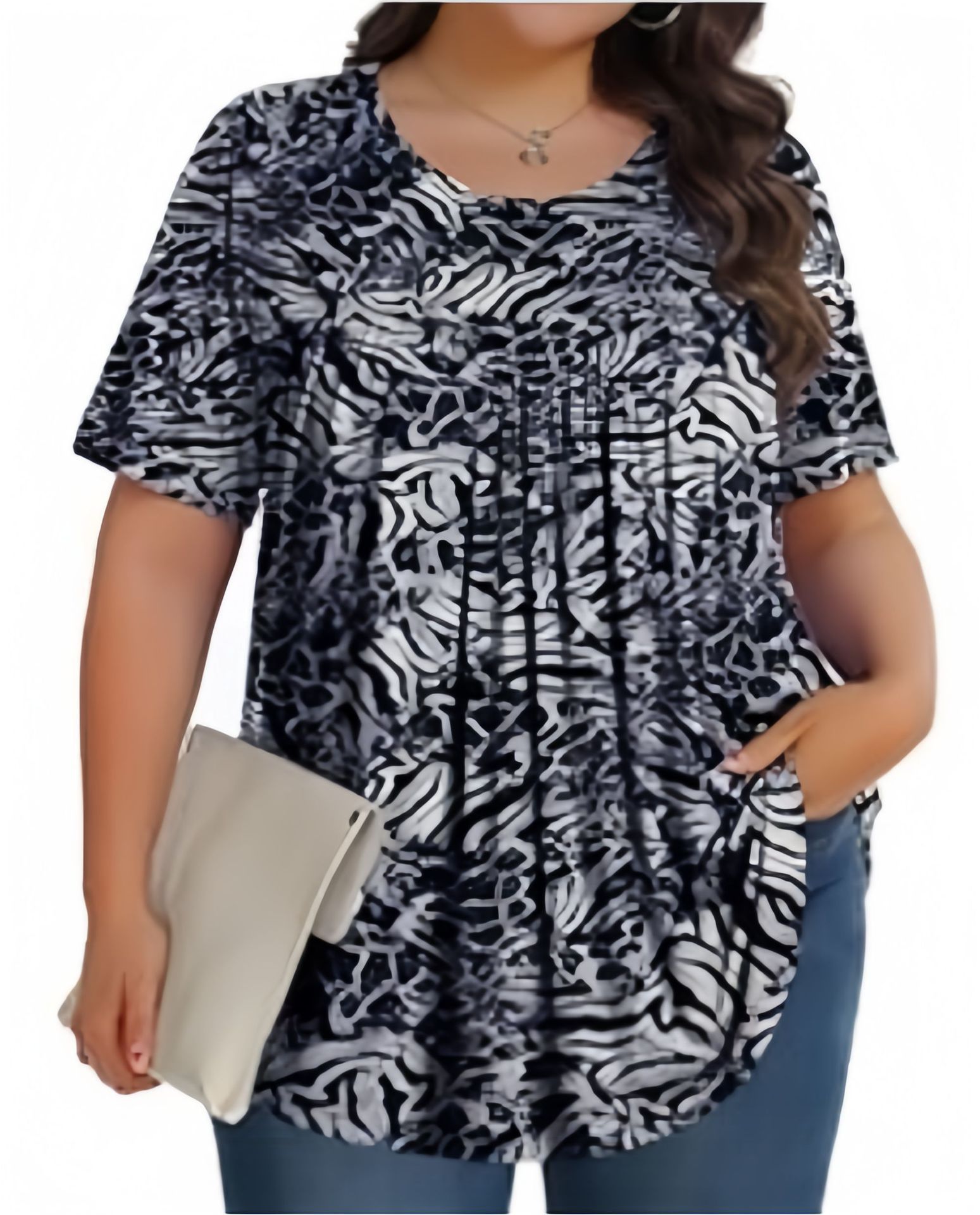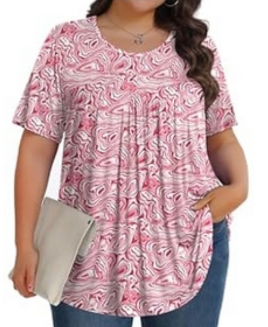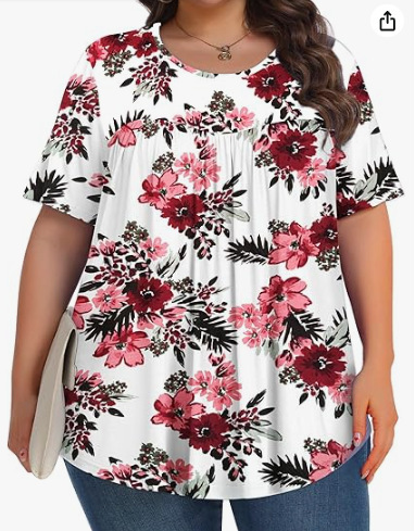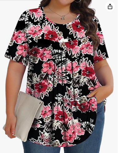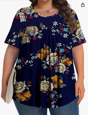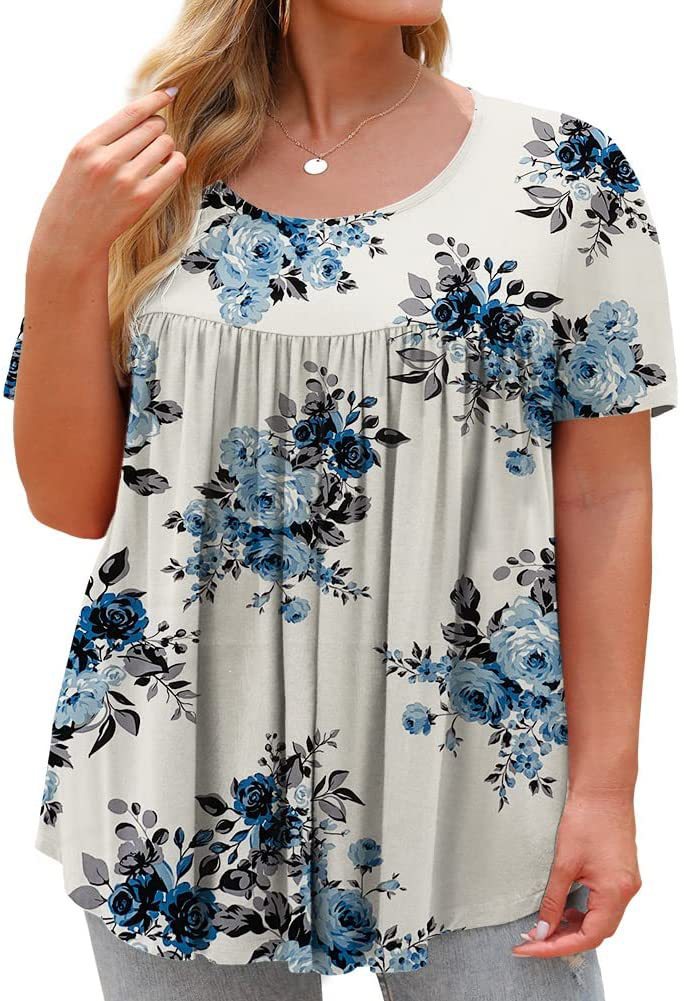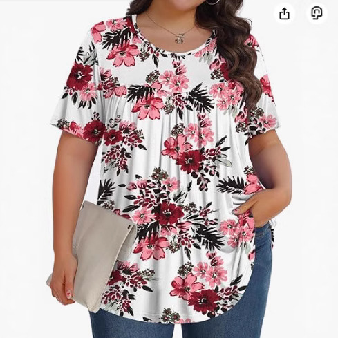 Новая женская футболка-пуловер с круглым вырезом и коротким рукавом, больших размеров, с цветочным принтом, для международной торговли, 2026 год