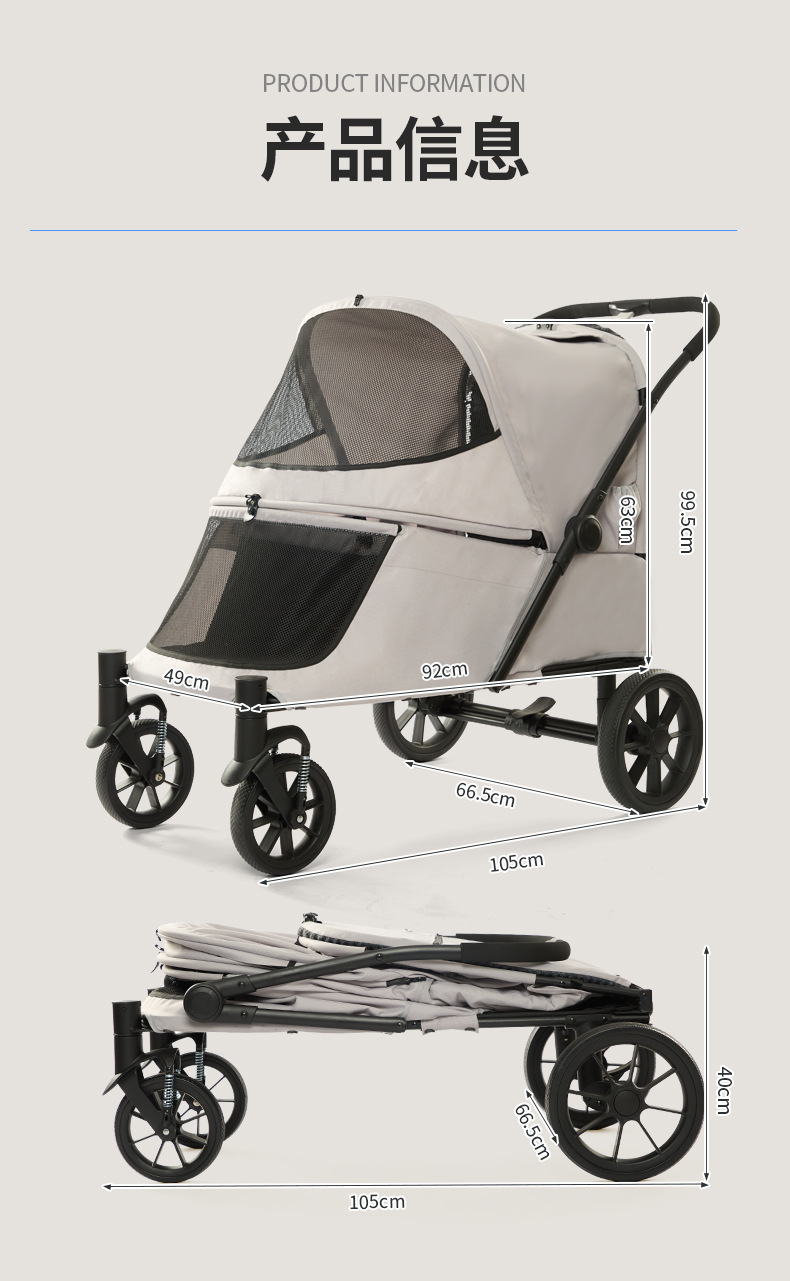 Кросс-бордерные популярные средние и большие коляски для питомцев с функцией подъема, уличные гладкие коляски для нескольких питомцев