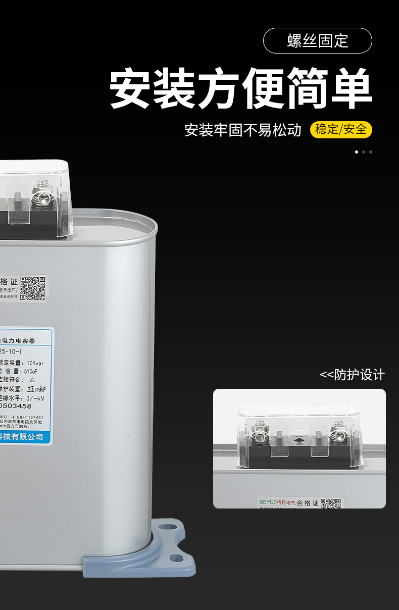 Прямые оптовые продажи с завода конденсаторов серии BSMJ, однофазных самовосстанавливающихся параллельных конденсаторов Geyue Electric для промышленного применения.