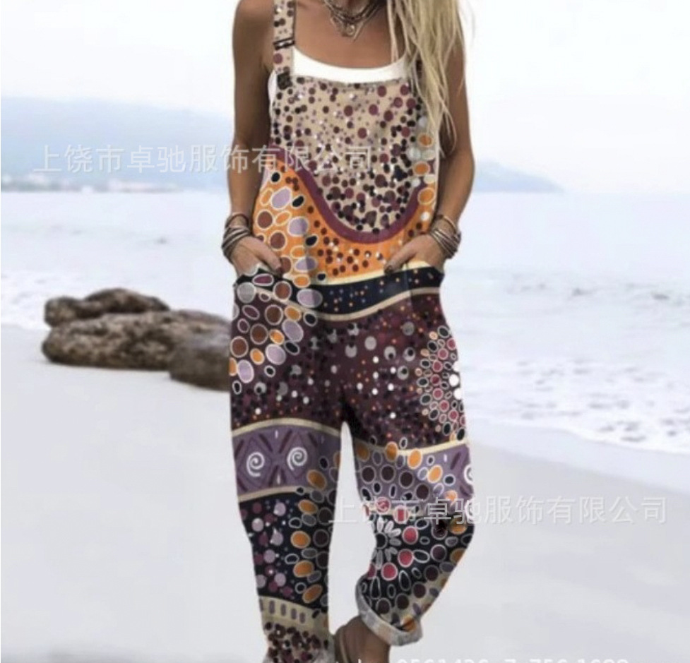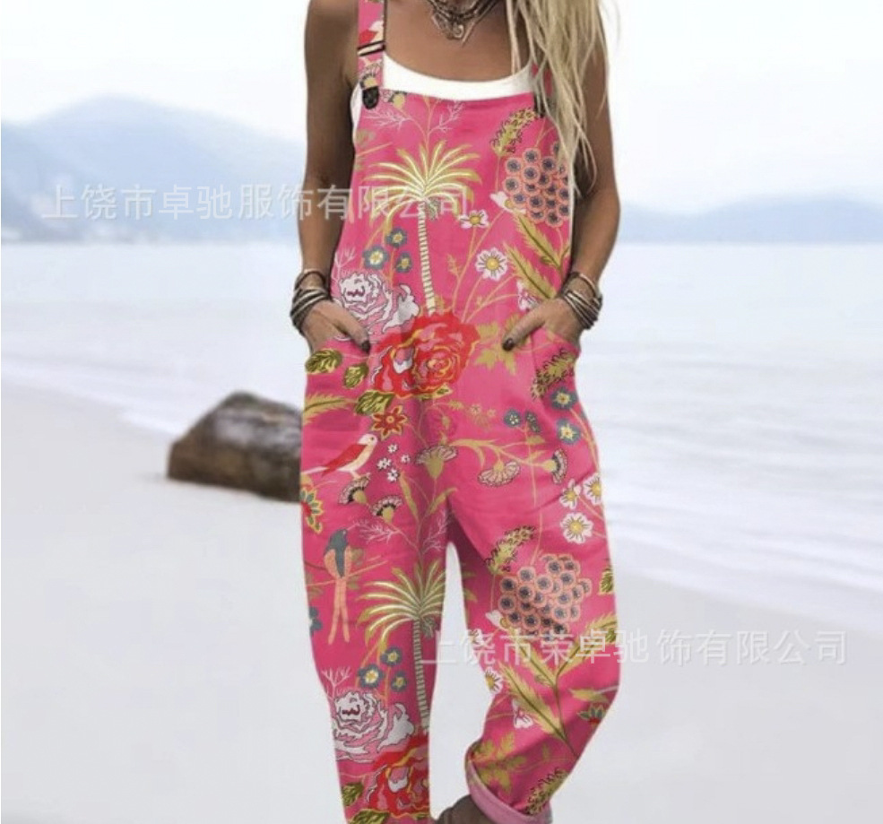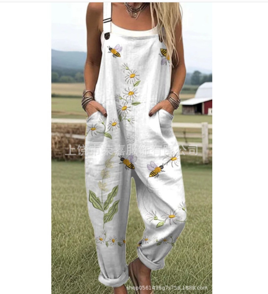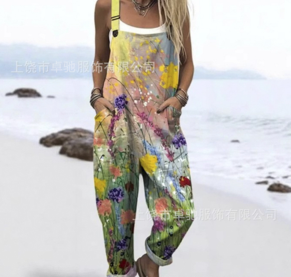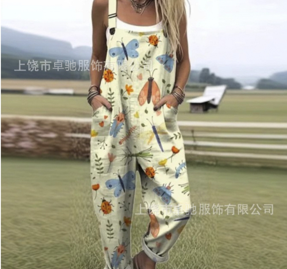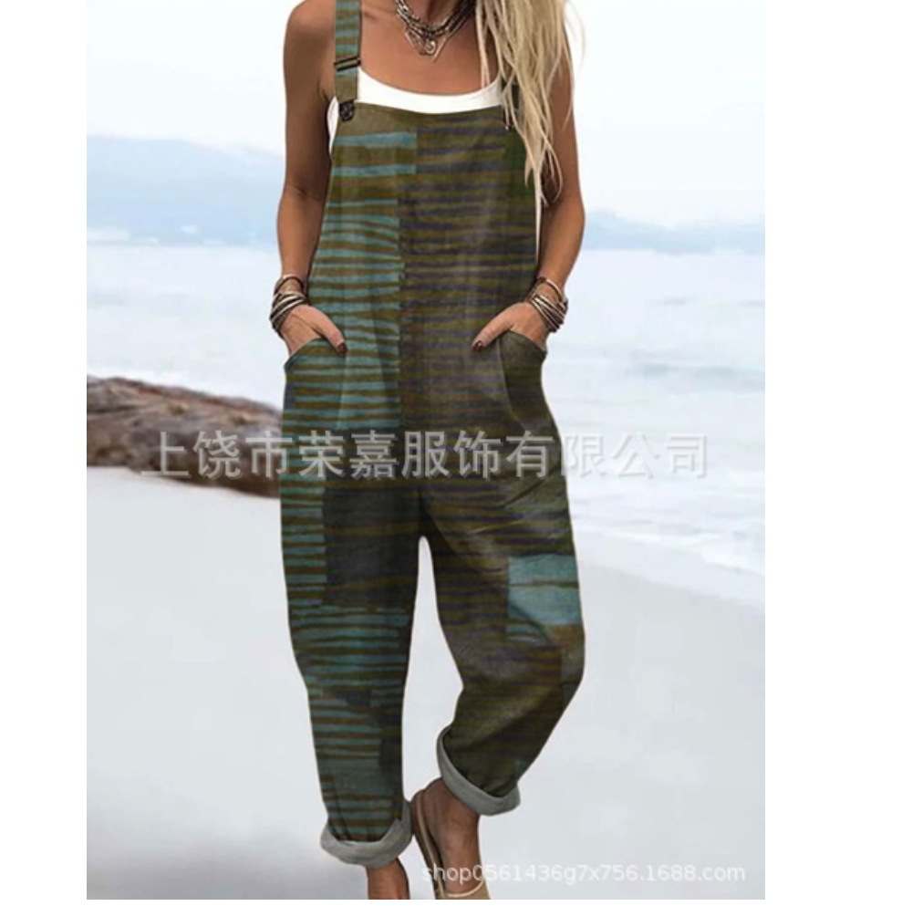 2025 новая женская одежда для трансграничных продаж Amazon, европейские и американские летние цифровые 3D-печатные подтяжки на пуговицах, повседневные брюки, подтяжки