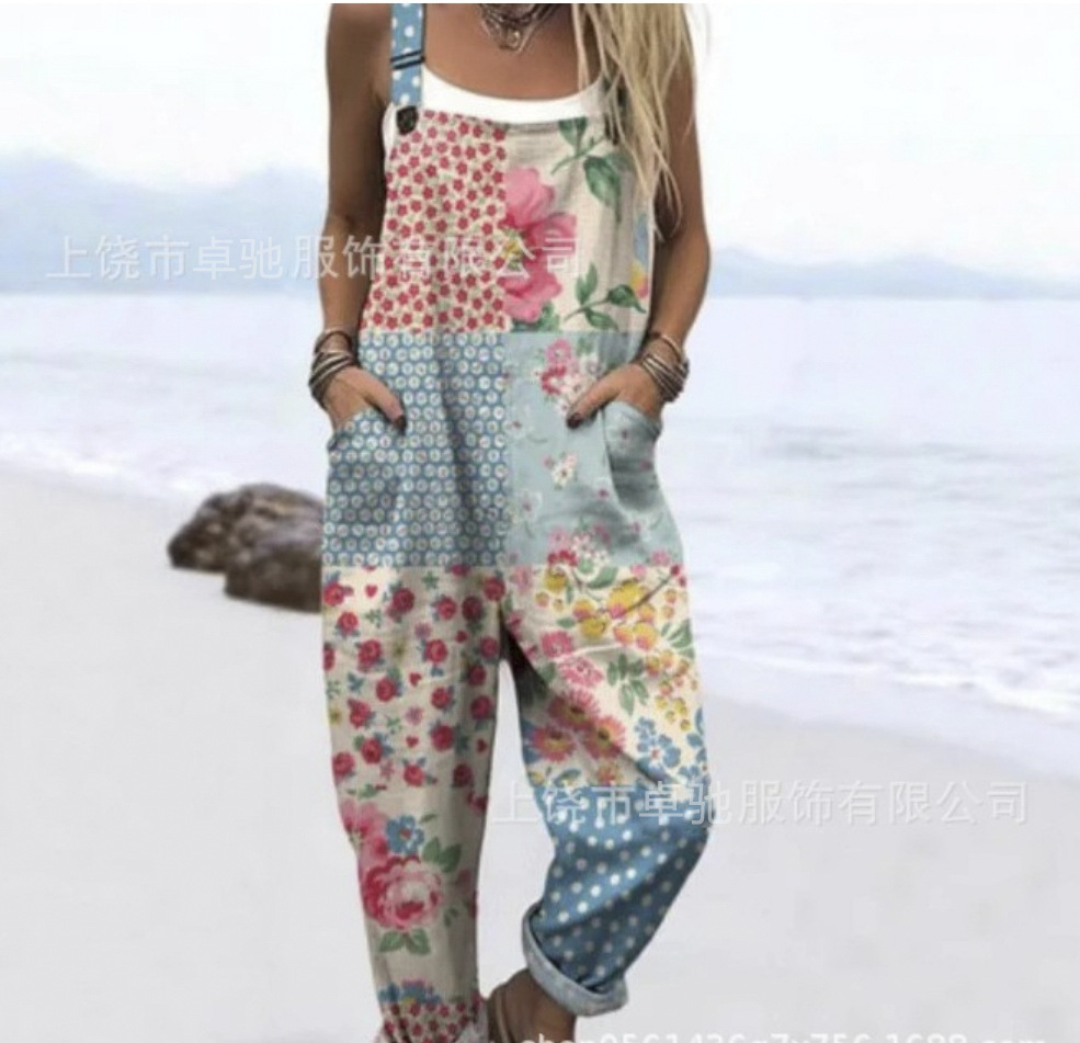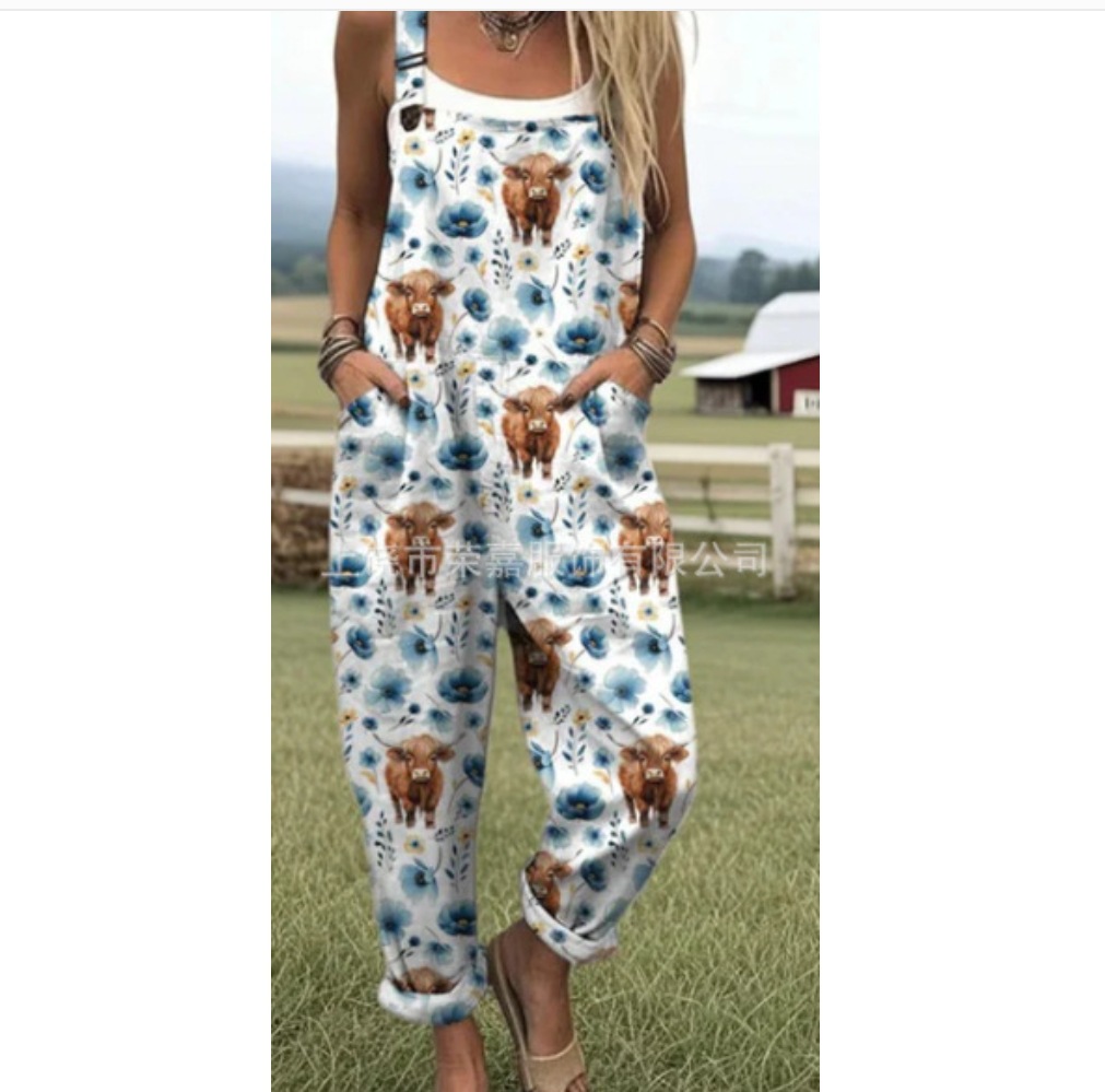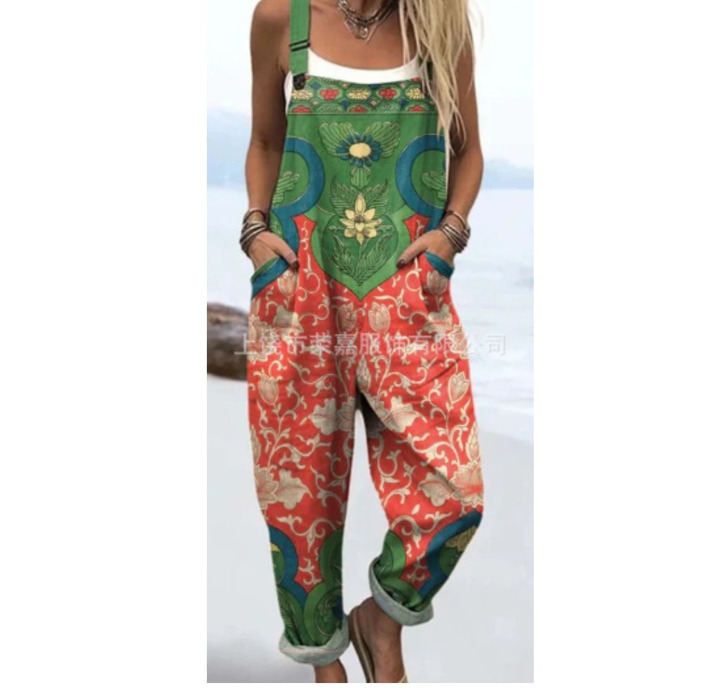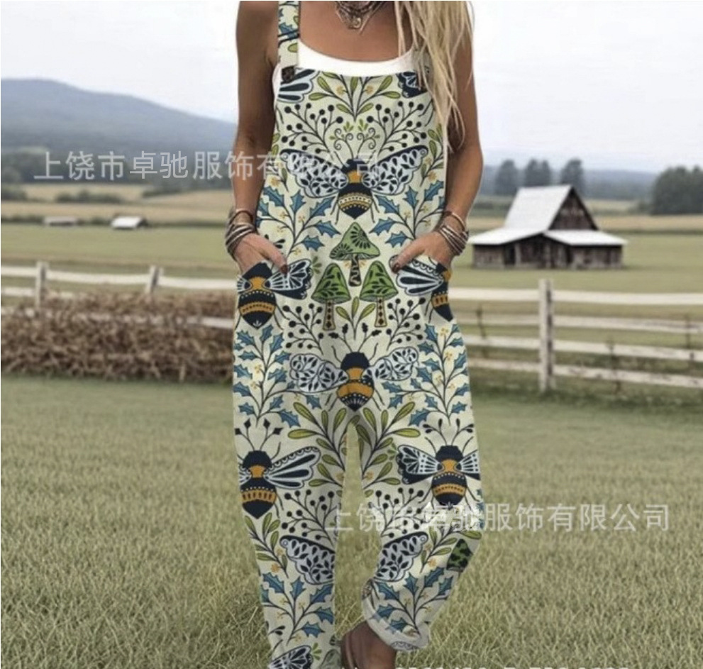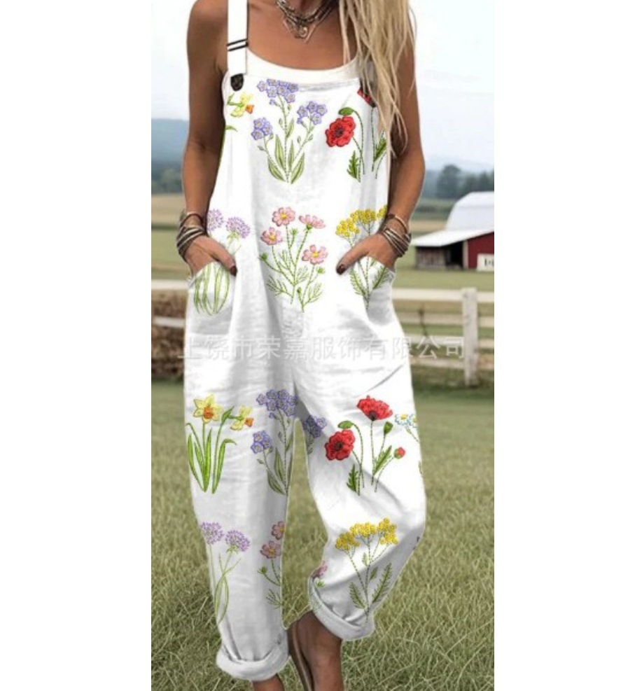 2025 новая женская одежда для трансграничных продаж Amazon, европейские и американские летние цифровые 3D-печатные подтяжки на пуговицах, повседневные брюки, подтяжки