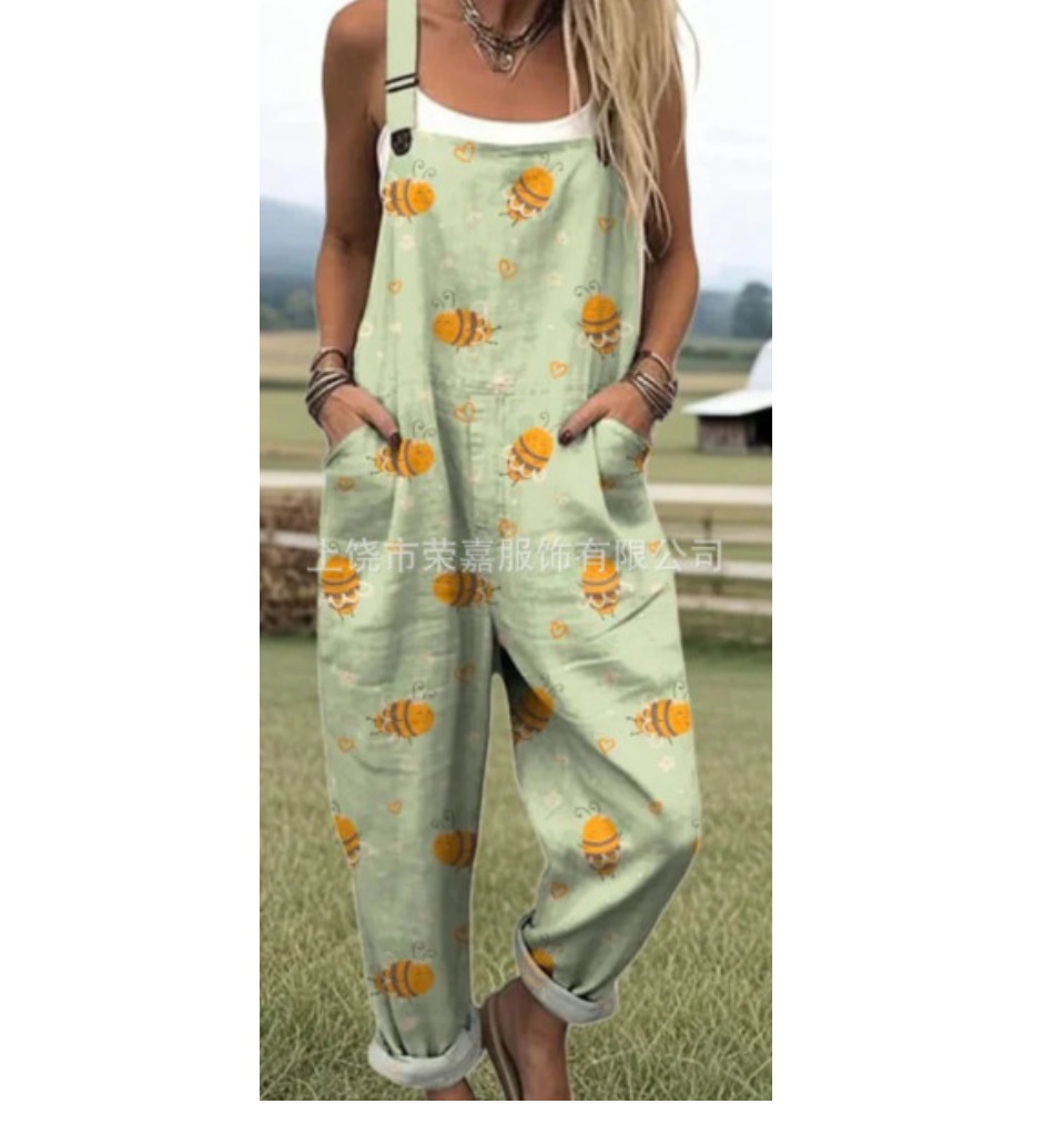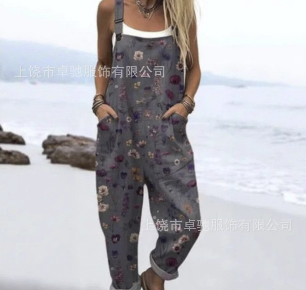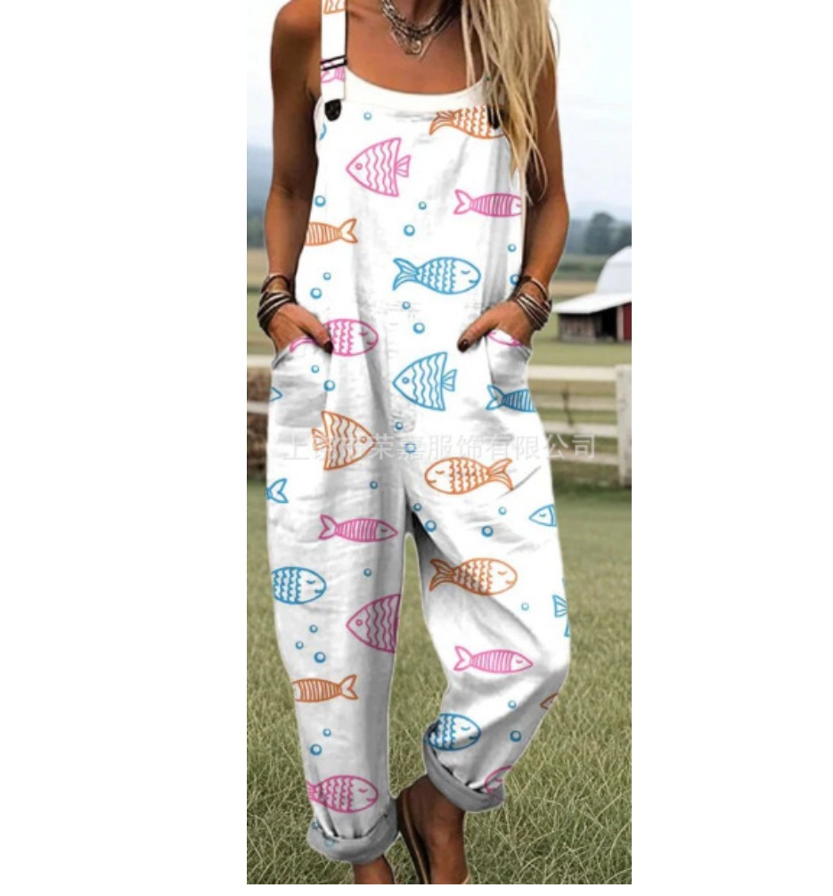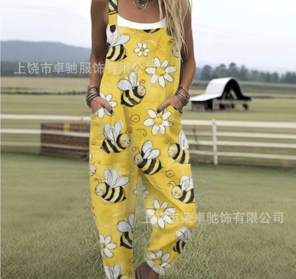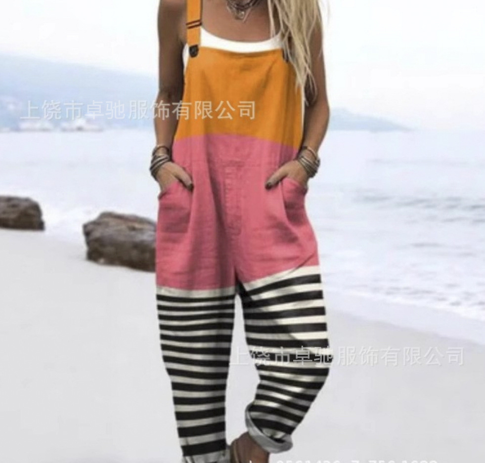 2025 новая женская одежда для трансграничных продаж Amazon, европейские и американские летние цифровые 3D-печатные подтяжки на пуговицах, повседневные брюки, подтяжки